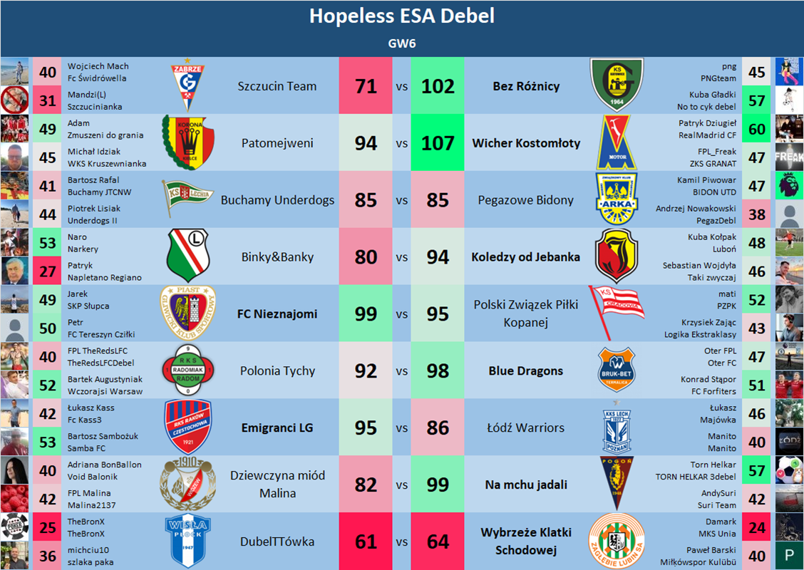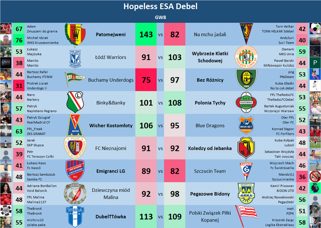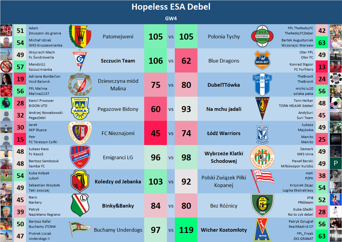 Punkty danej drużyny czyli 2 graczy będą się sumować w danym GW i to będzie wynik danego zespołu w kolejce.