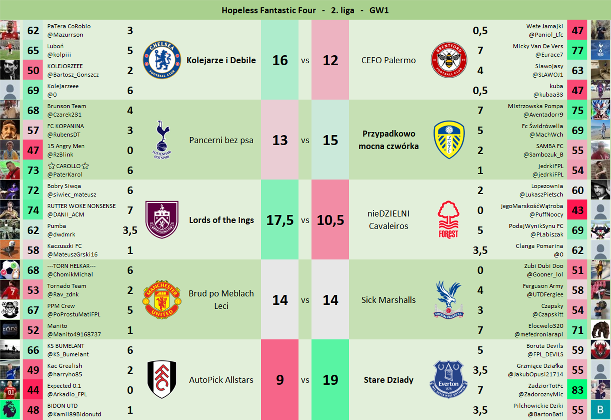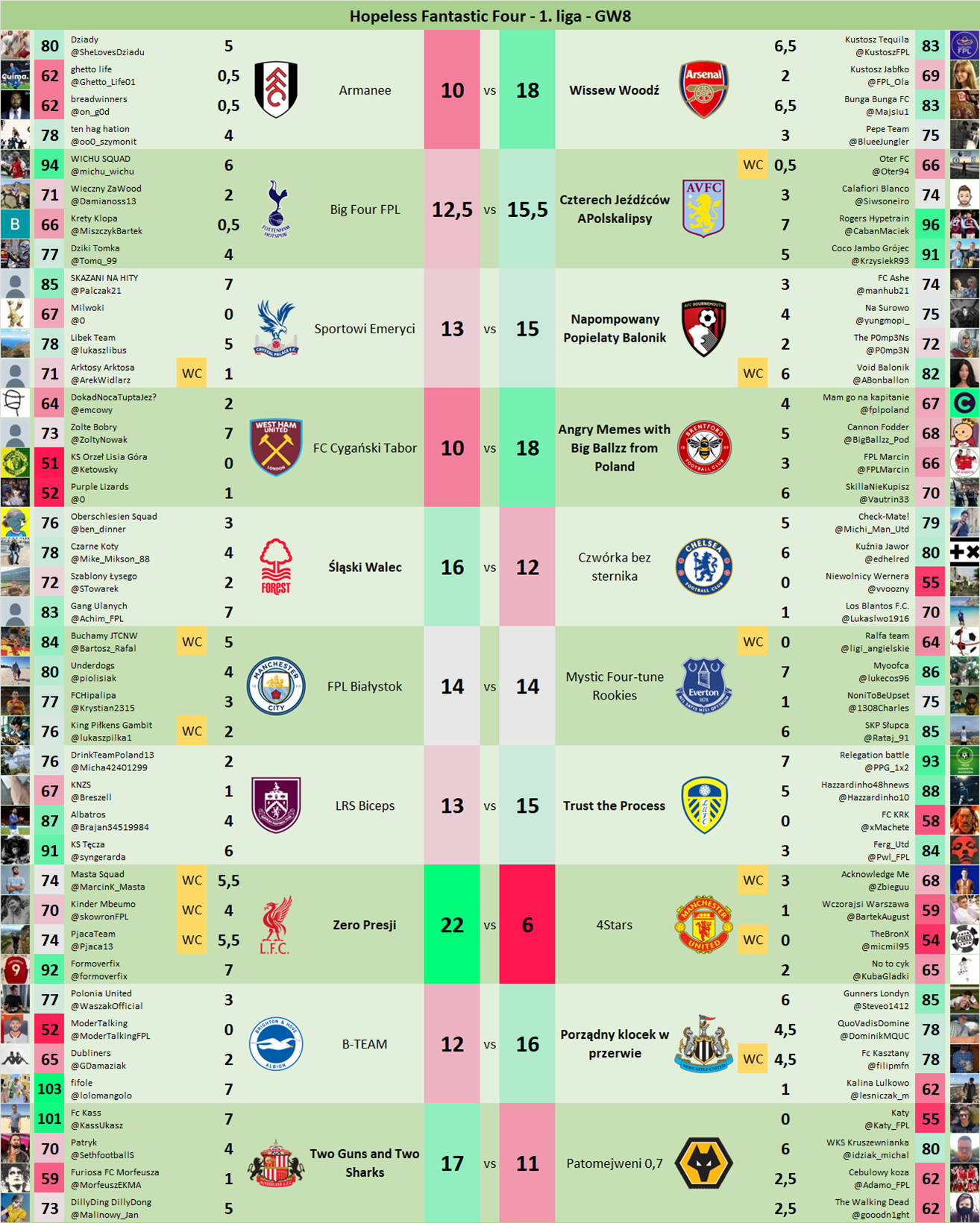 Punktacja będzie następująca: za najlepszy wynik w kolejce gracz otrzyma 7 pkt, następny 6pkt itd. czyli 7-6-5-4-3-2-1-0.