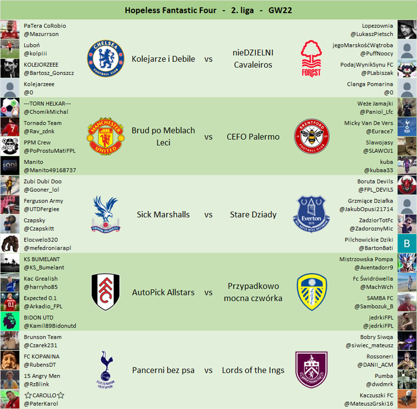Oznacza to, że jedna drużyna może zdobyć w kolejce maksymalnie 22 pkt, które zostaną dopisane do ogólnej tabeli.