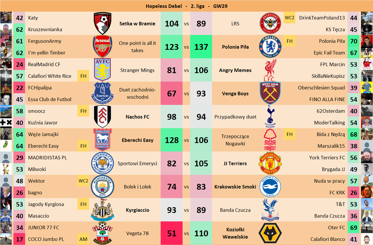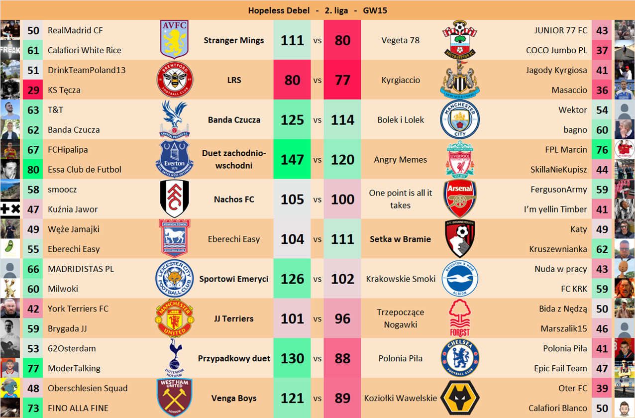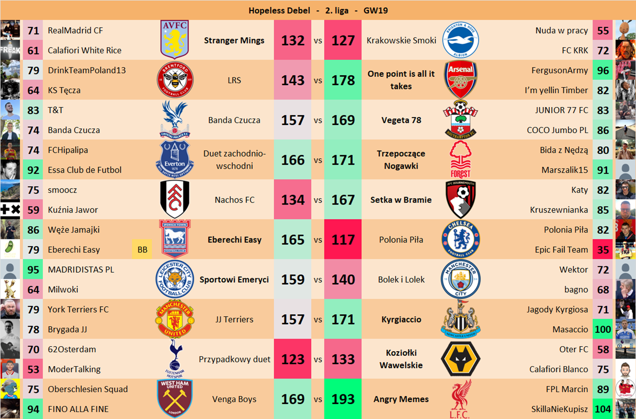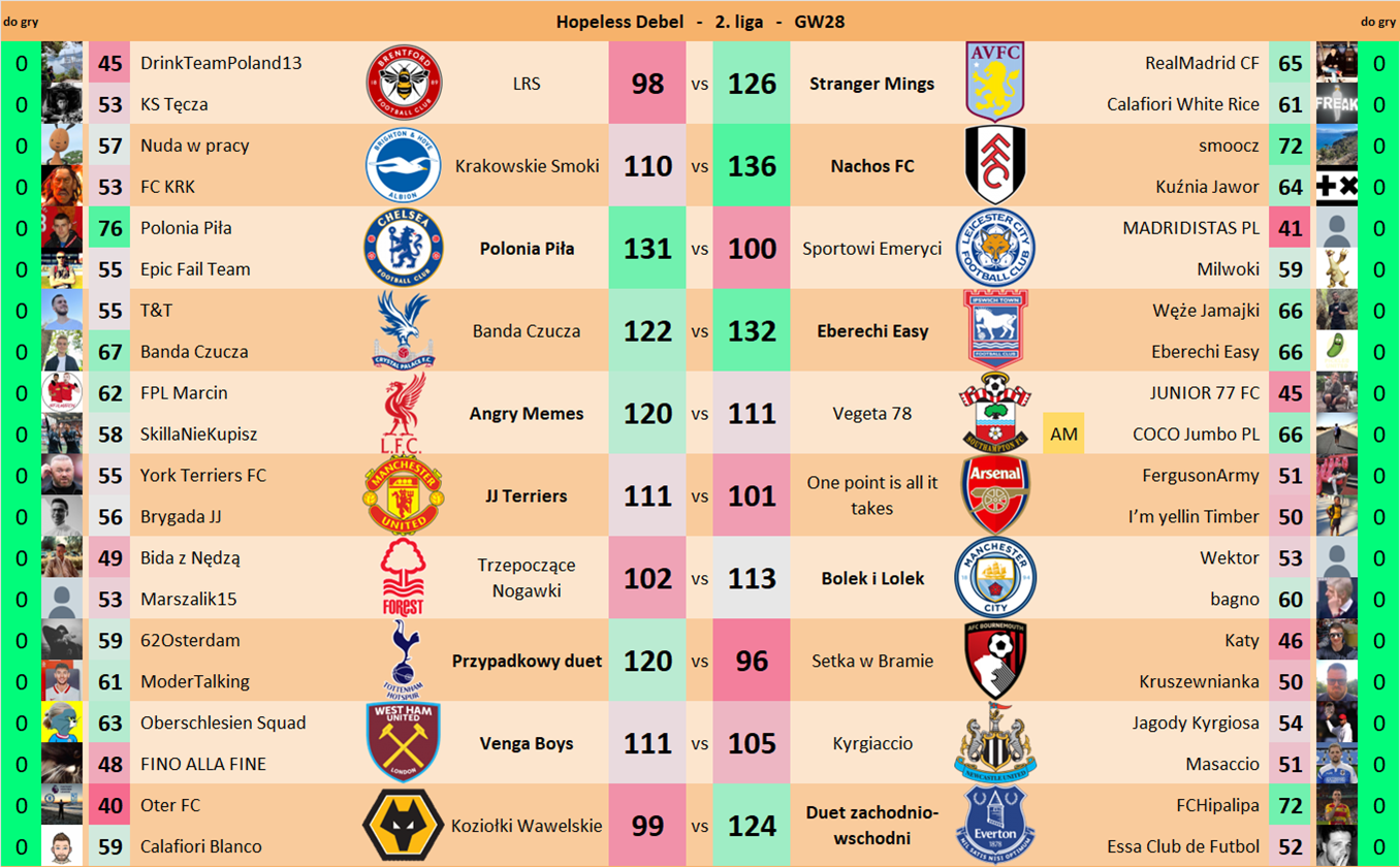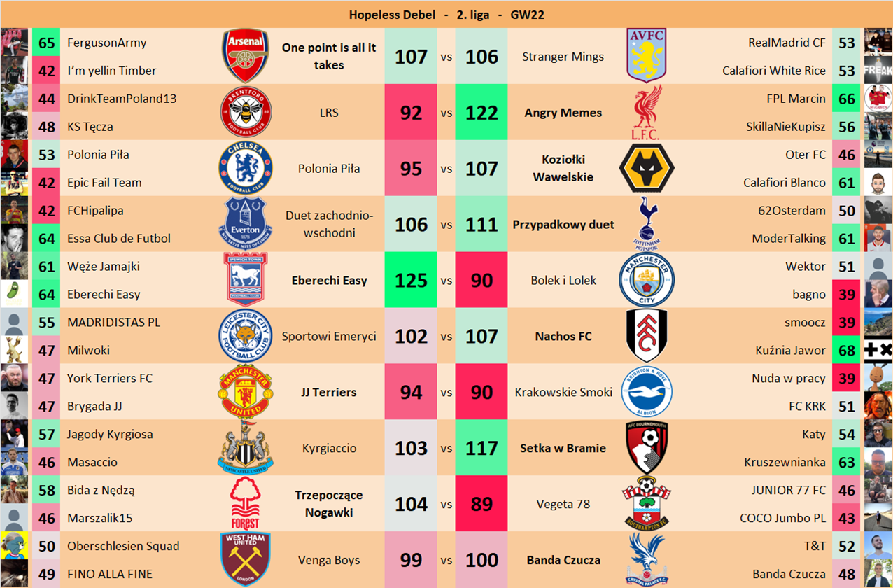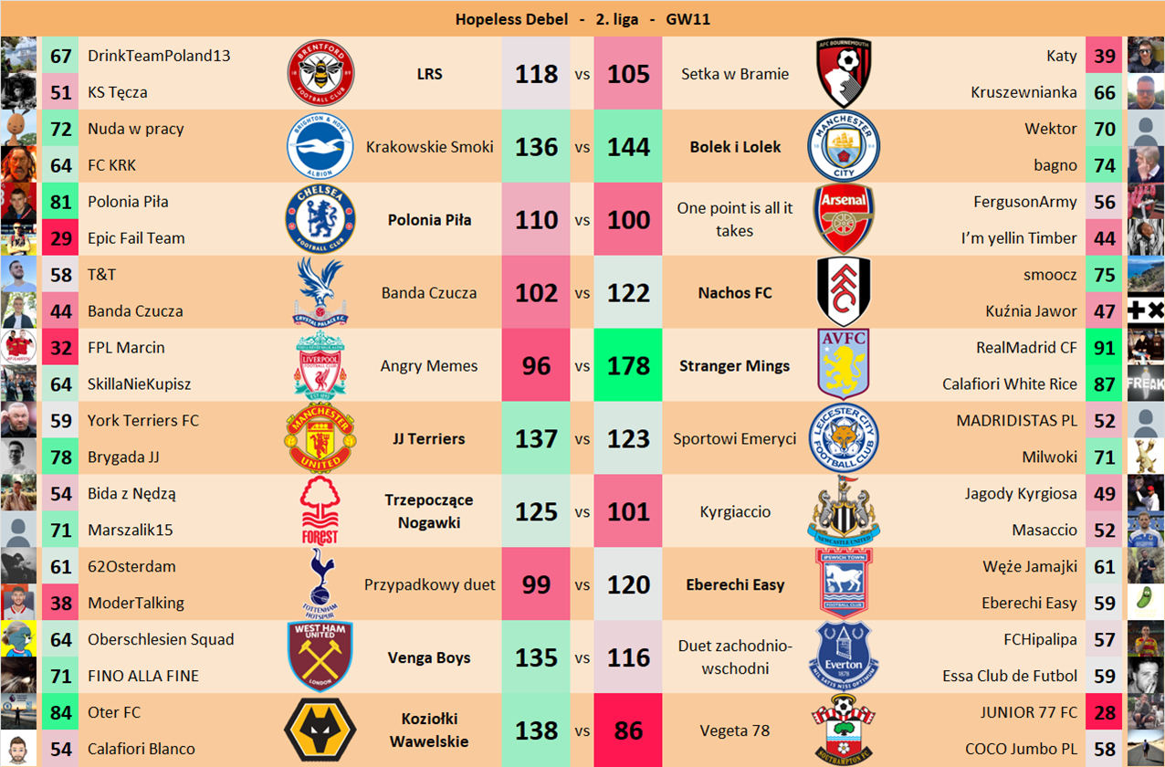 Punkty danej drużyny czyli 2 graczy będą się sumować w danym GW i to będzie wynik danego zespołu w kolejce.