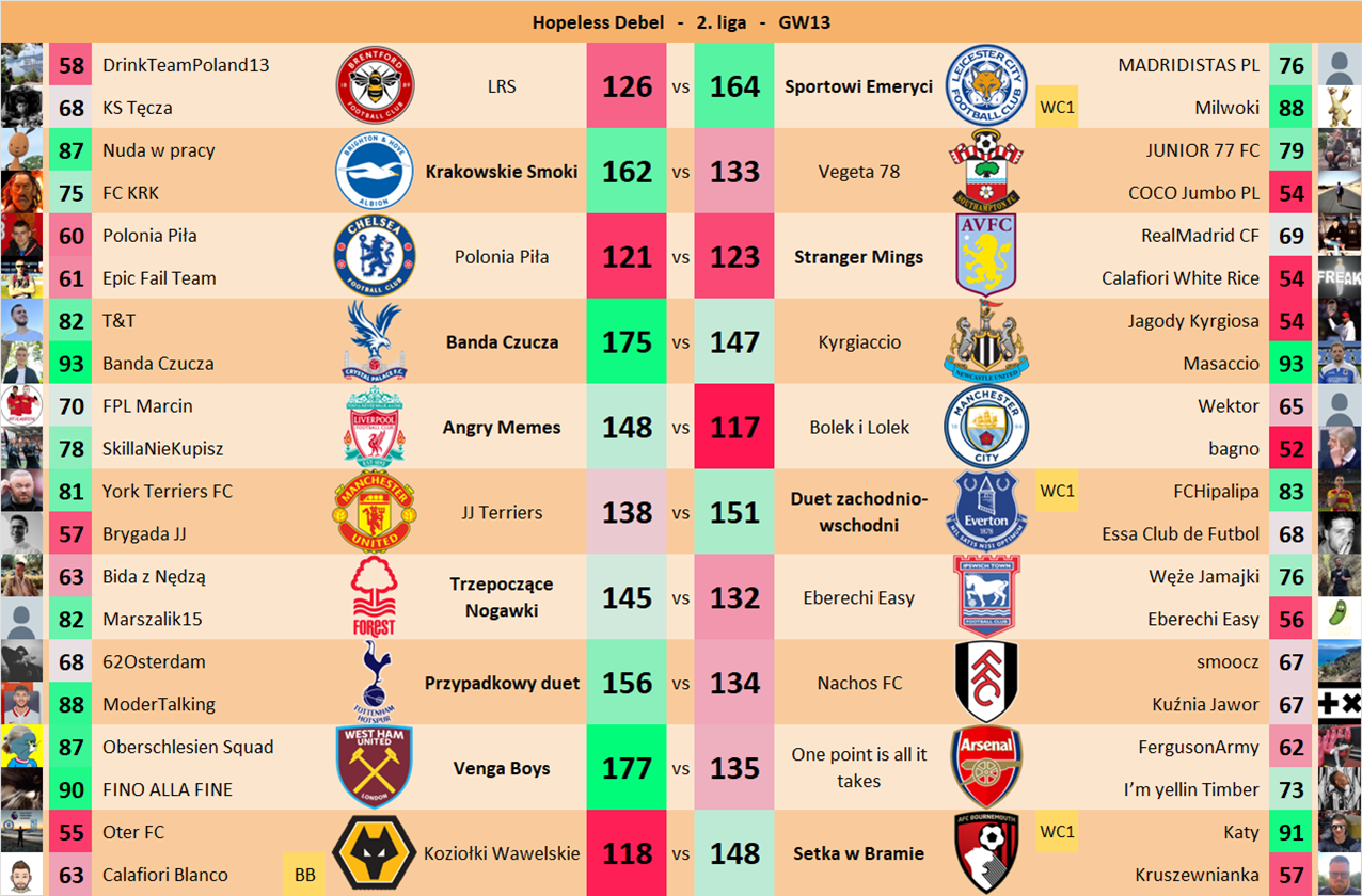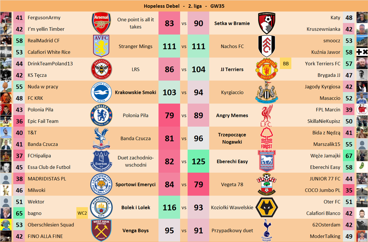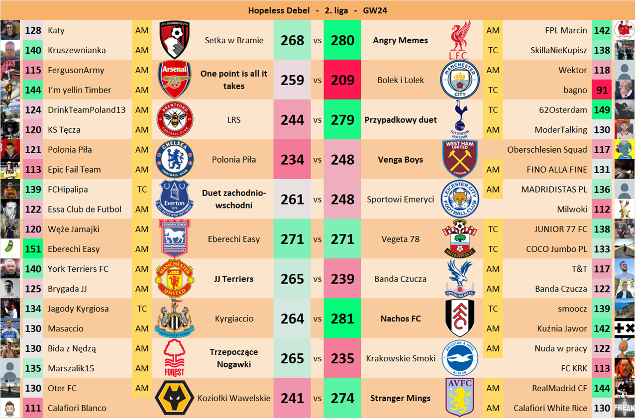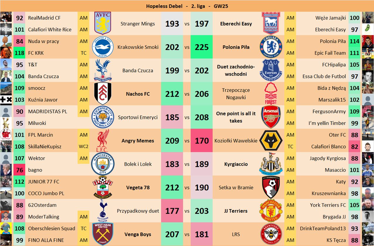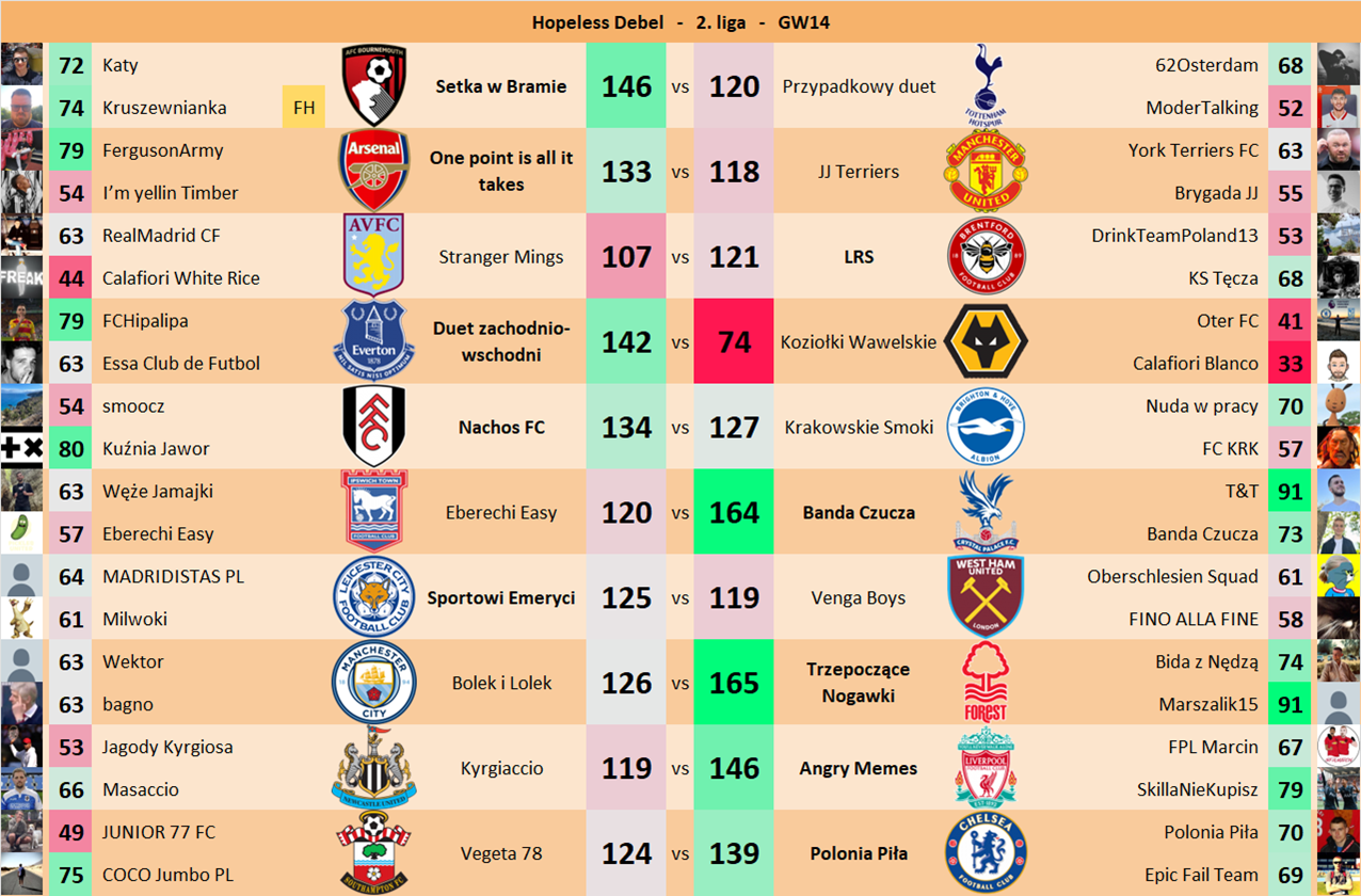 Punkty danej drużyny czyli 2 graczy będą się sumować w danym GW i to będzie wynik danego zespołu w kolejce.