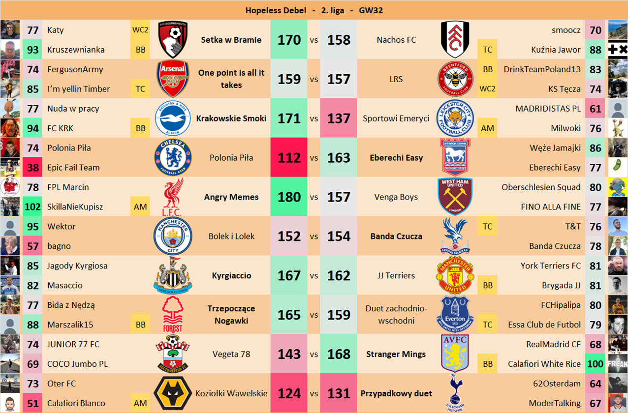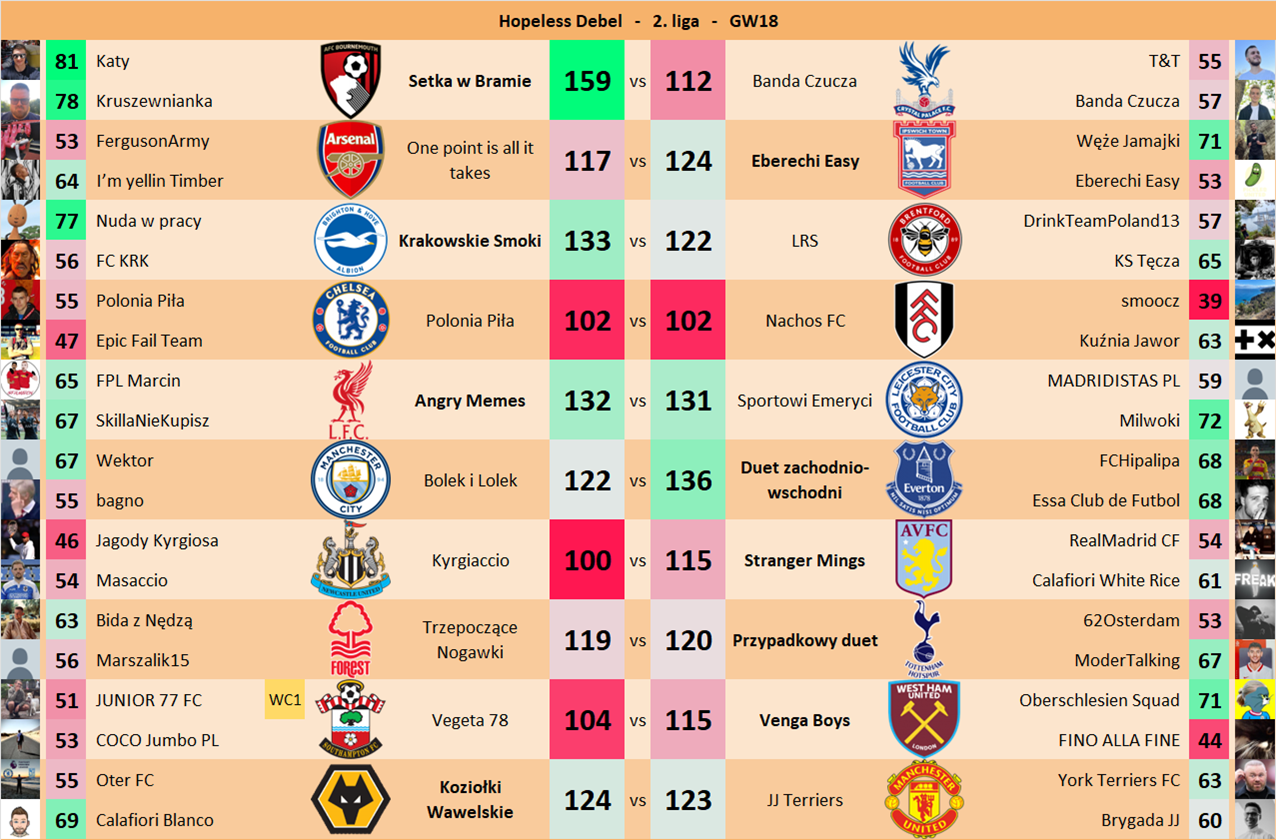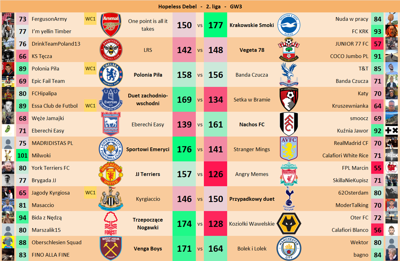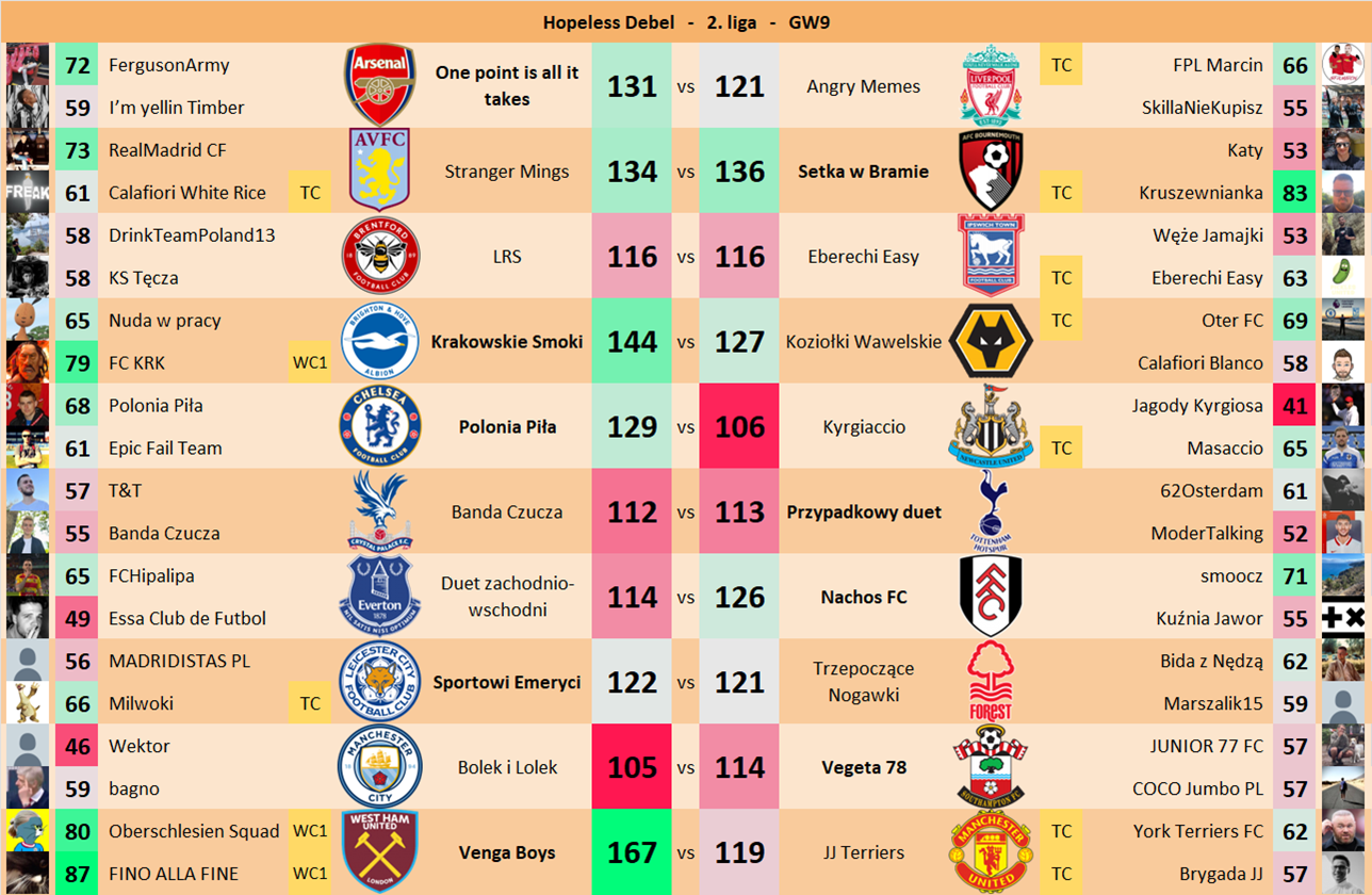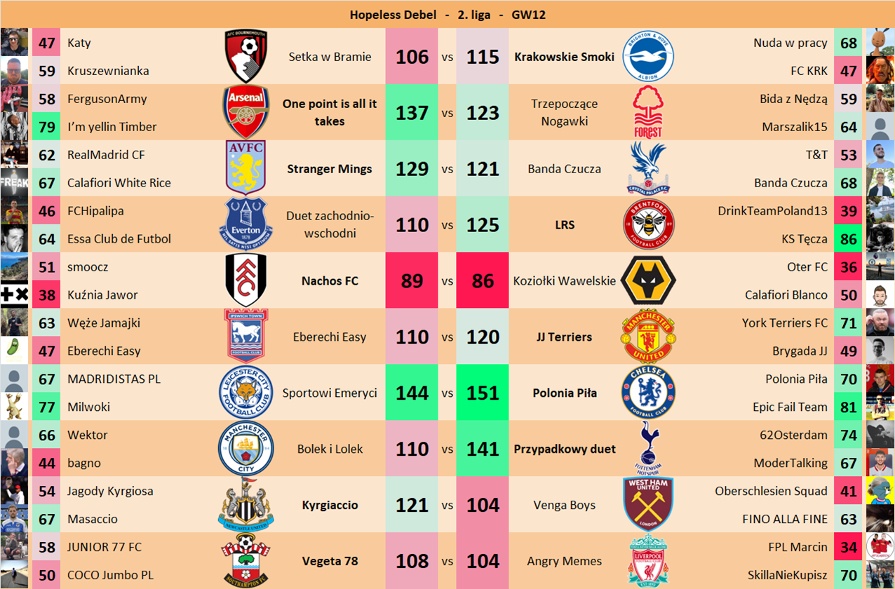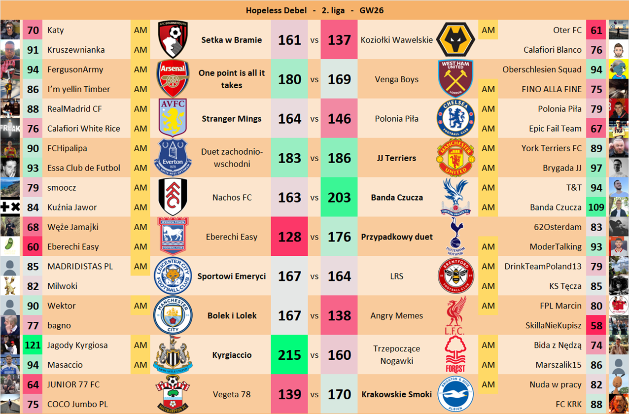 Punkty danej drużyny czyli 2 graczy będą się sumować w danym GW i to będzie wynik danego zespołu w kolejce.