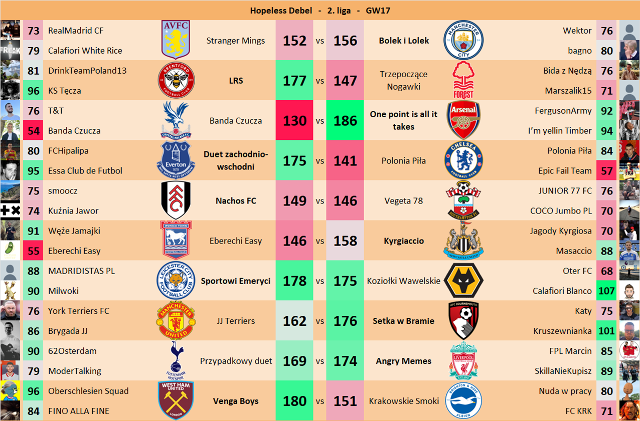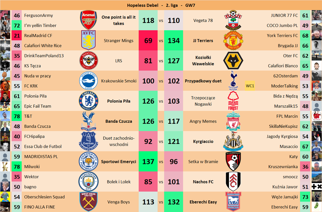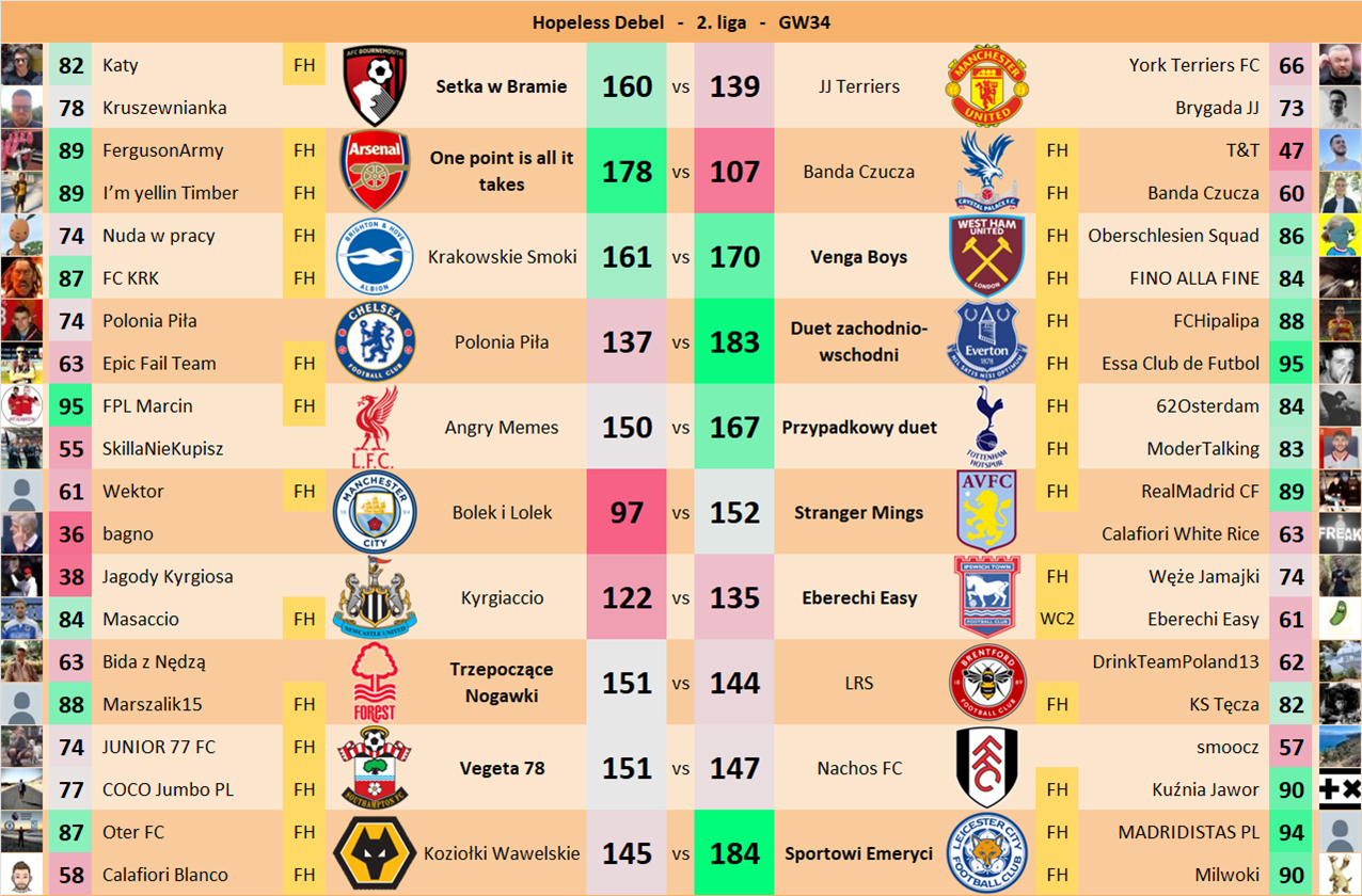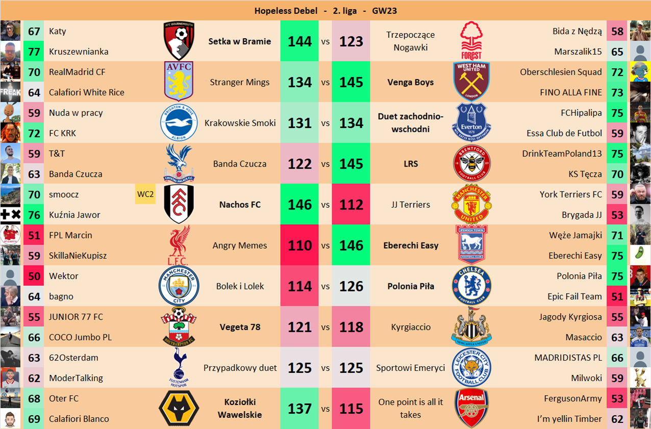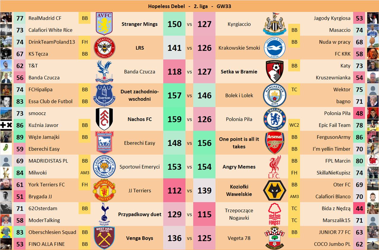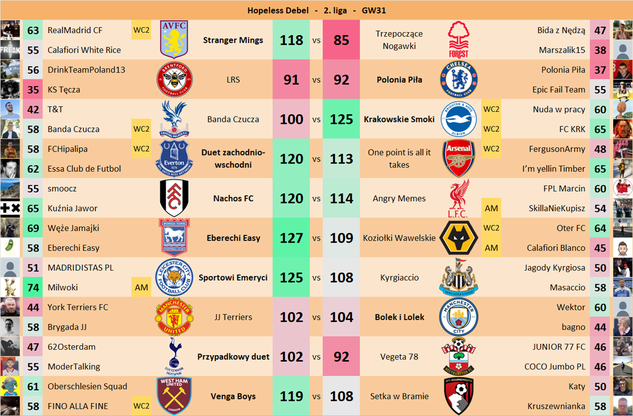 Punkty danej drużyny czyli 2 graczy będą się sumować w danym GW i to będzie wynik danego zespołu w kolejce.