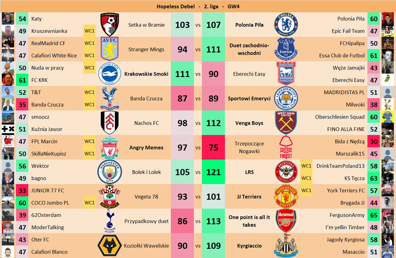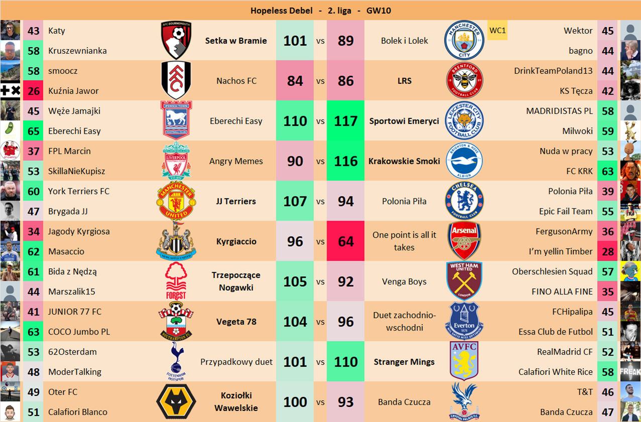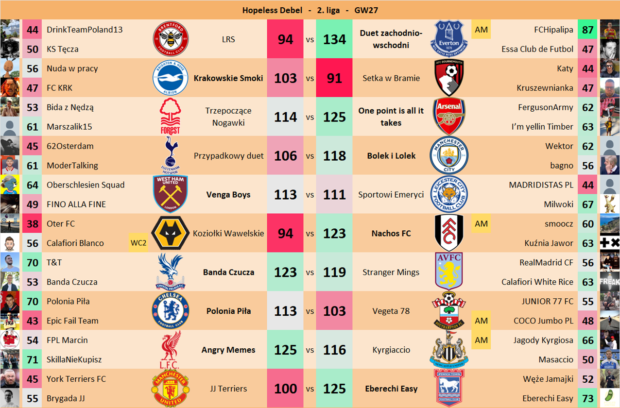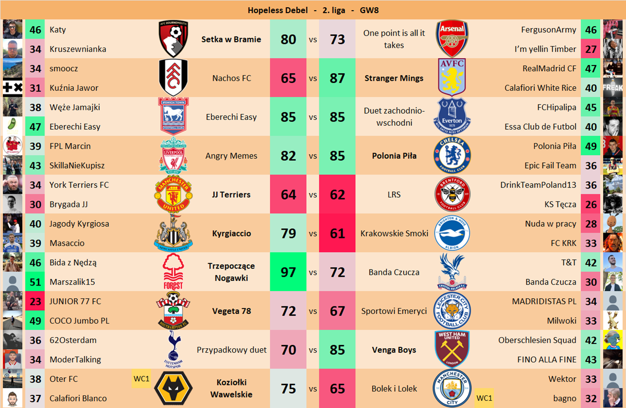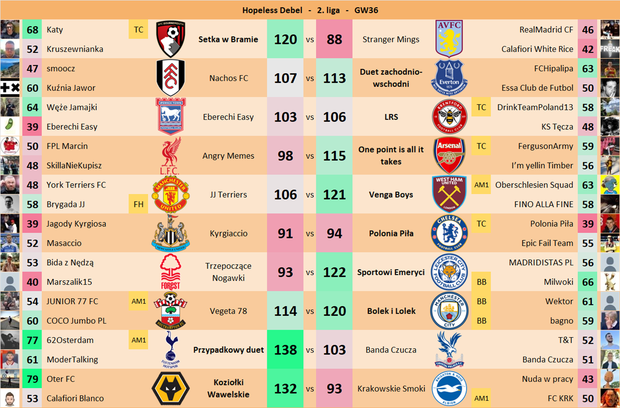 Punkty danej drużyny czyli 2 graczy będą się sumować w danym GW i to będzie wynik danego zespołu w kolejce.