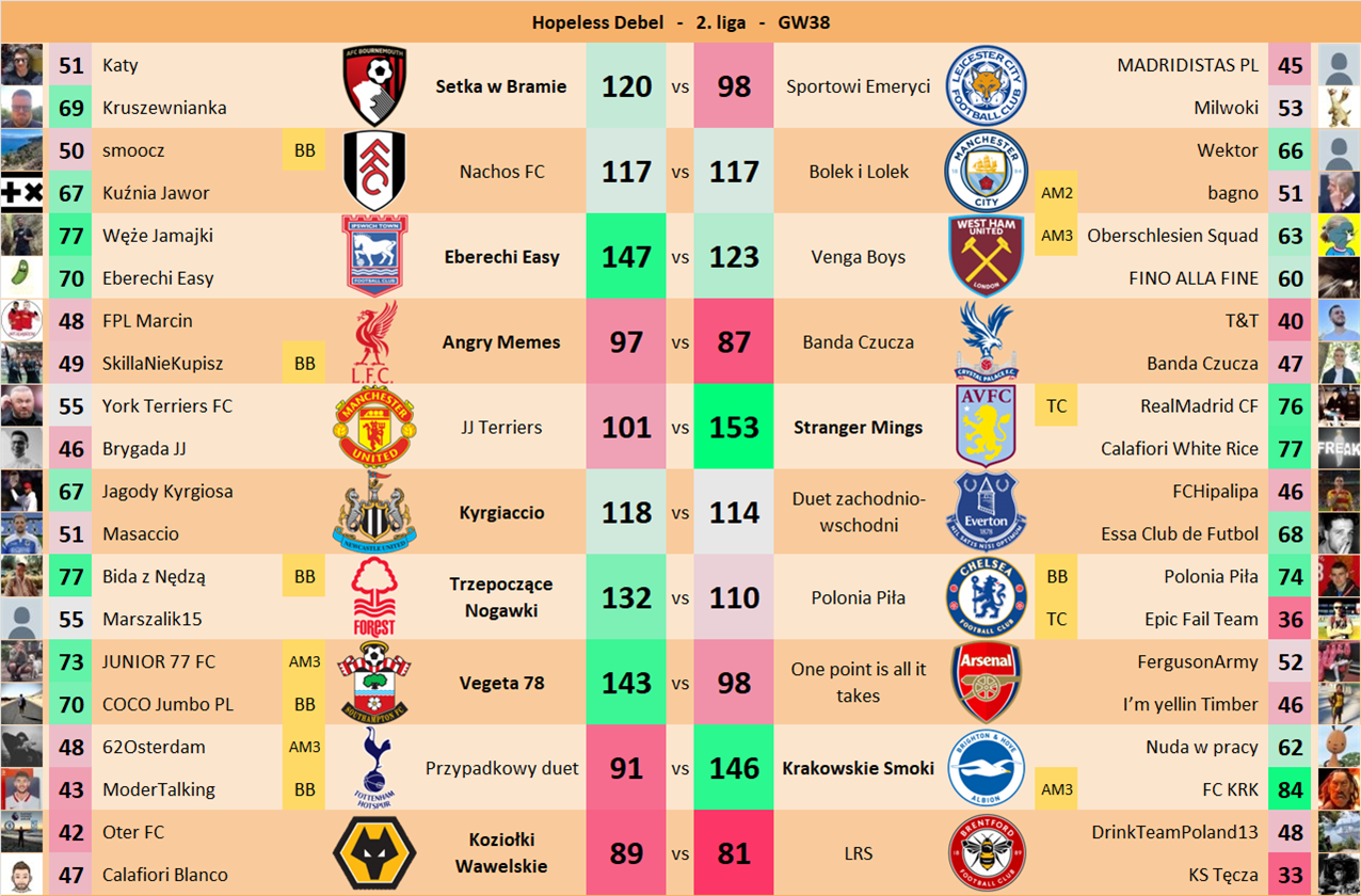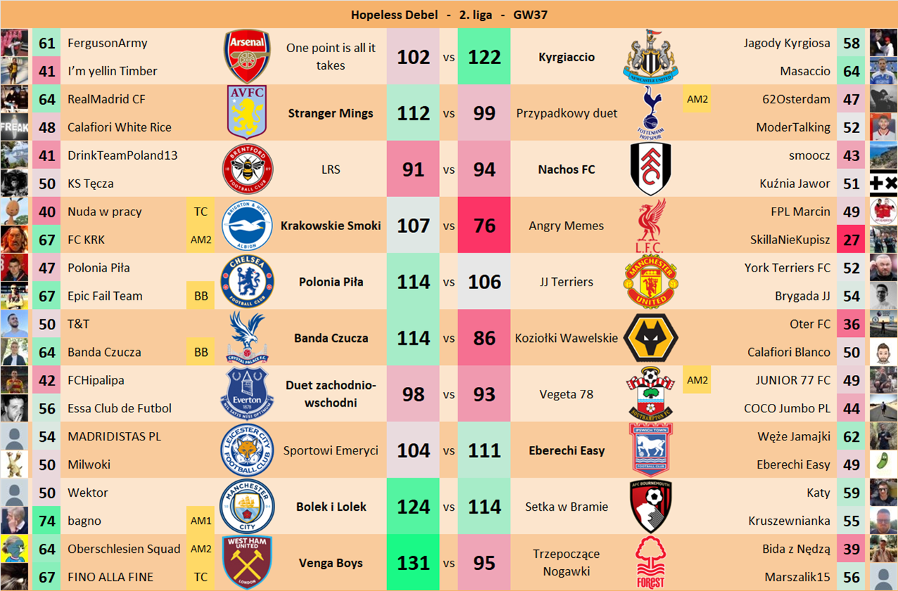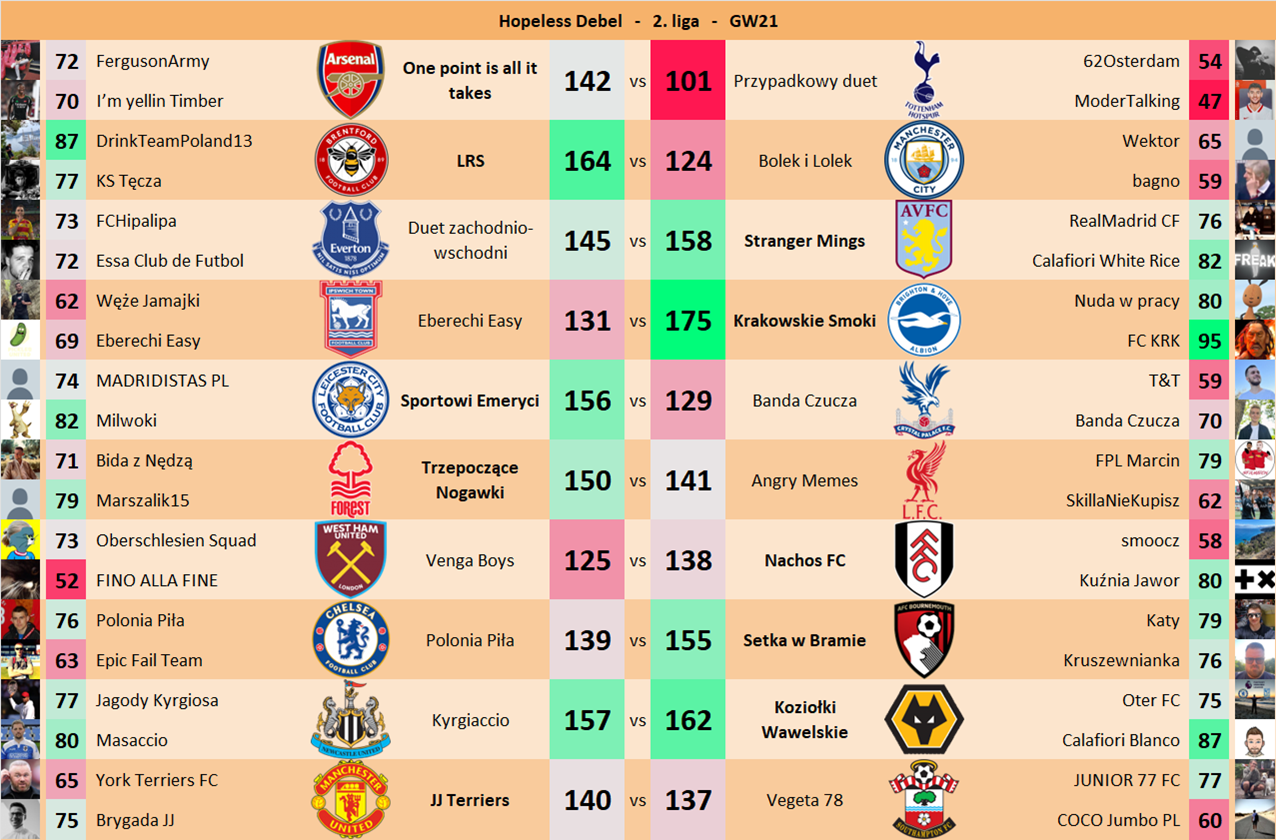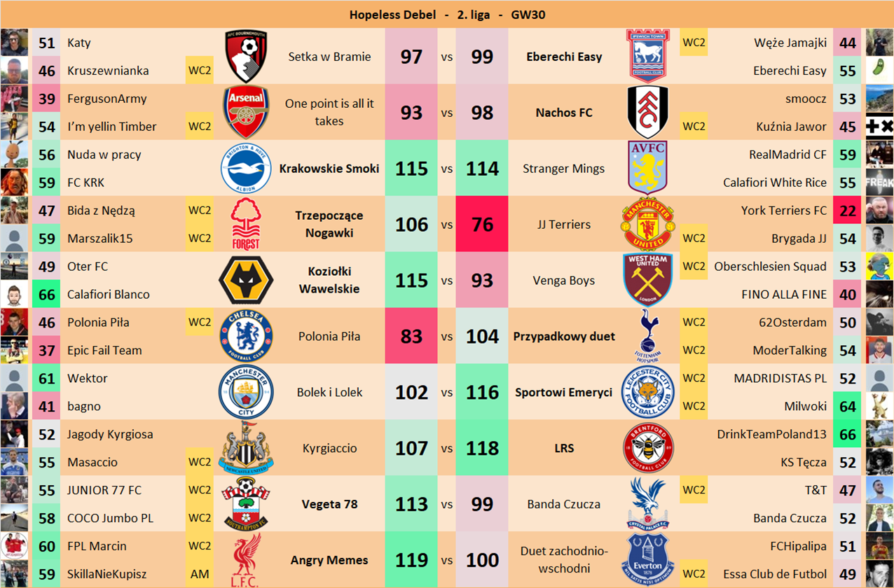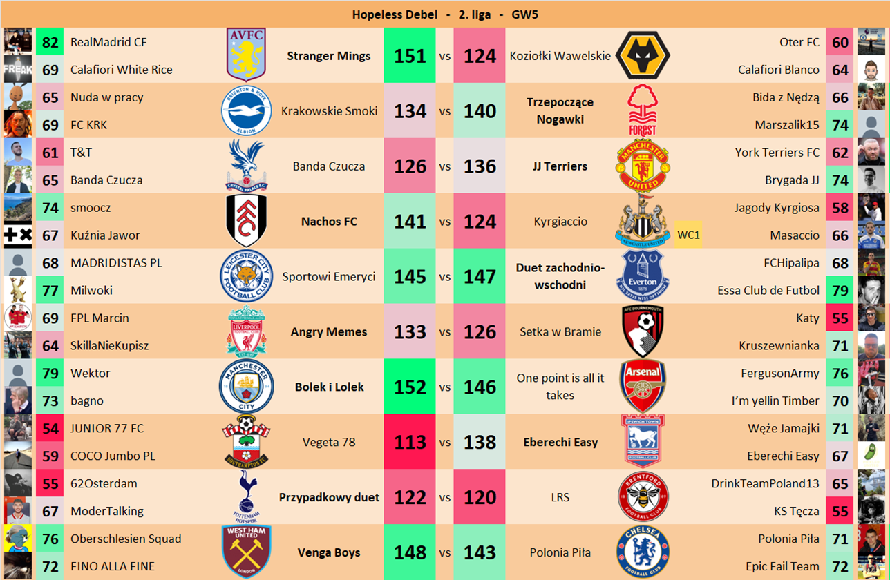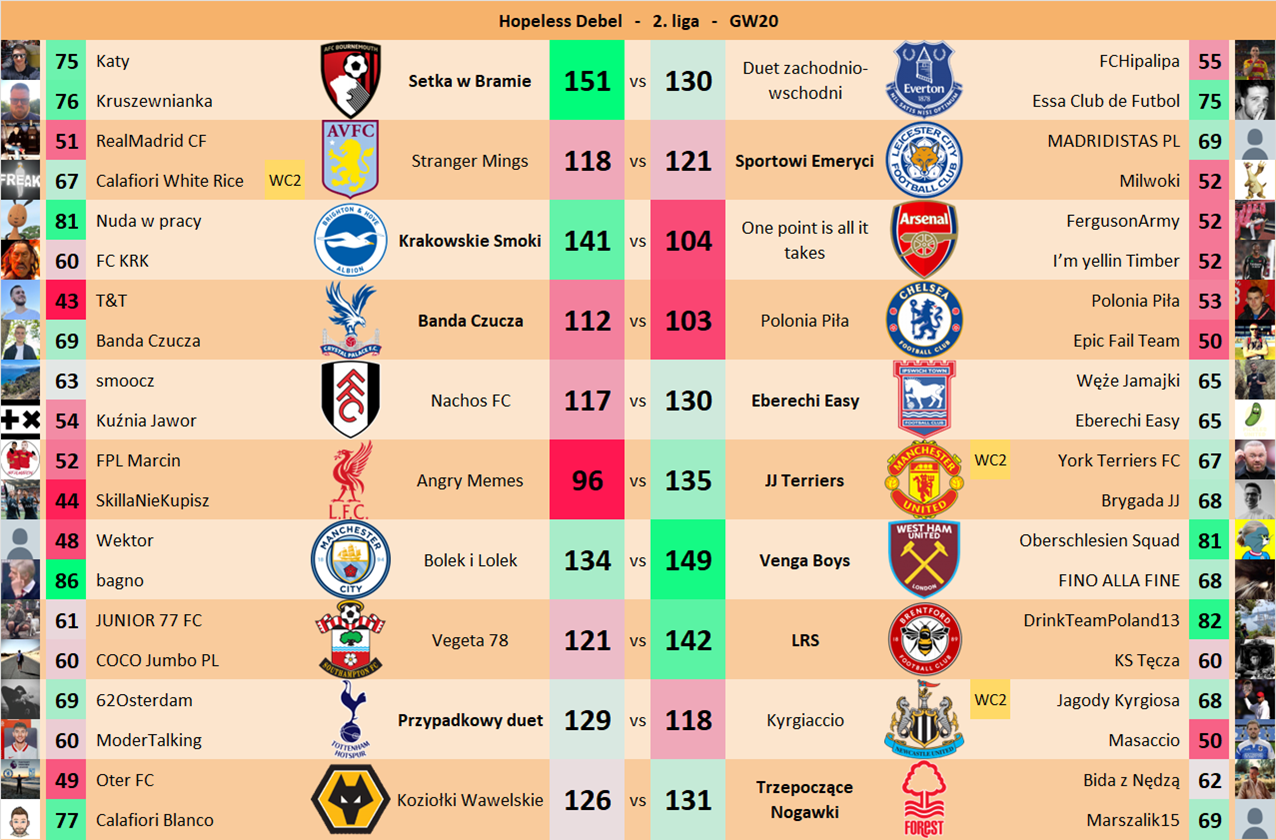 Punkty danej drużyny czyli 2 graczy będą się sumować w danym GW i to będzie wynik danego zespołu w kolejce.