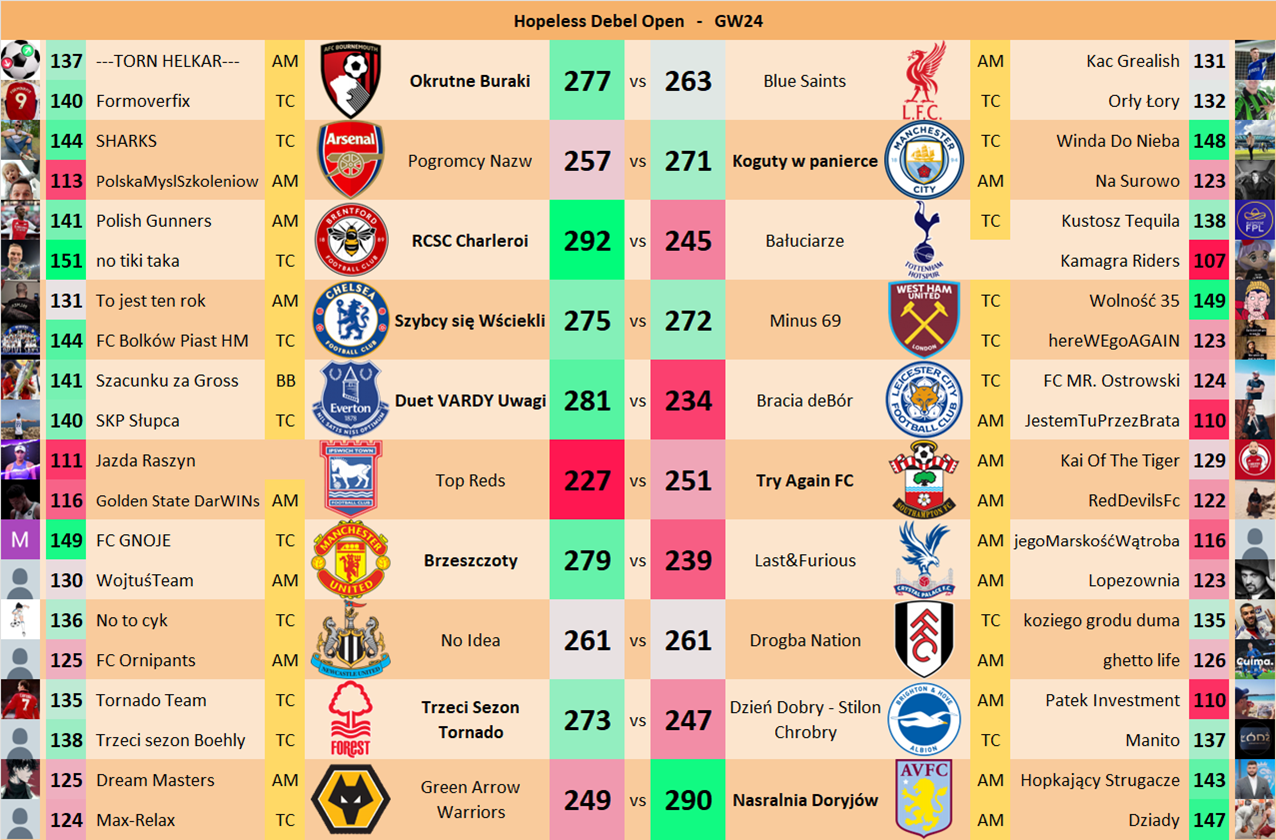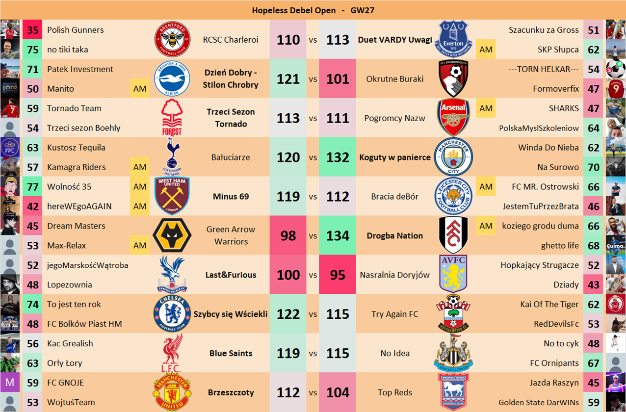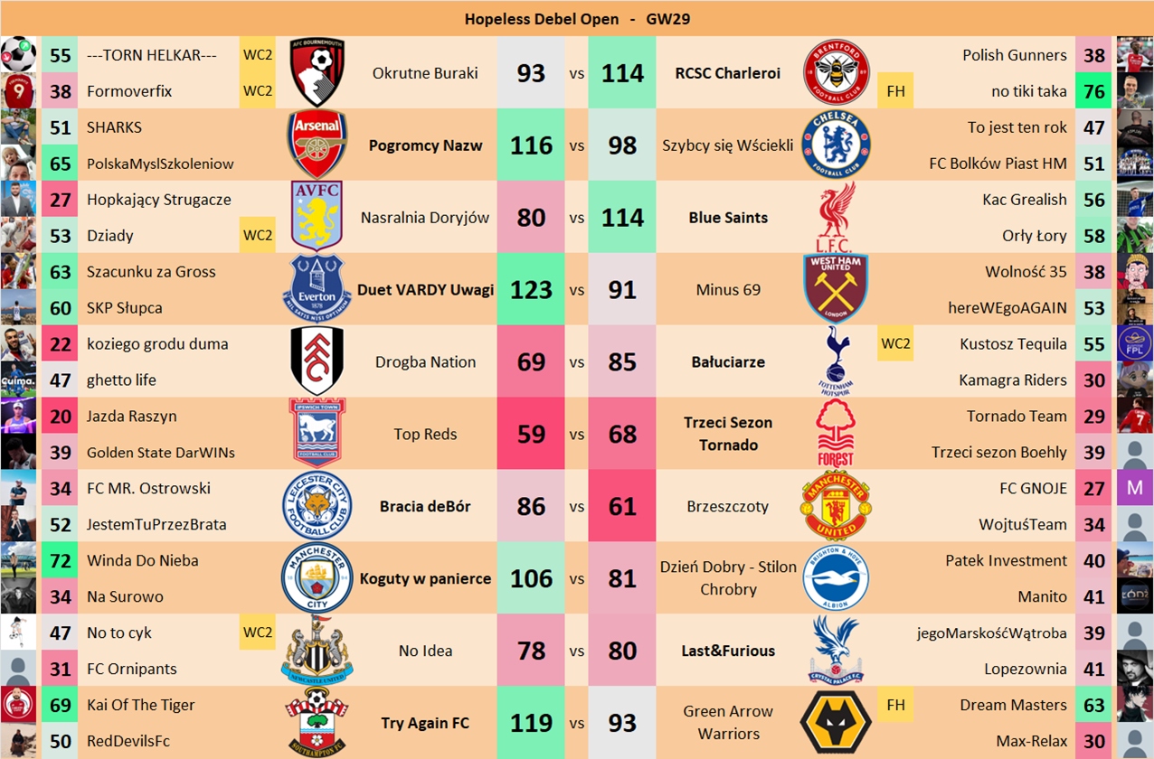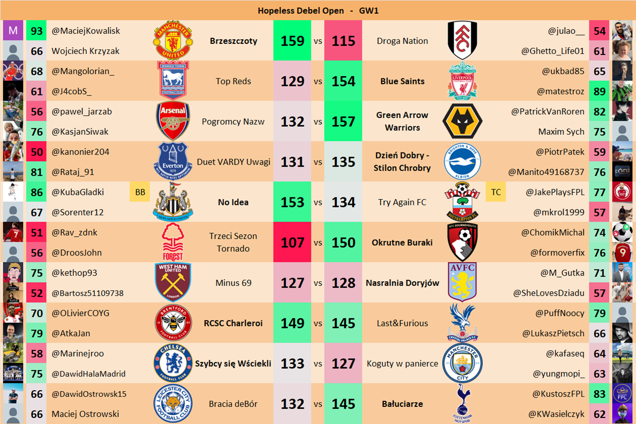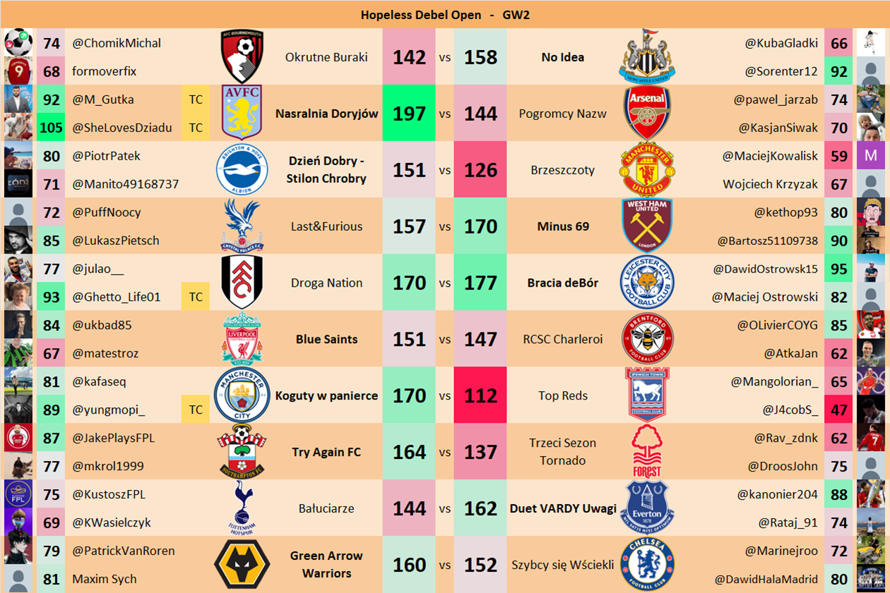 Punkty danej drużyny czyli 2 graczy będą się sumować w danym GW i to będzie wynik danego zespołu w kolejce.