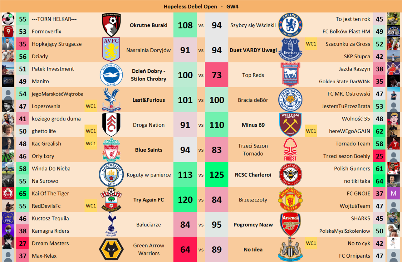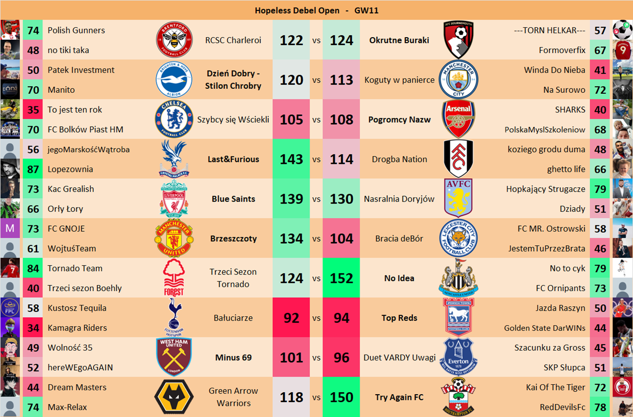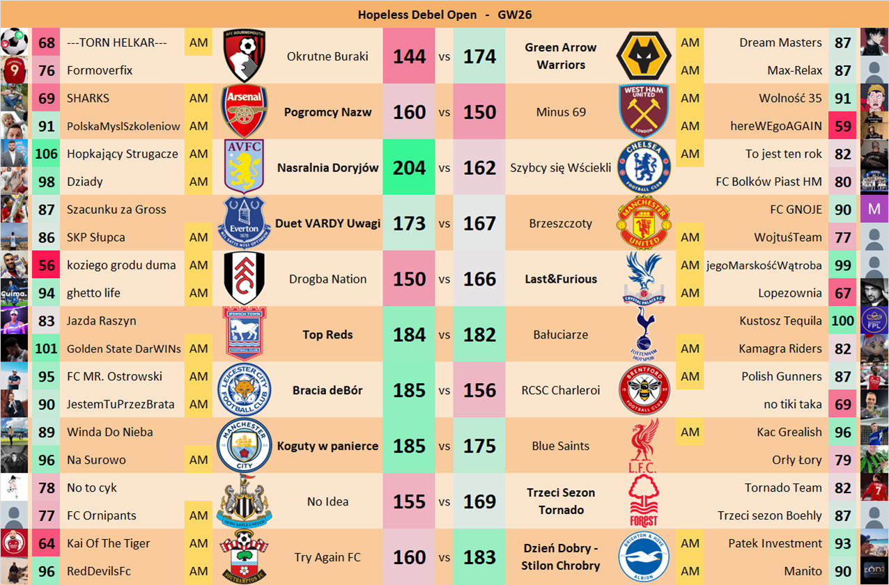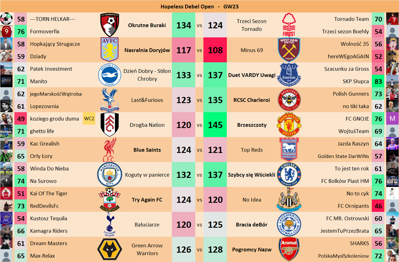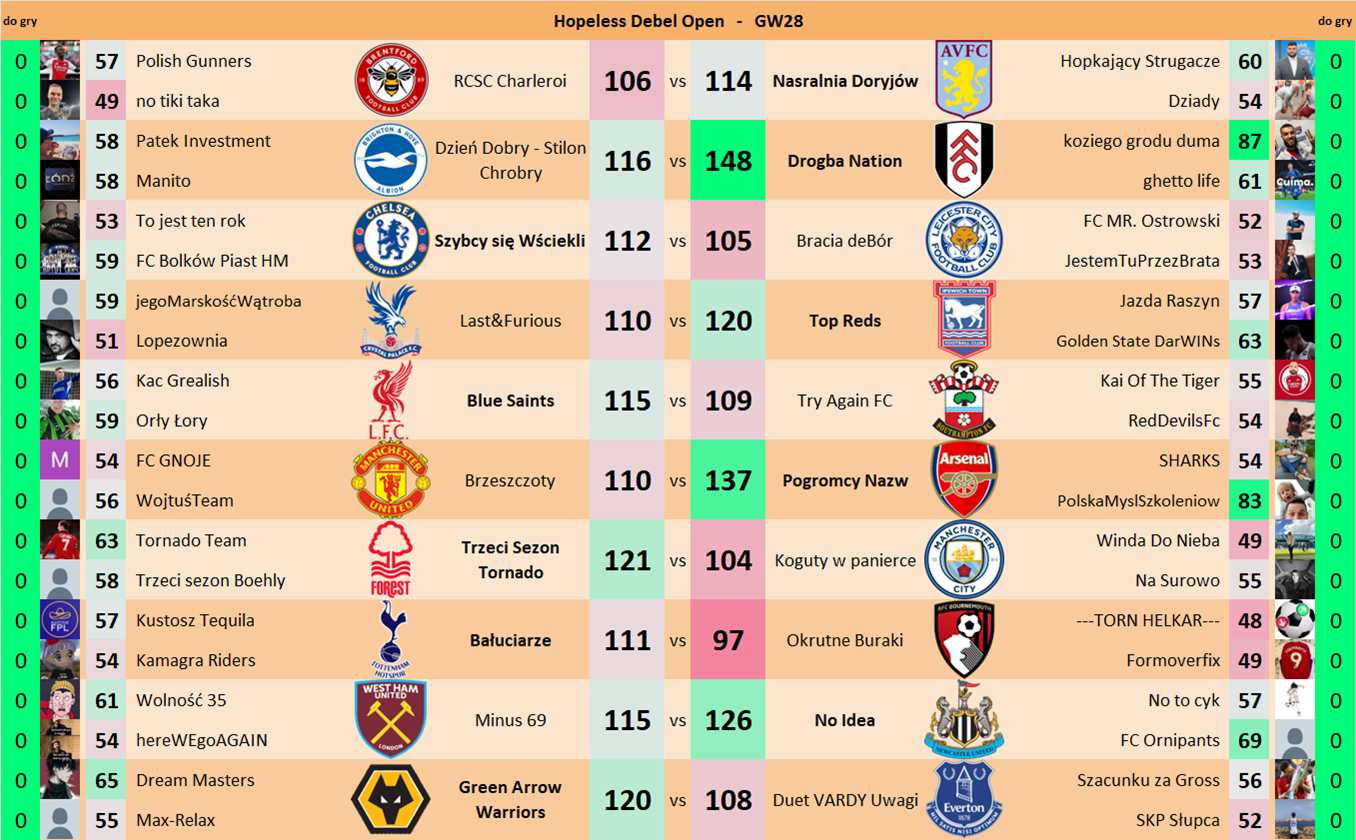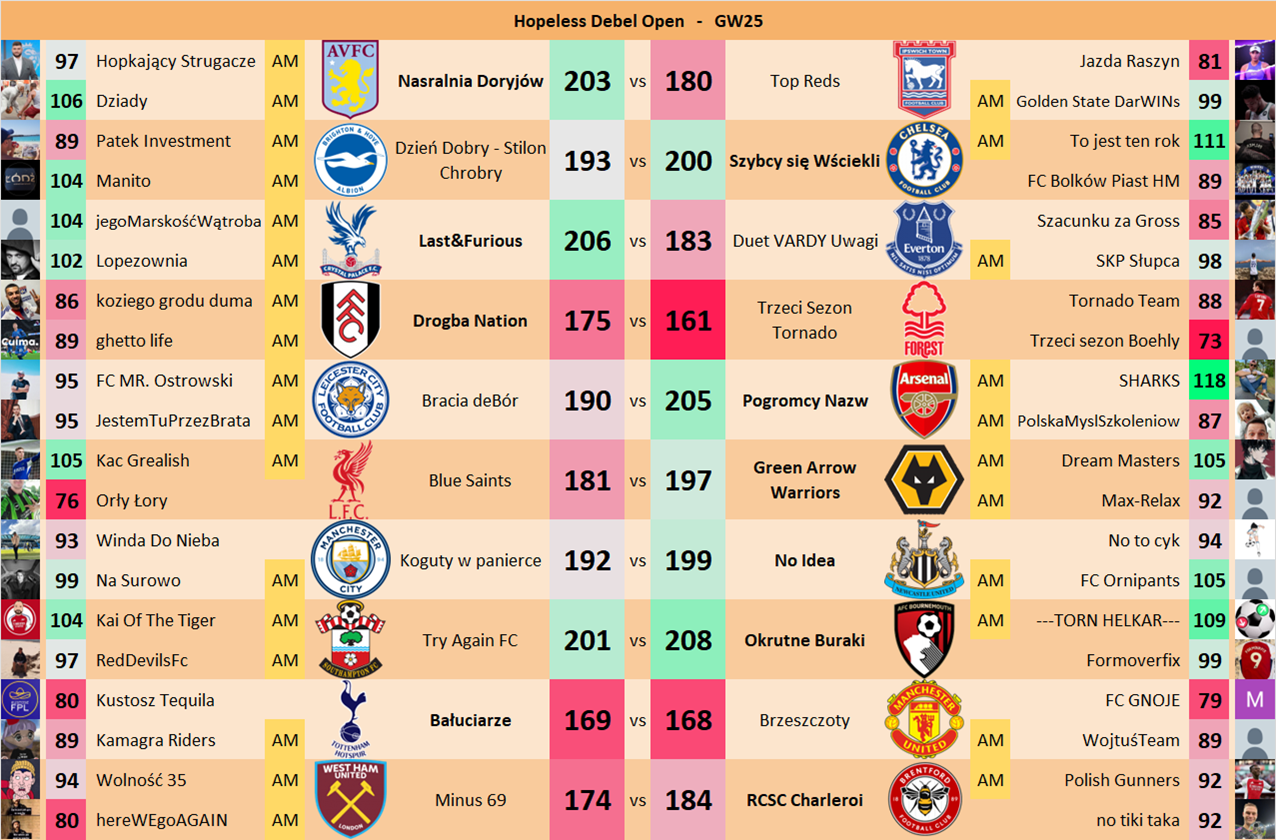 Punkty danej drużyny czyli 2 graczy będą się sumować w danym GW i to będzie wynik danego zespołu w kolejce.