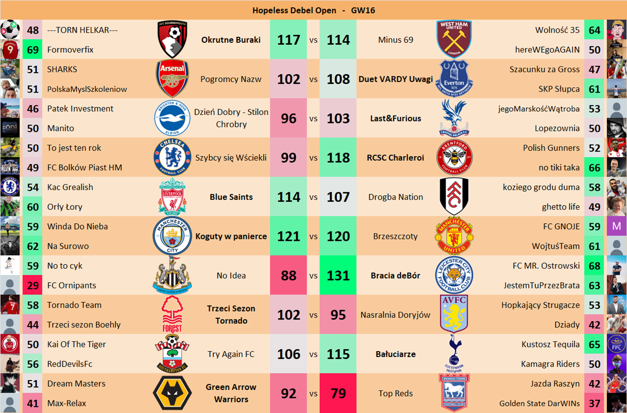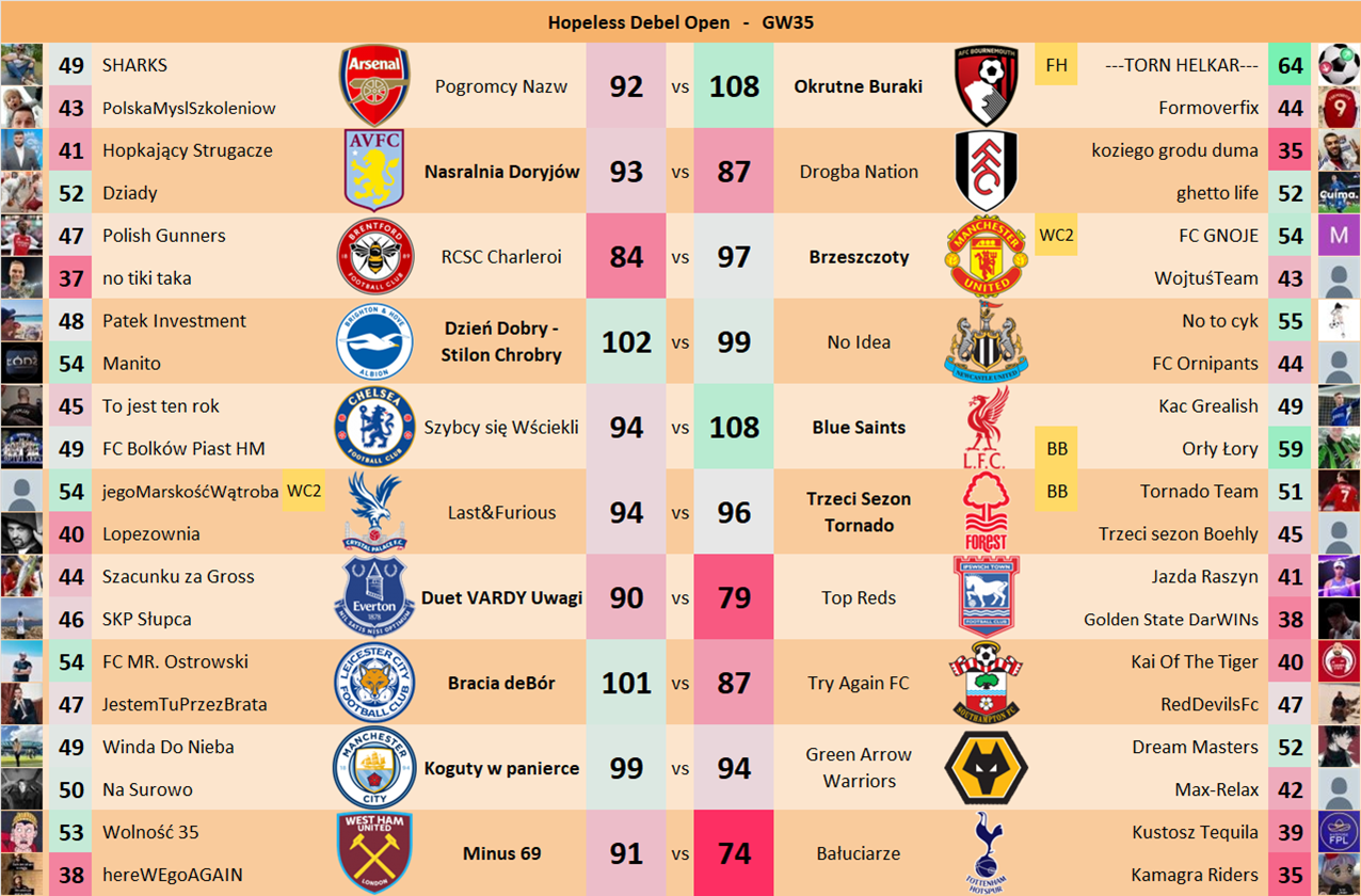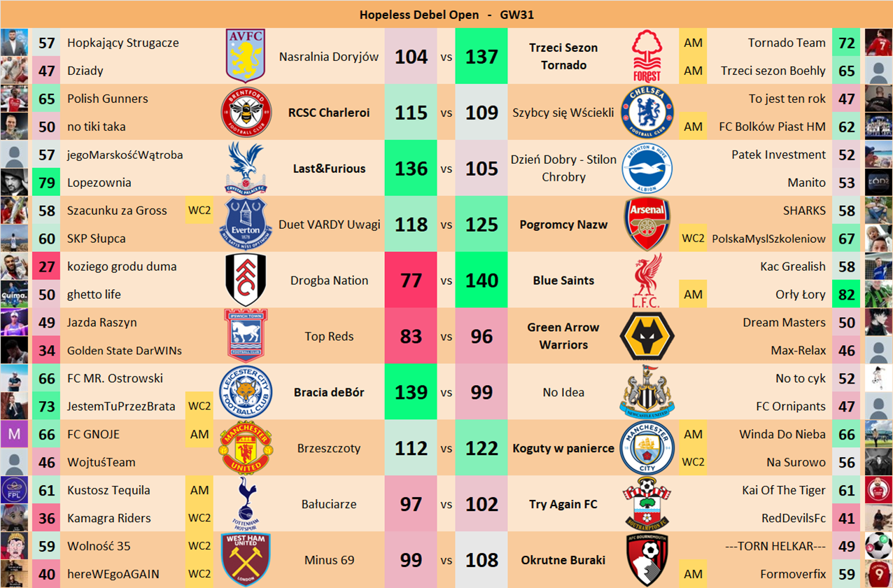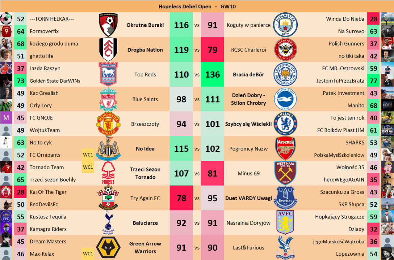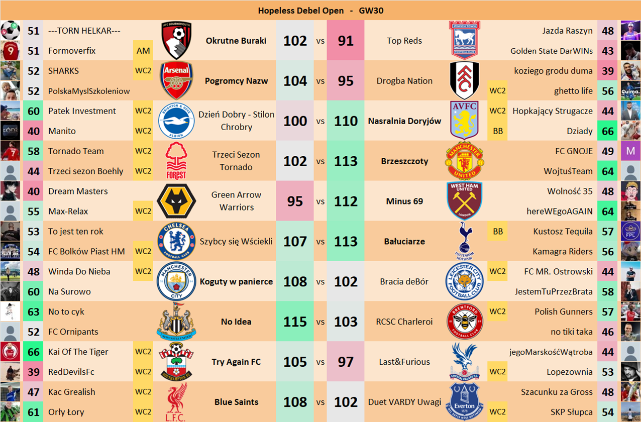 Punkty danej drużyny czyli 2 graczy będą się sumować w danym GW i to będzie wynik danego zespołu w kolejce.