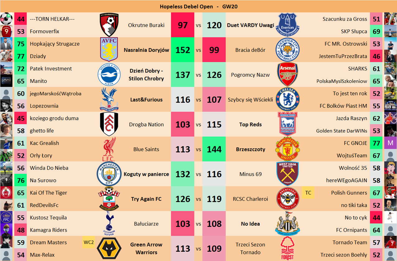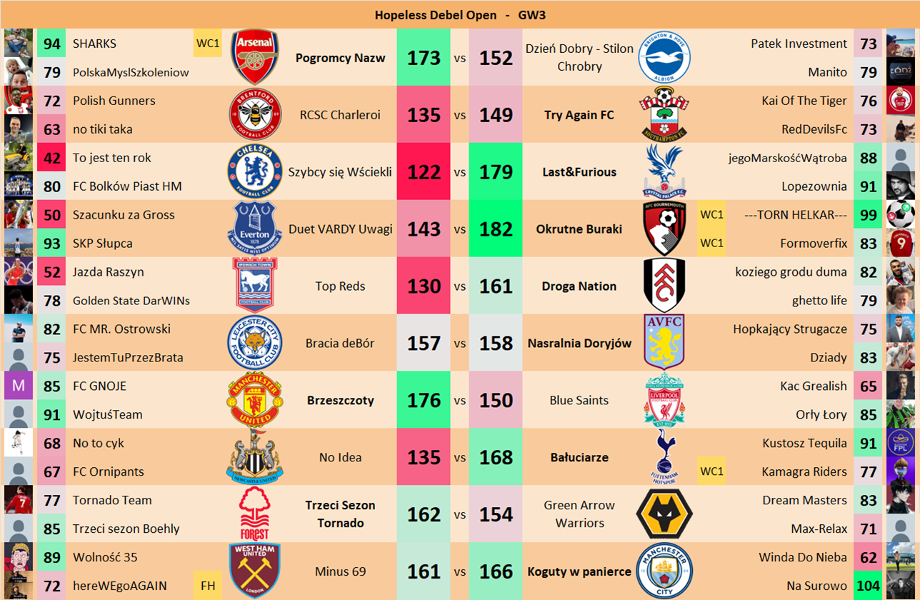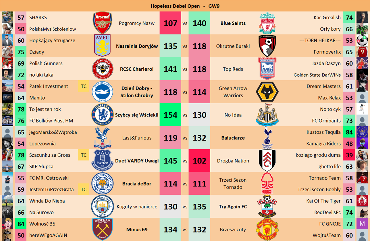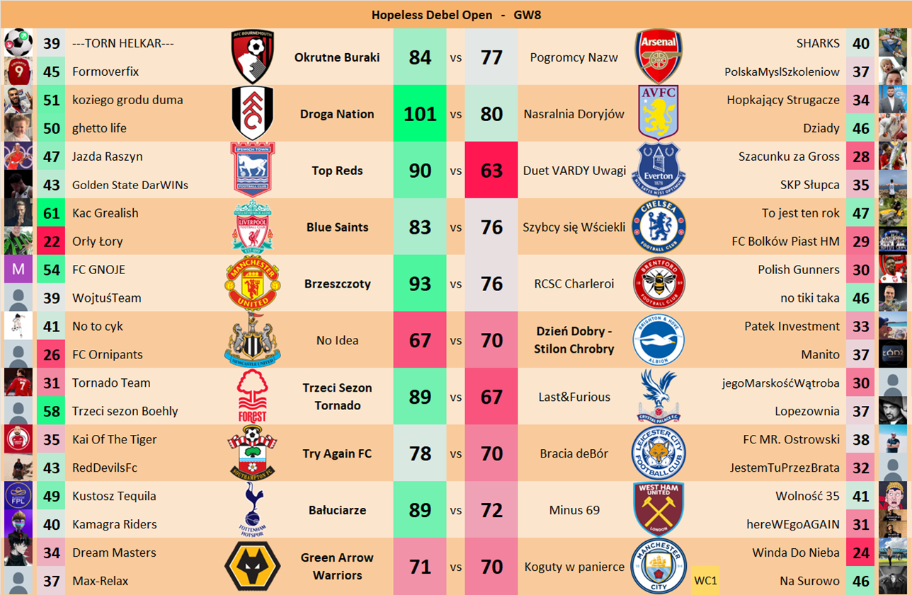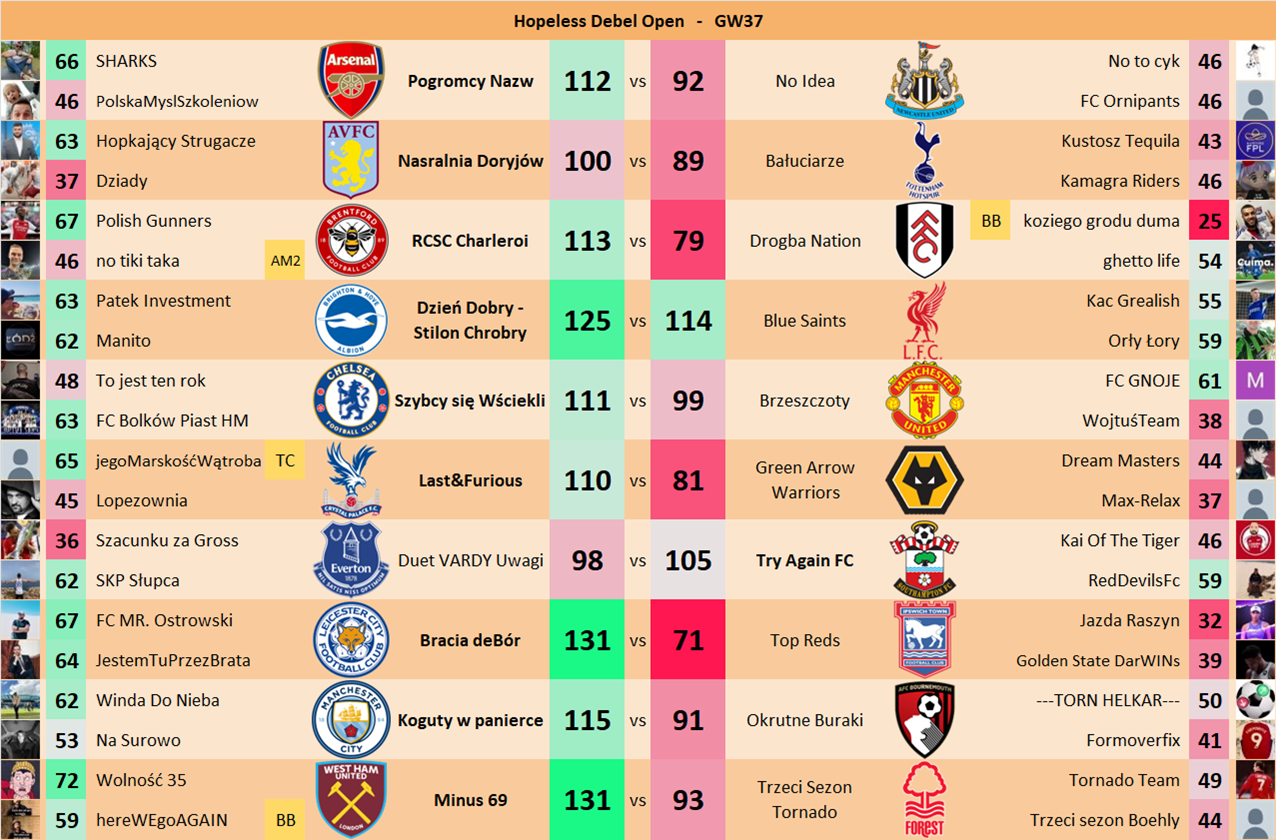 Punkty danej drużyny czyli 2 graczy będą się sumować w danym GW i to będzie wynik danego zespołu w kolejce.