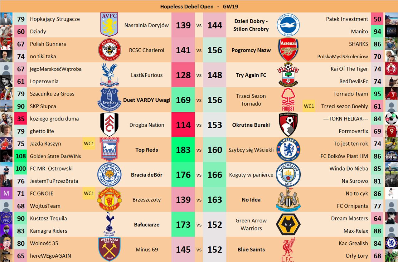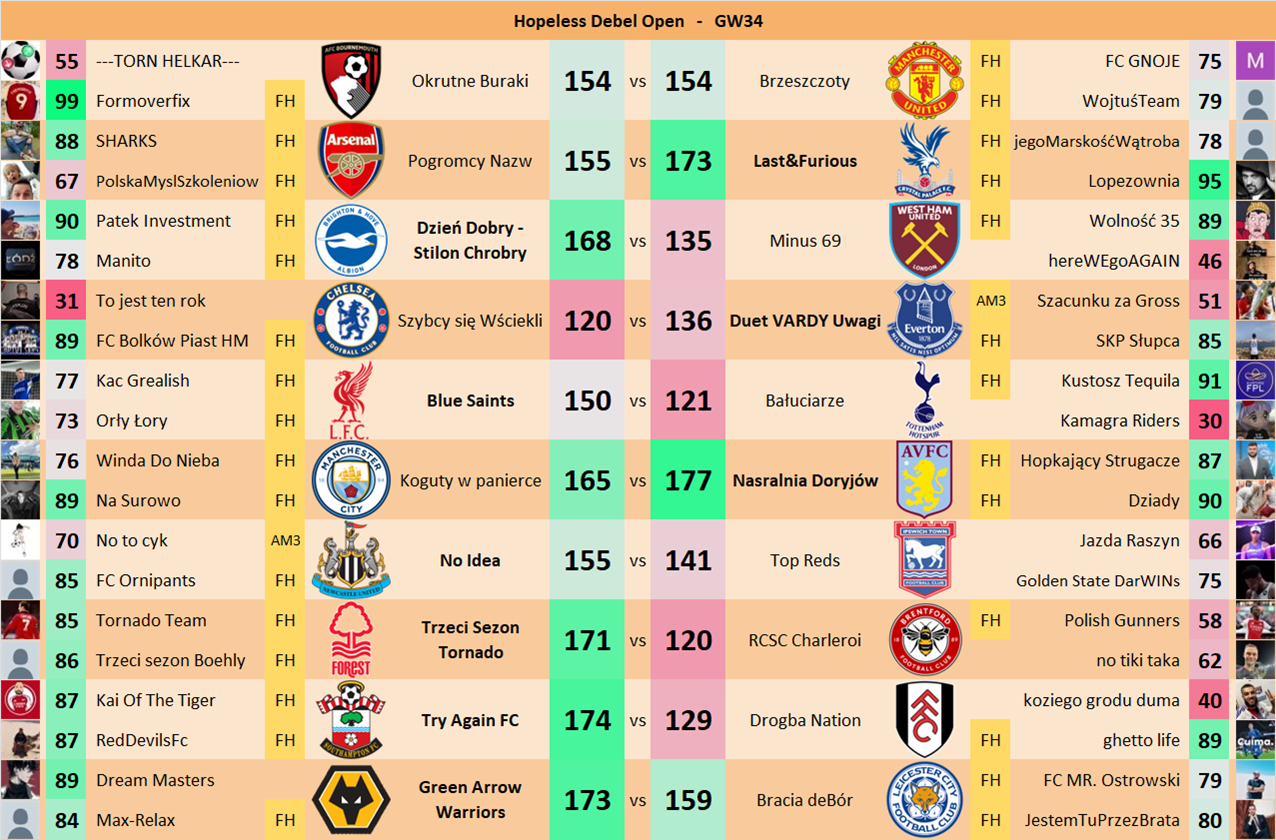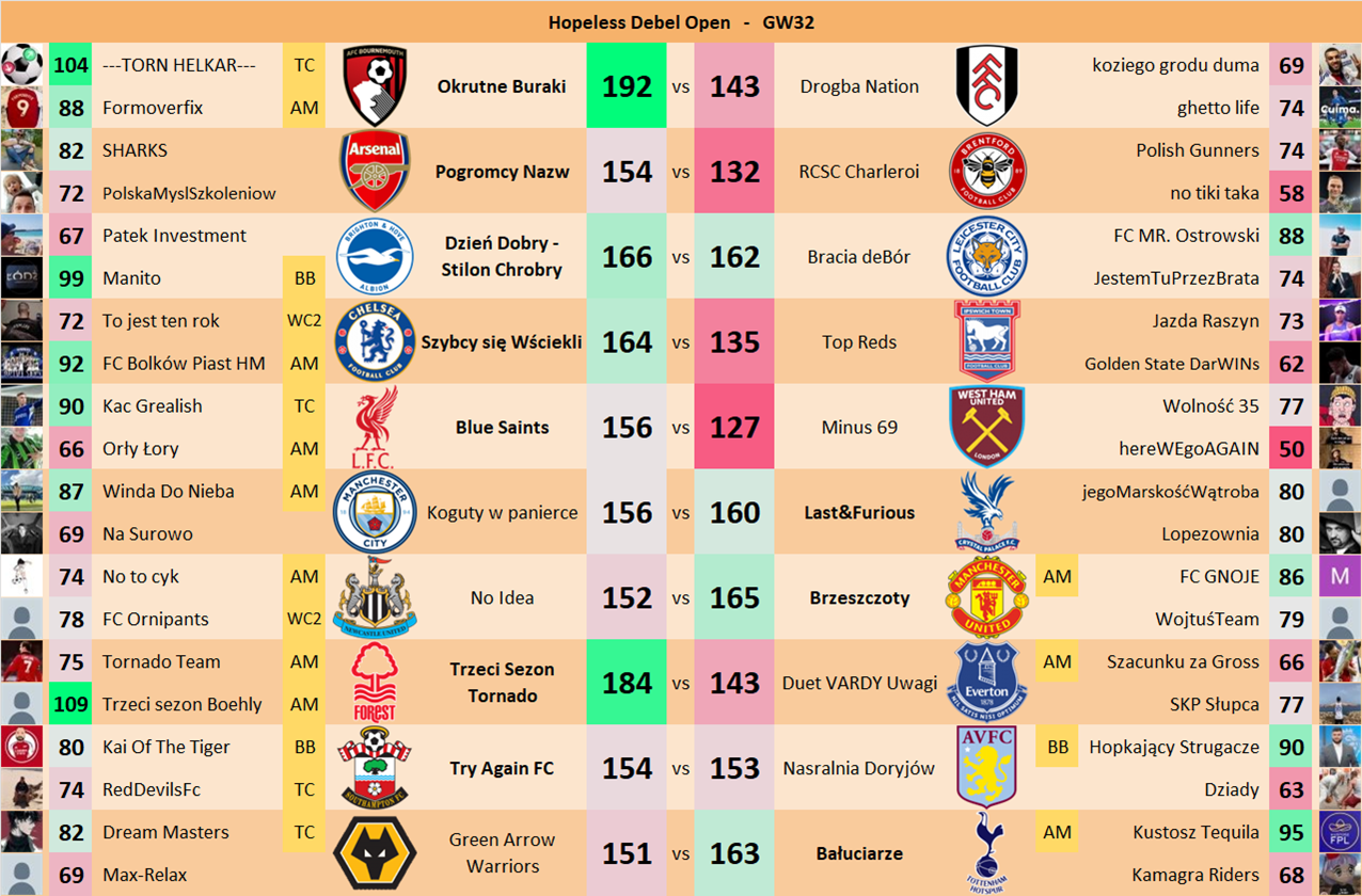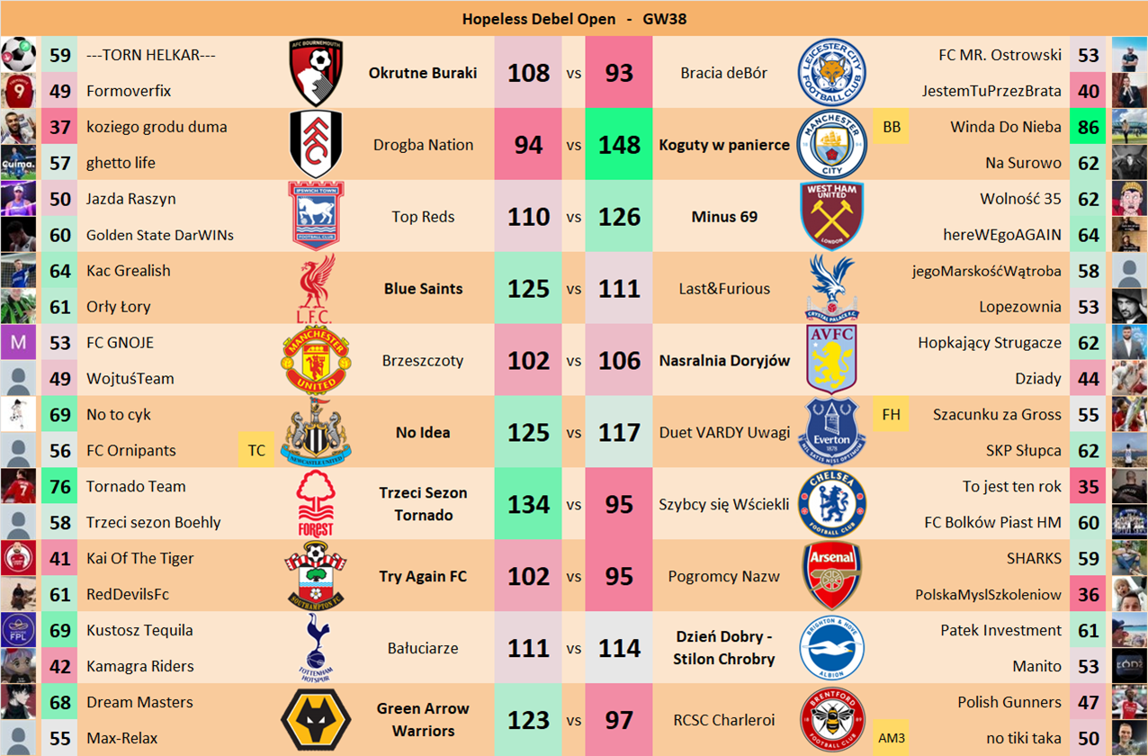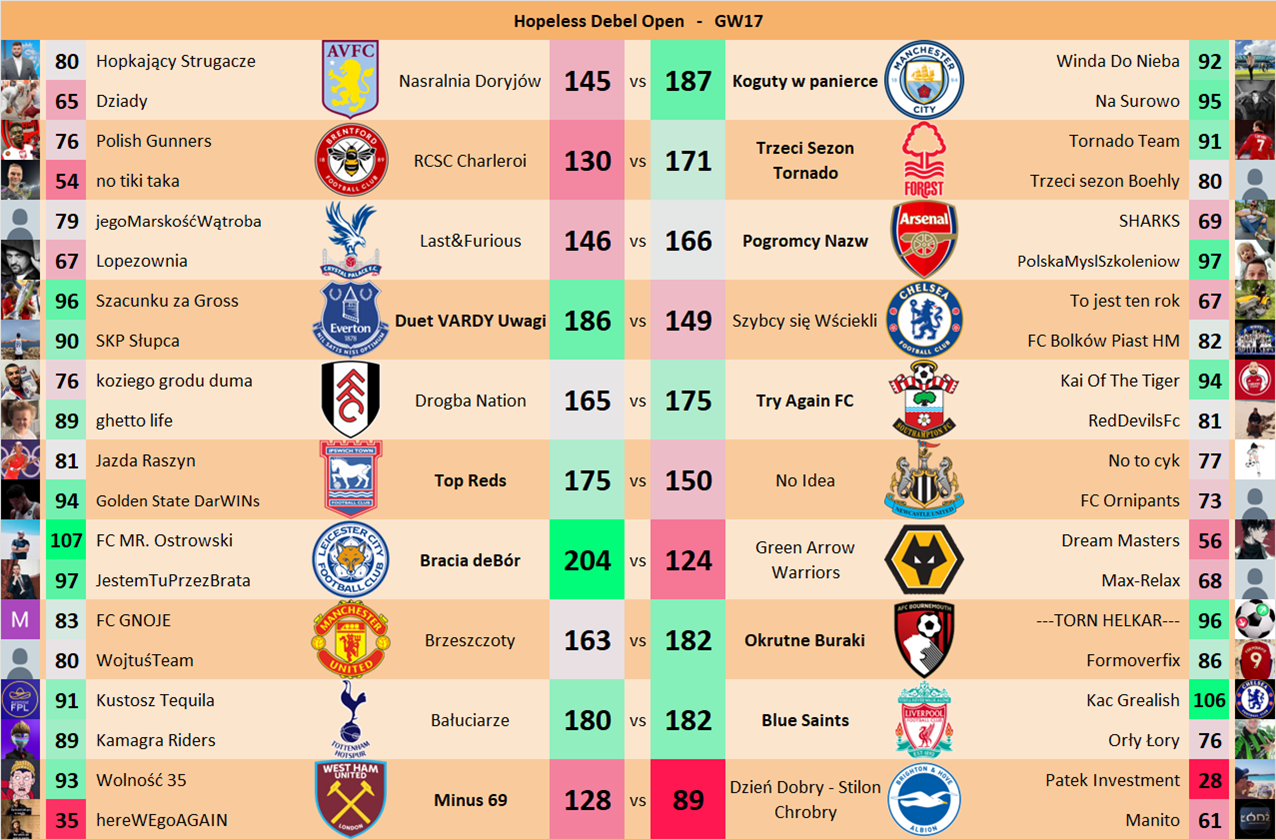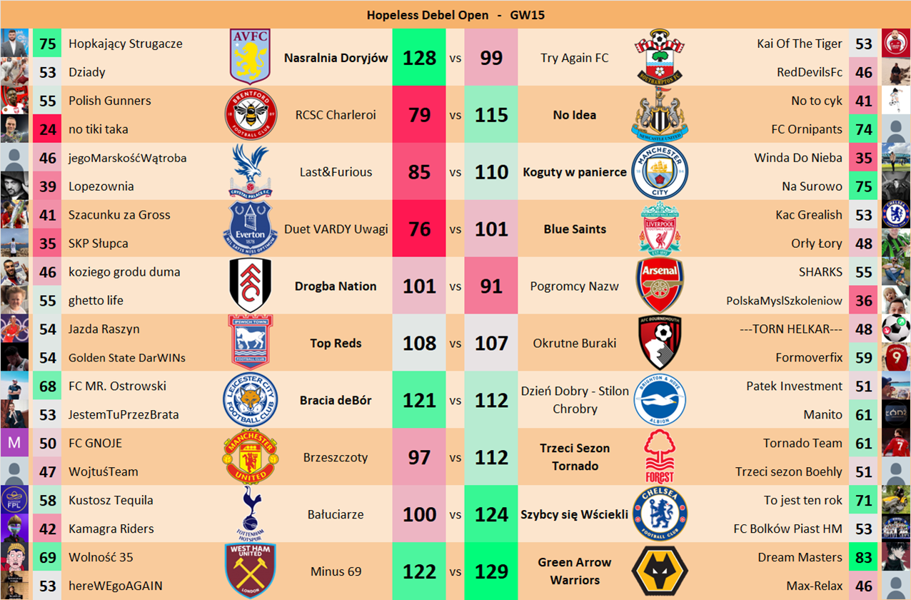 Punkty danej drużyny czyli 2 graczy będą się sumować w danym GW i to będzie wynik danego zespołu w kolejce.