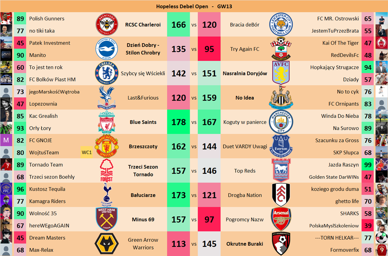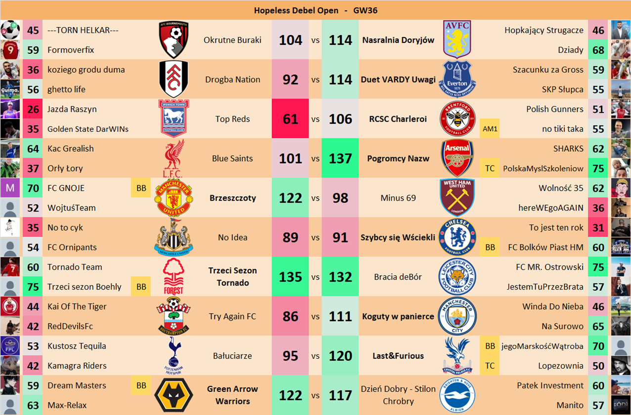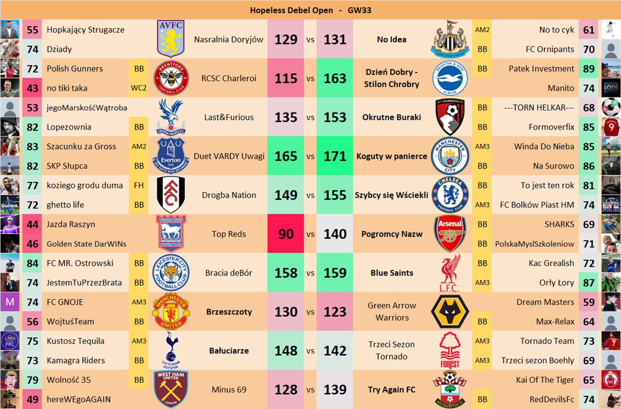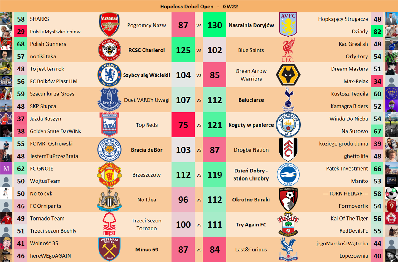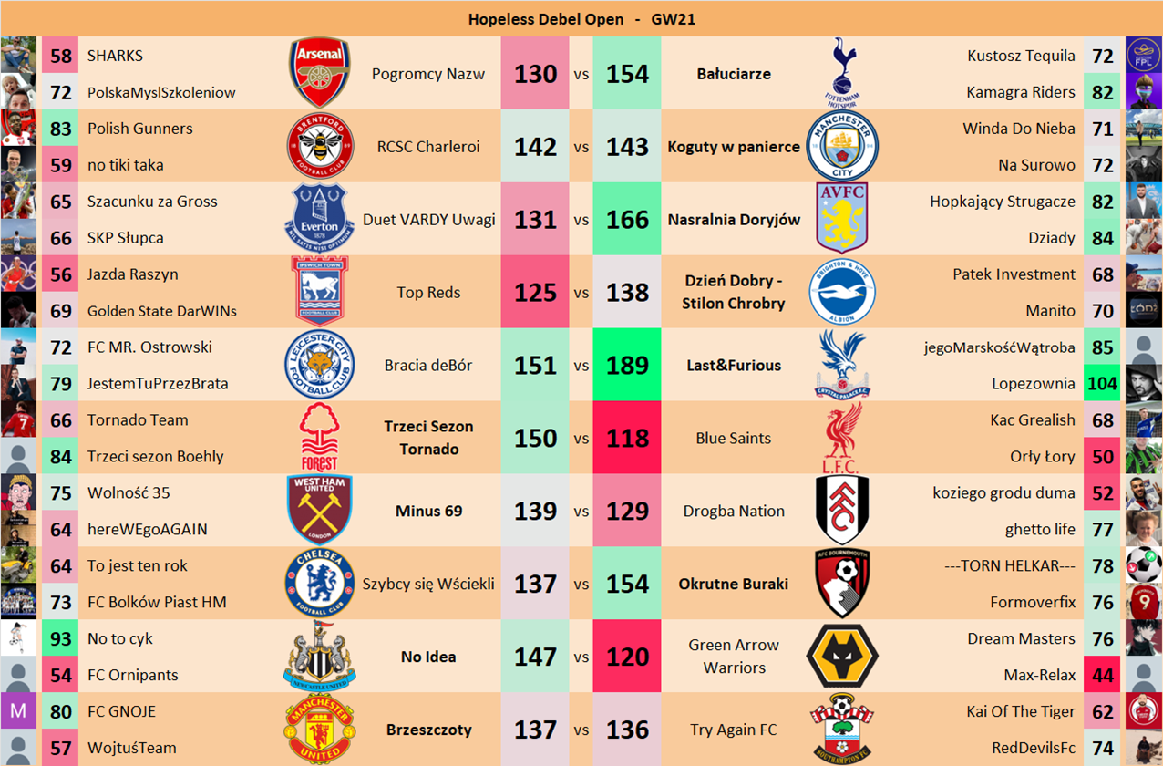 Punkty danej drużyny czyli 2 graczy będą się sumować w danym GW i to będzie wynik danego zespołu w kolejce.