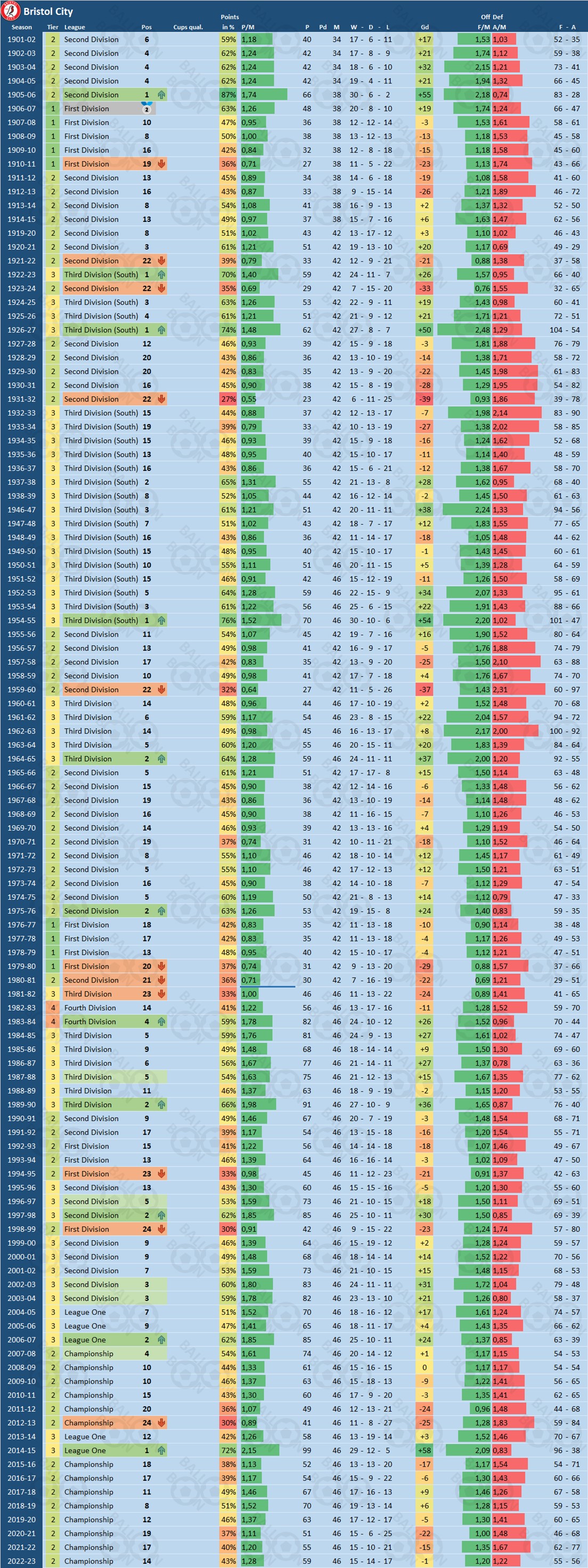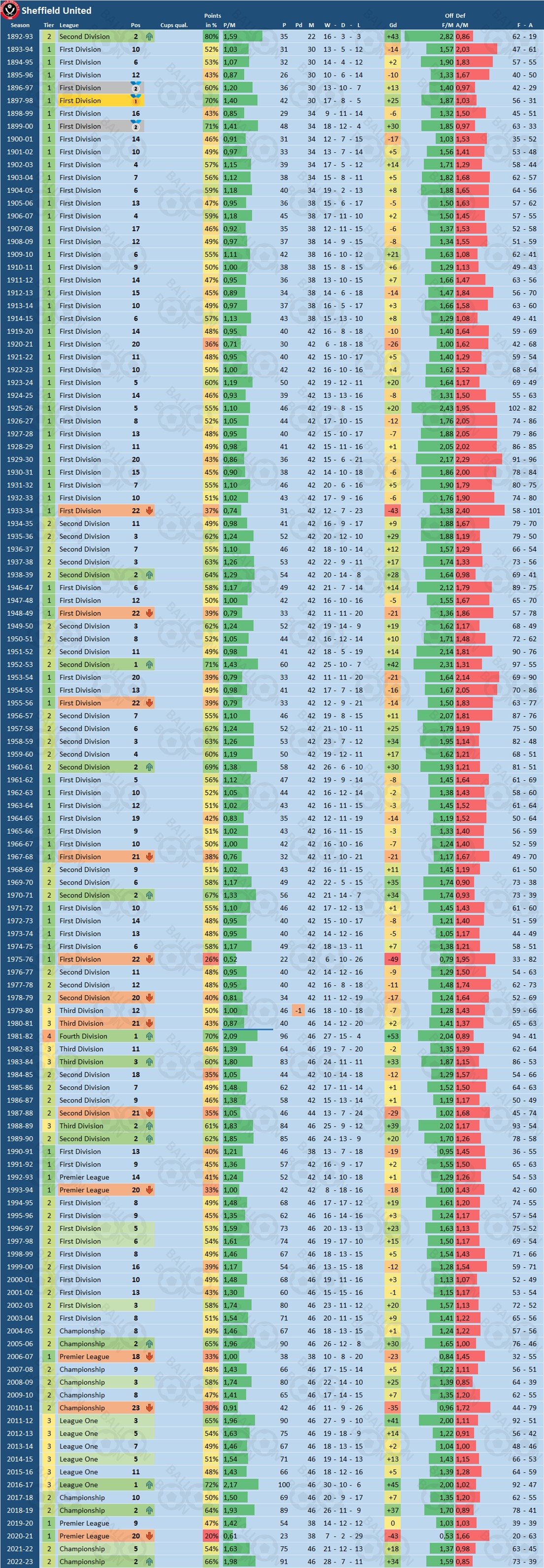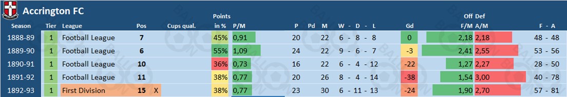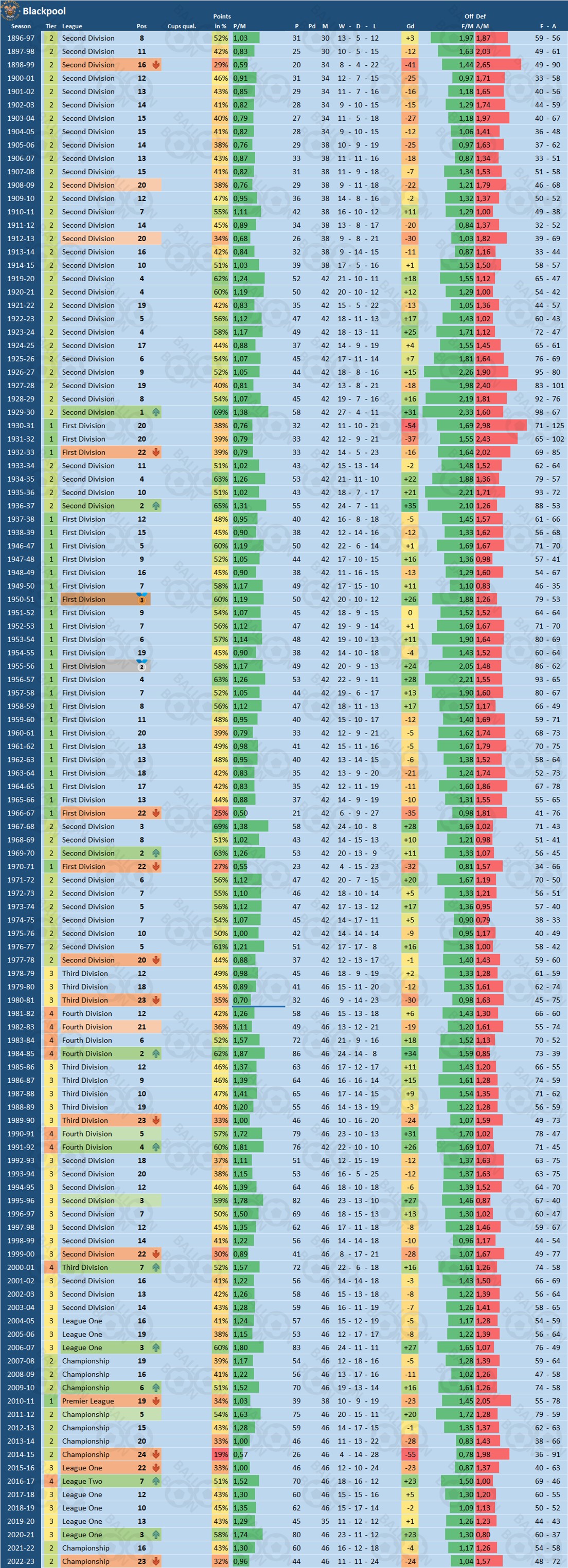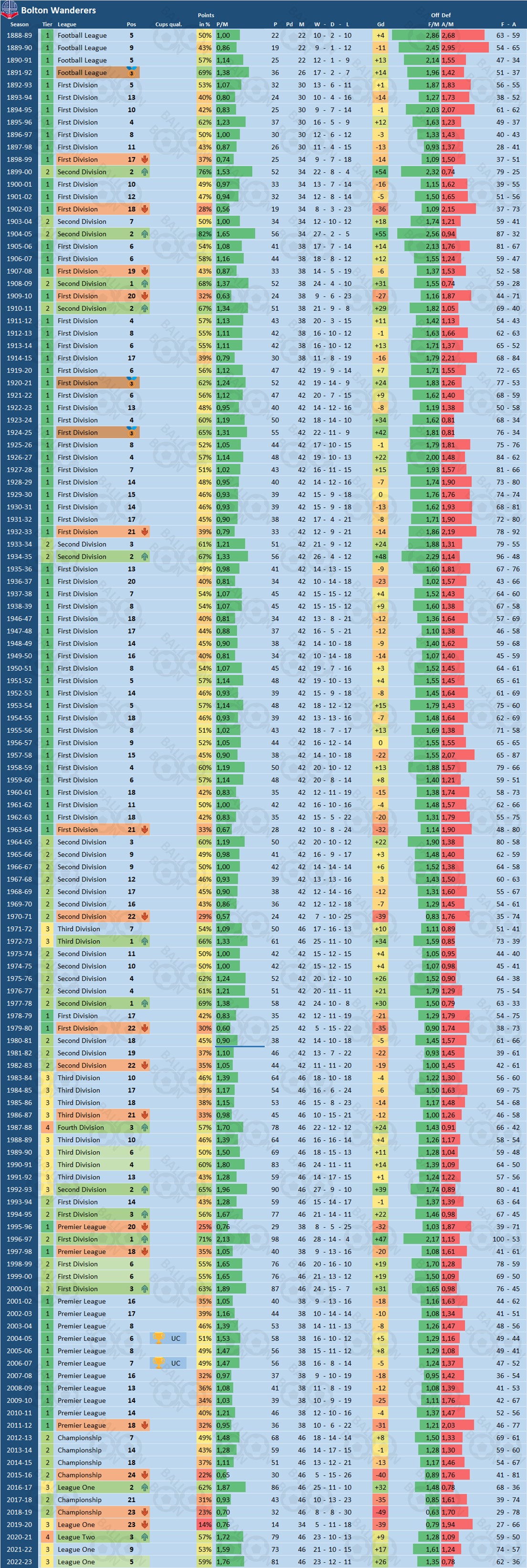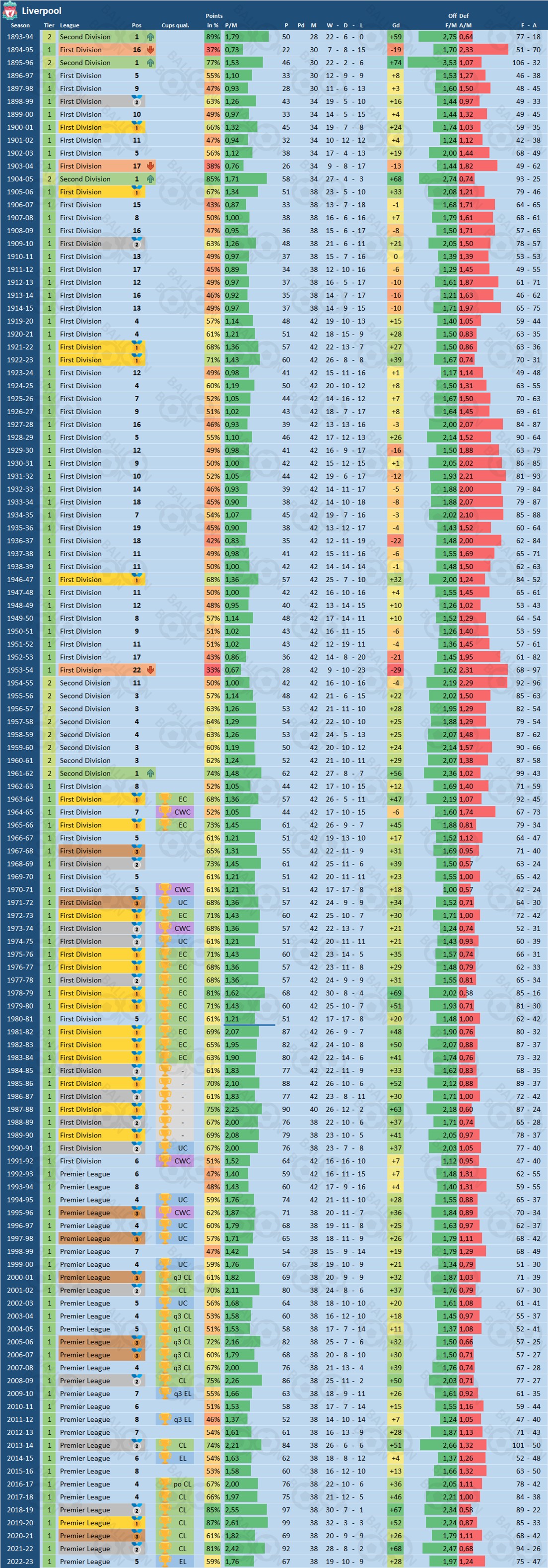 Poniższa lista przedstawia szczegółowo wszystkie sezony danego klubu w ligowym futbolu.