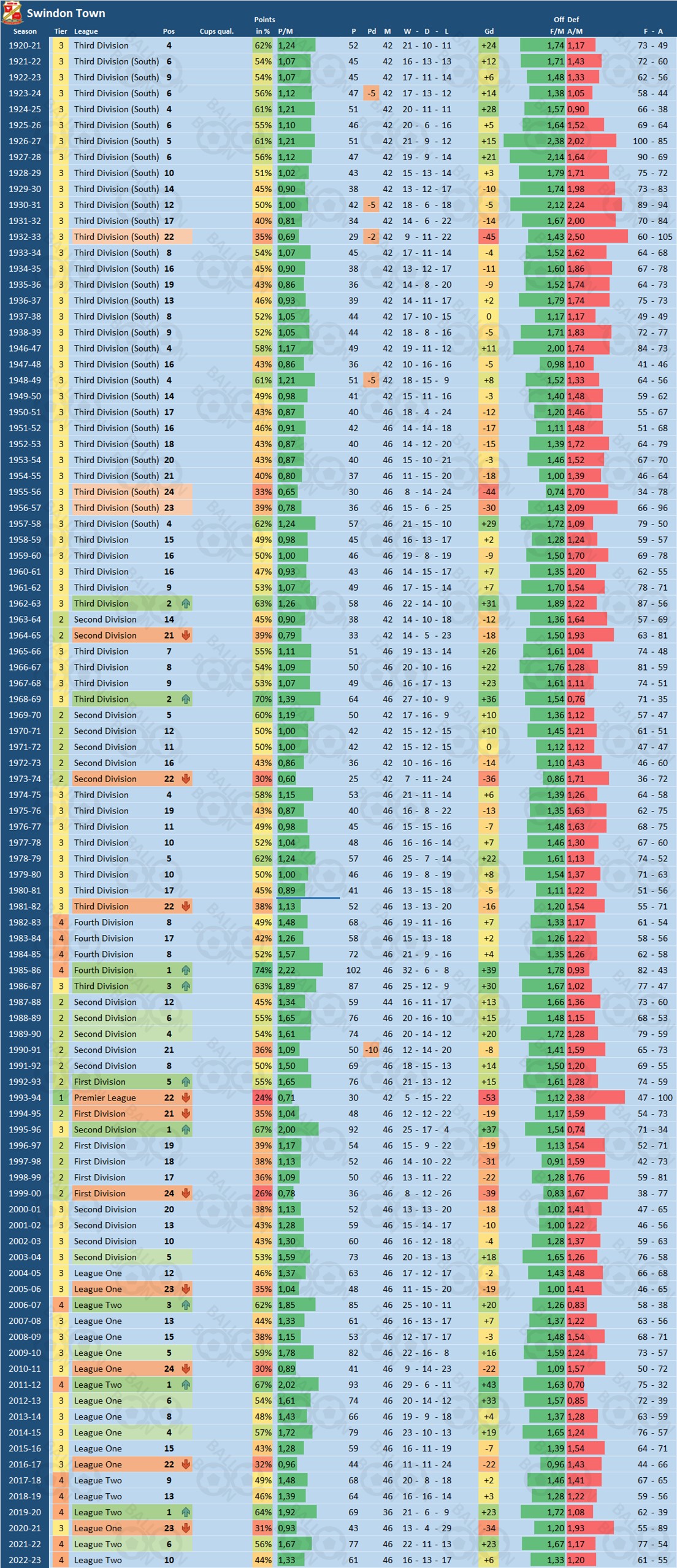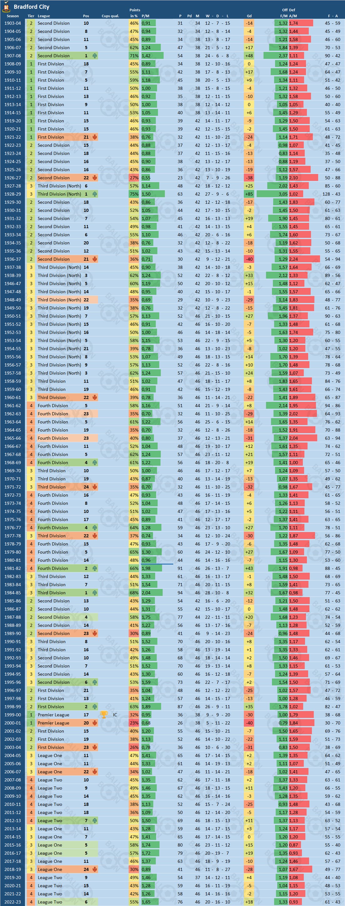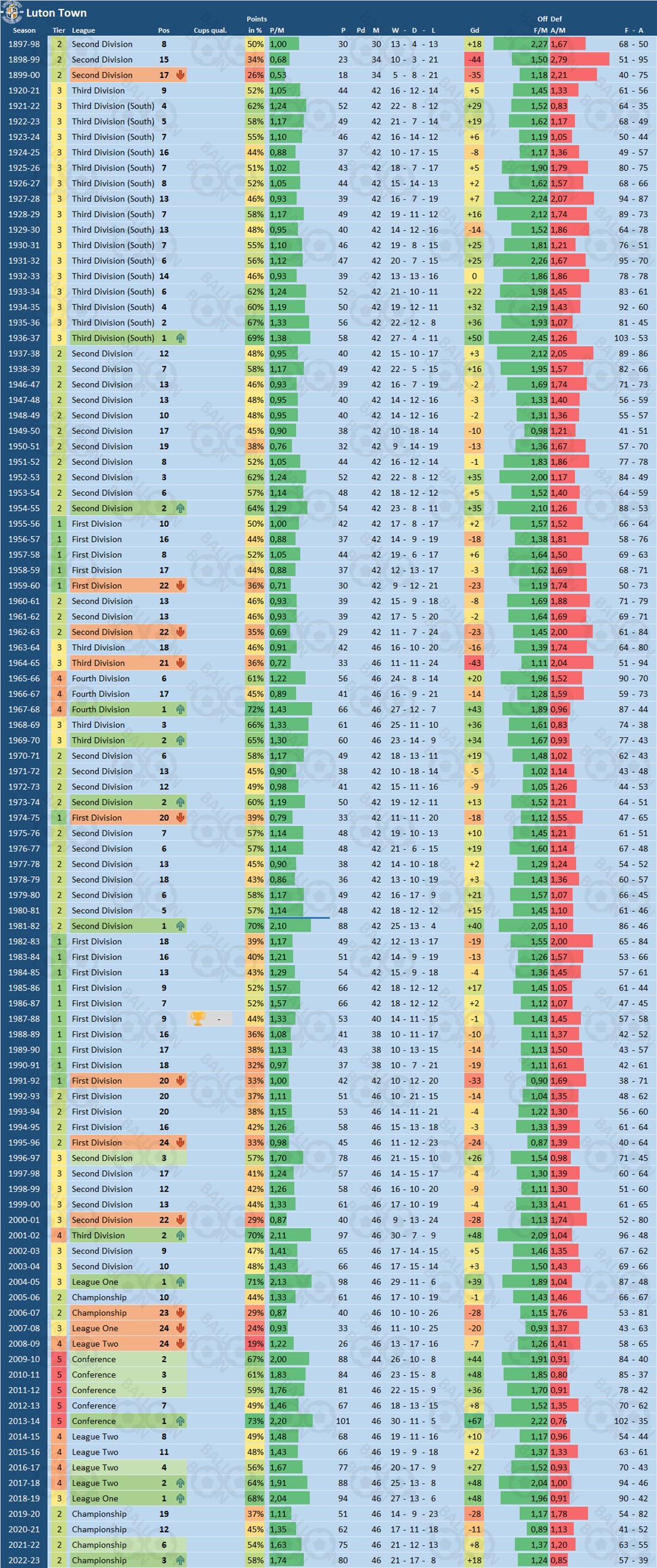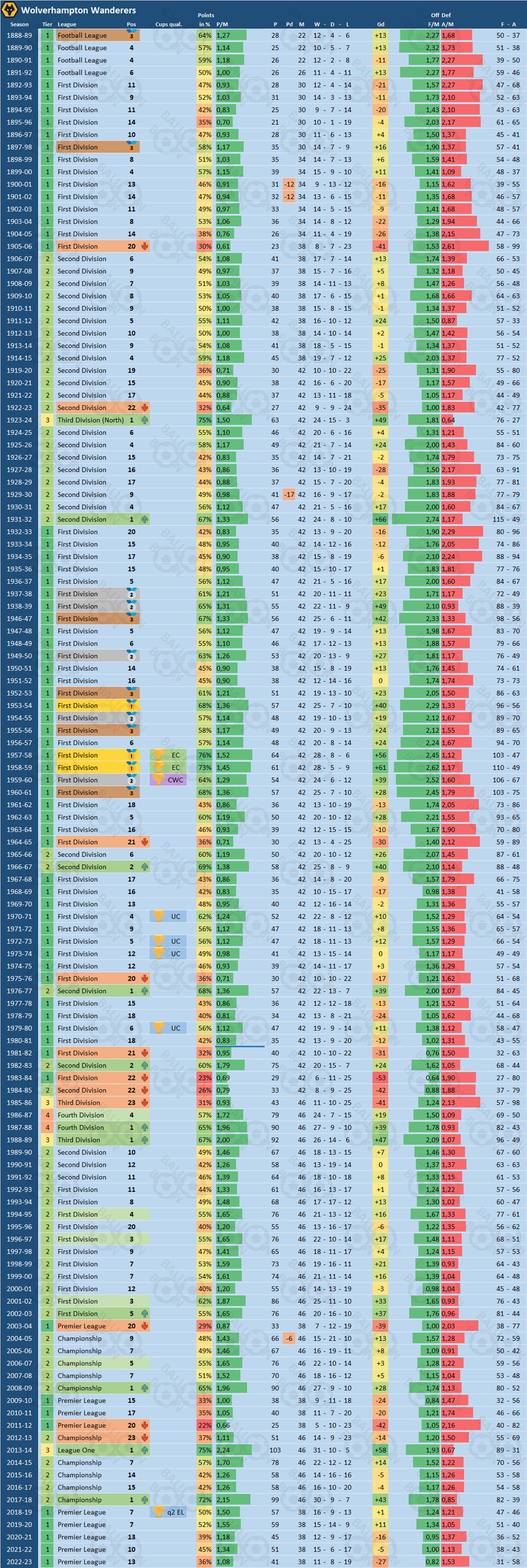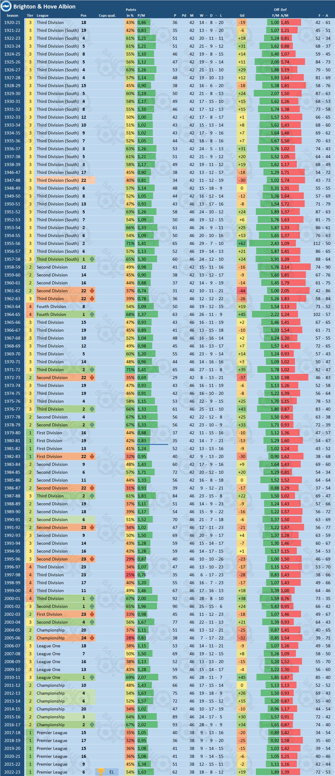 Poniższa lista przedstawia szczegółowo wszystkie sezony danego klubu w ligowym futbolu.