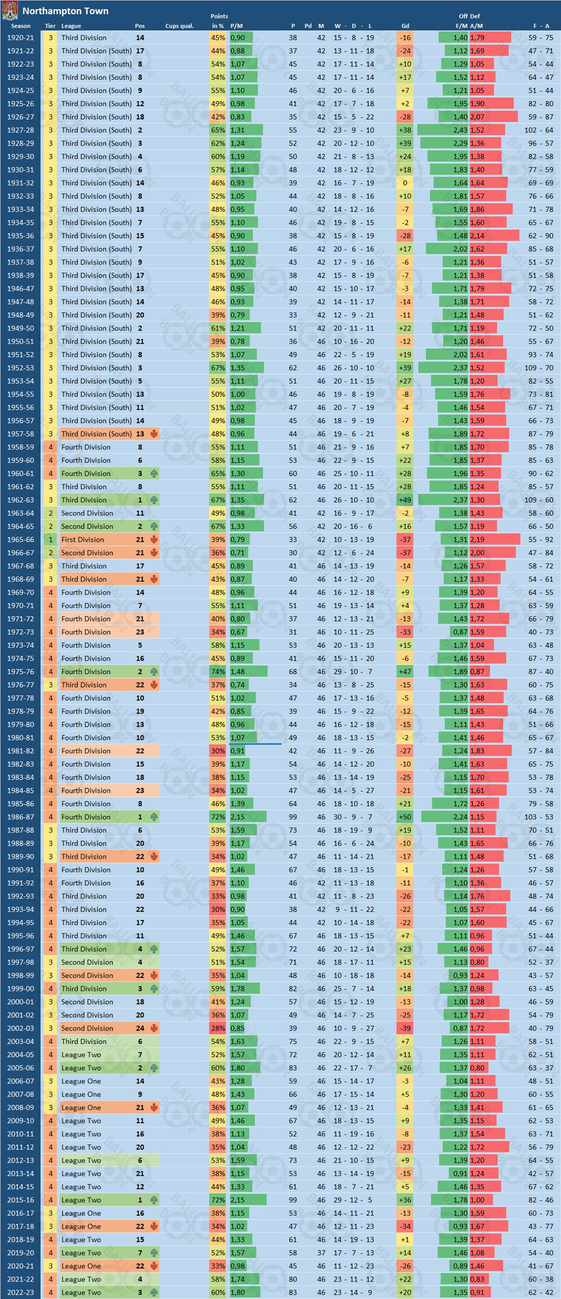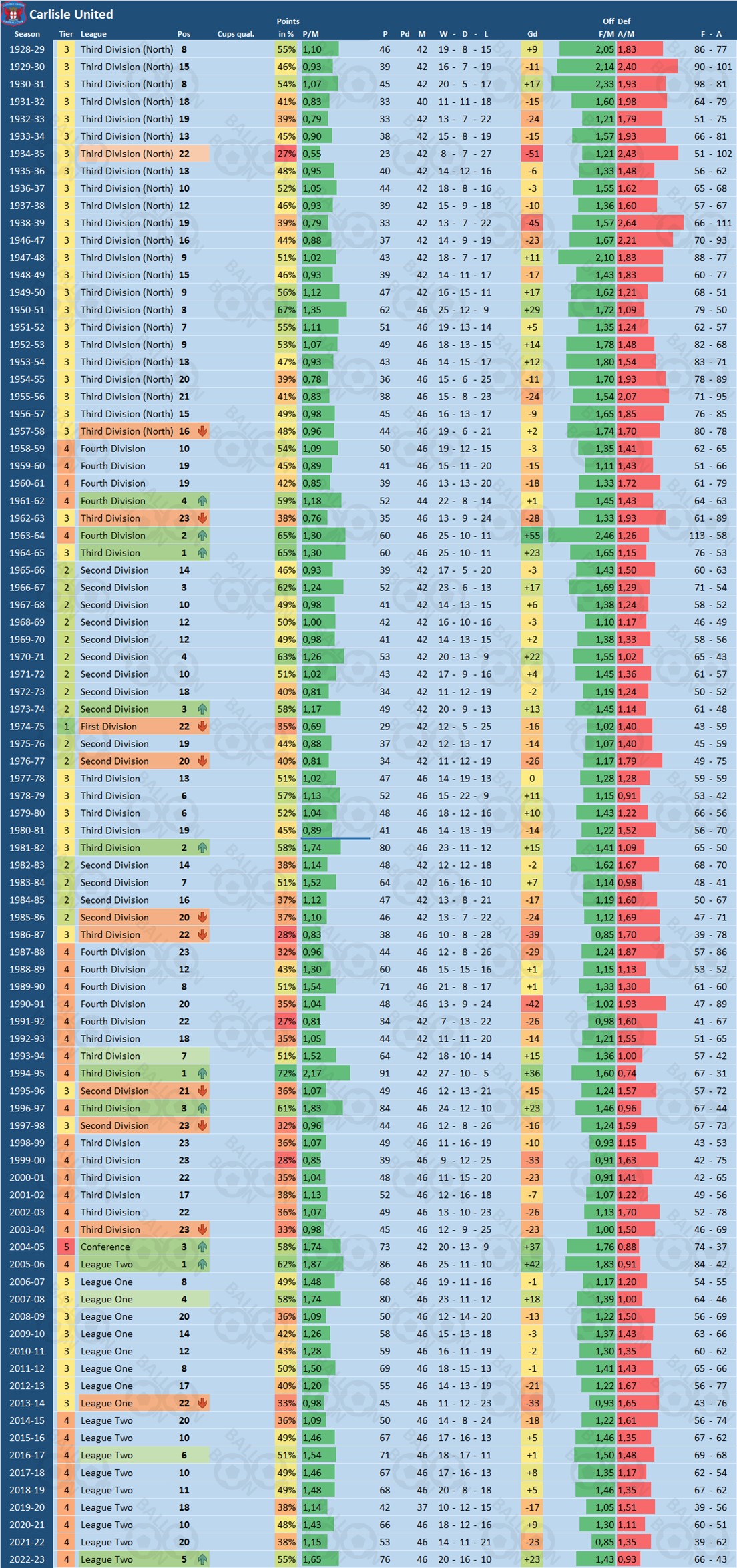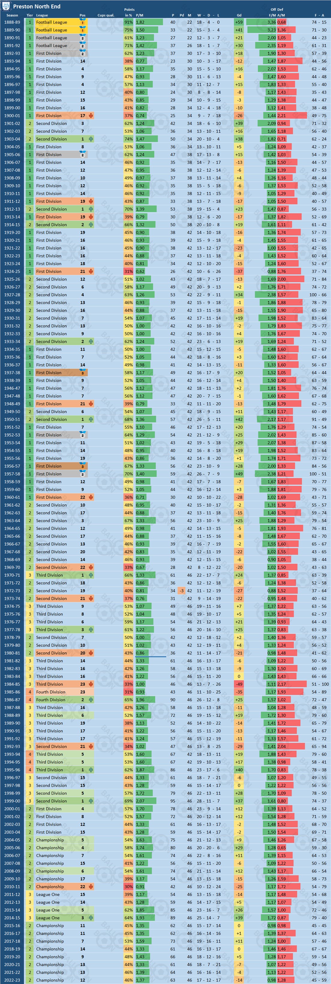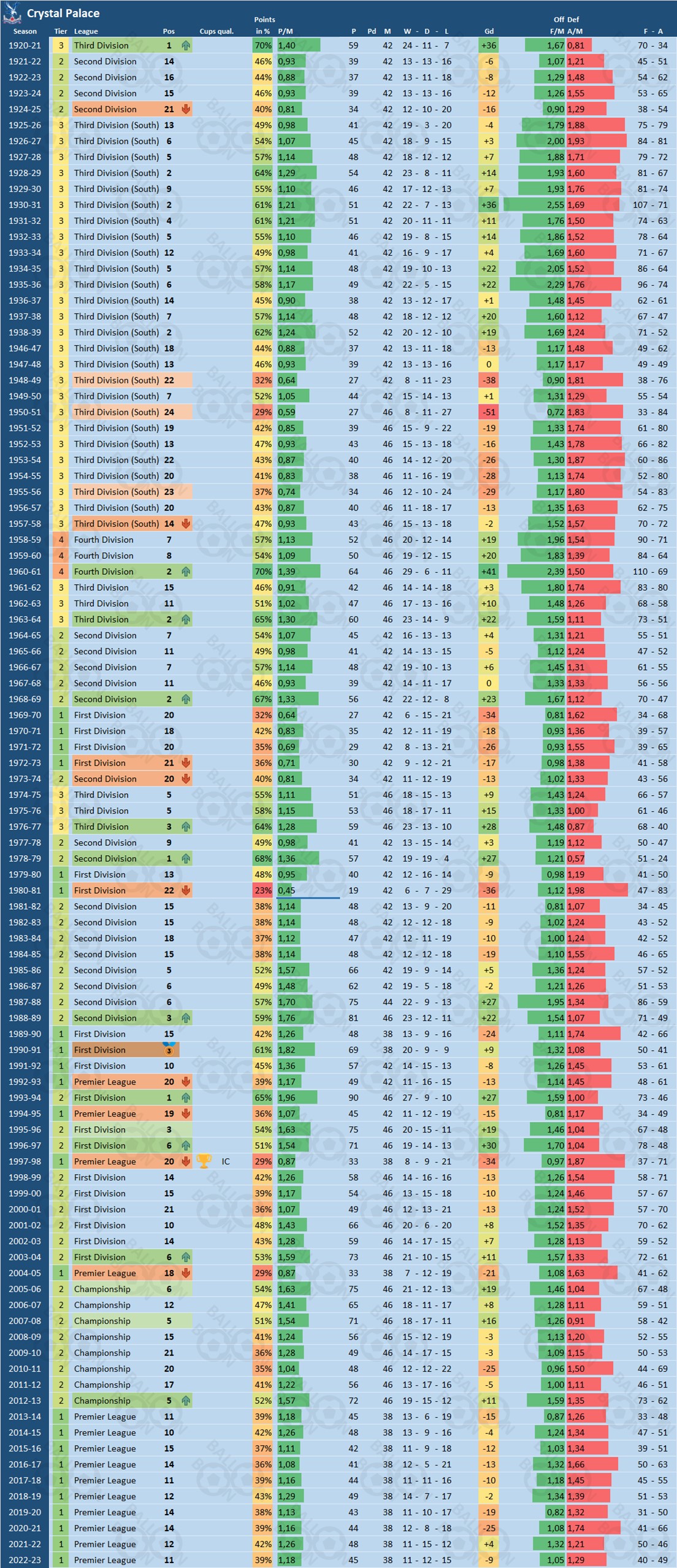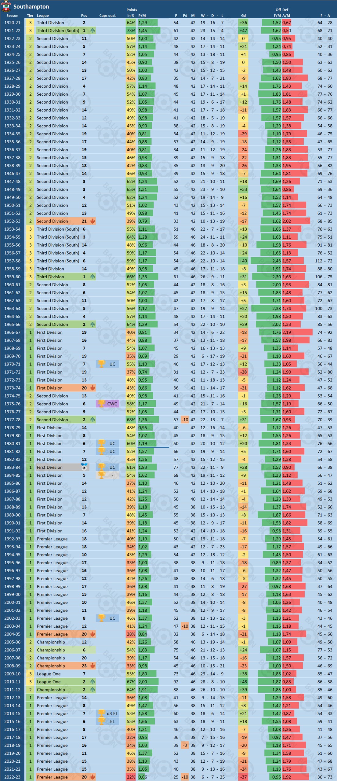 Poniższa lista przedstawia szczegółowo wszystkie sezony danego klubu w ligowym futbolu.