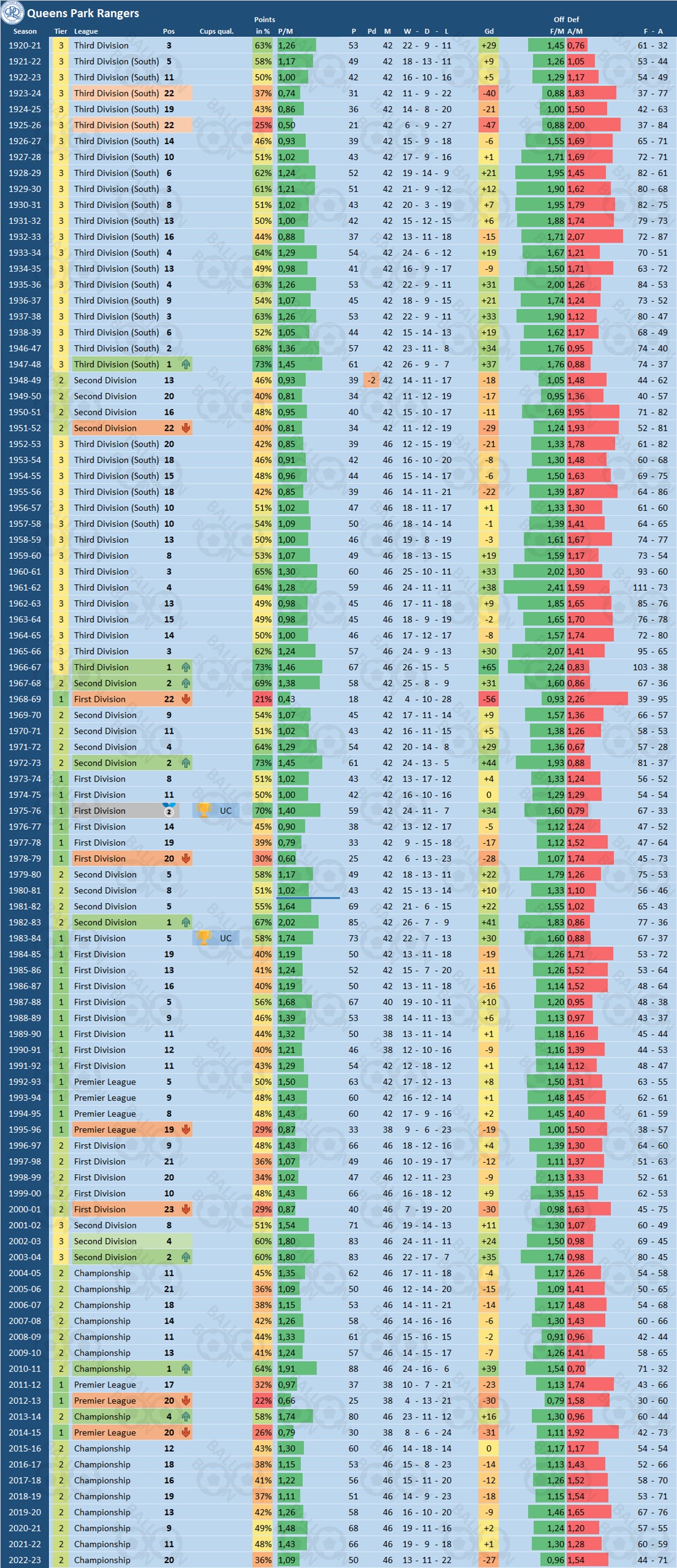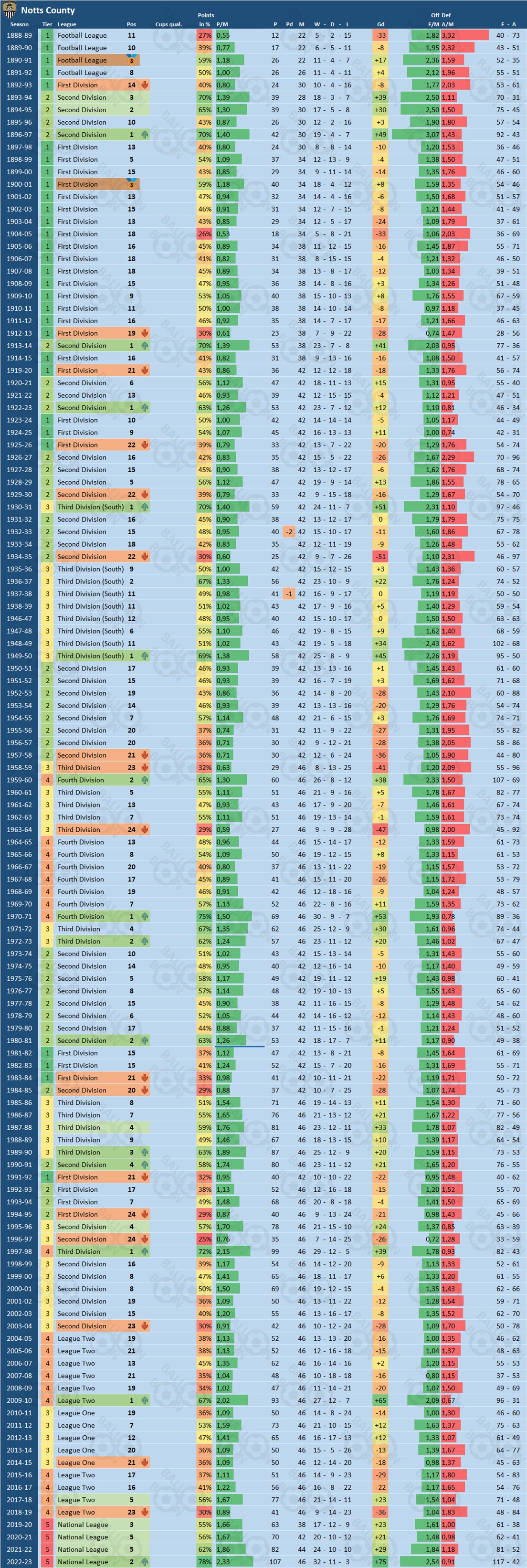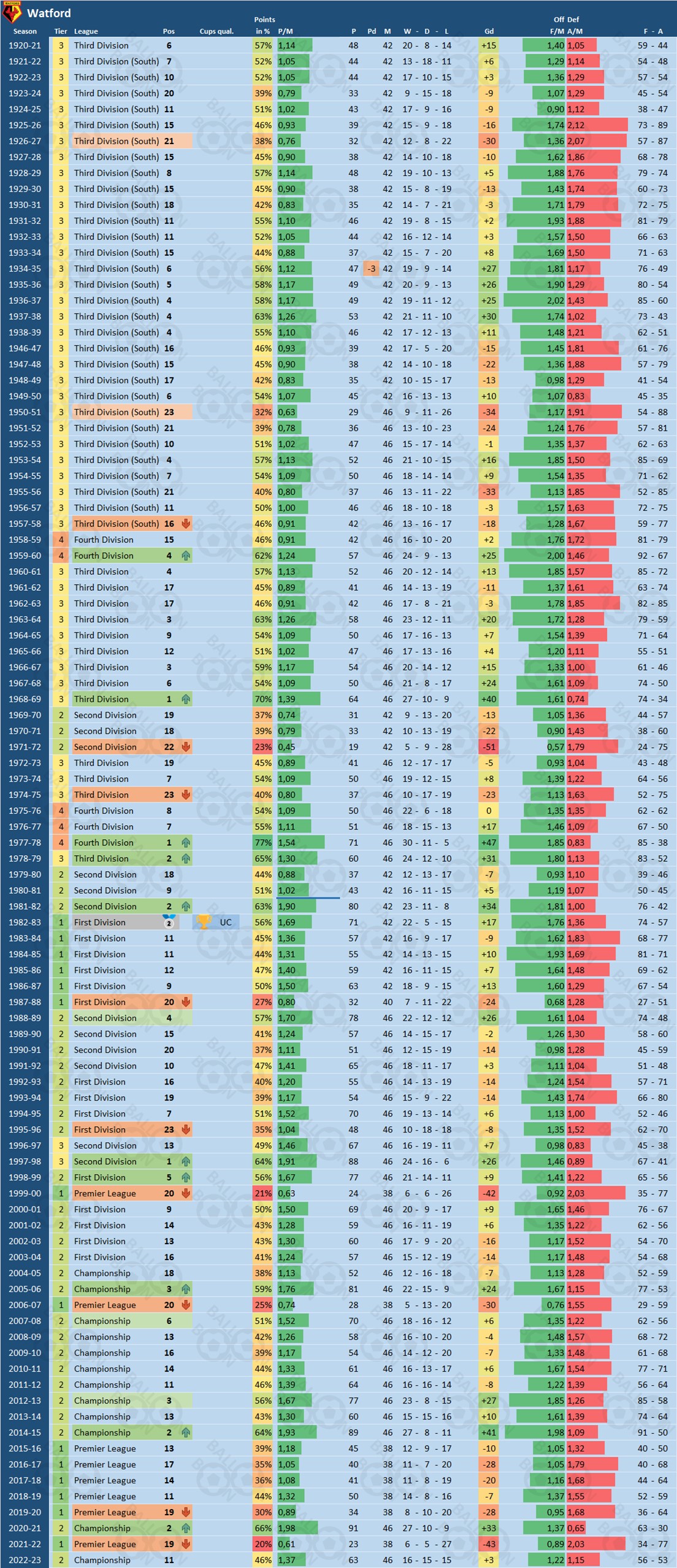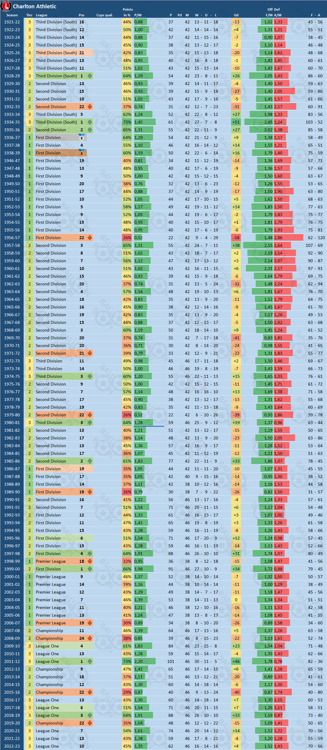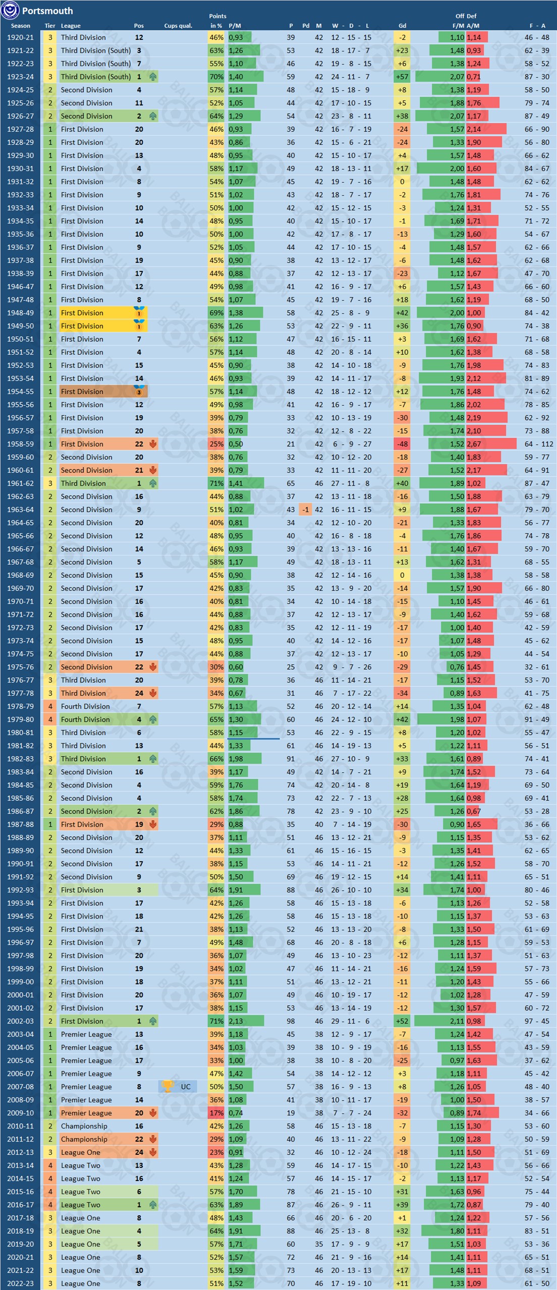 Poniższa lista przedstawia szczegółowo wszystkie sezony danego klubu w ligowym futbolu.