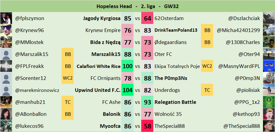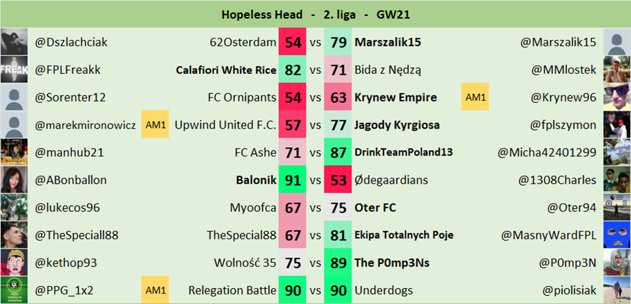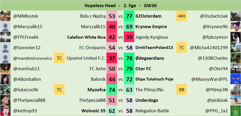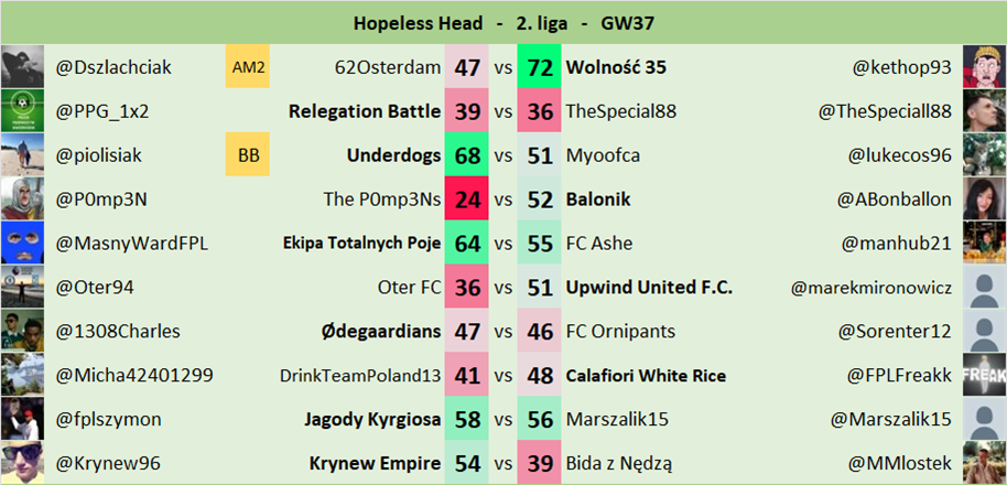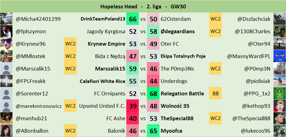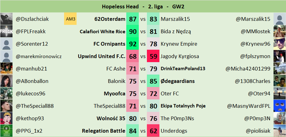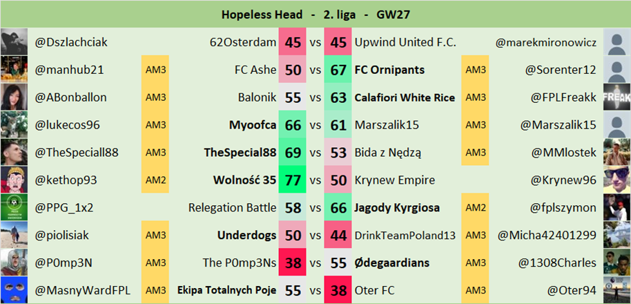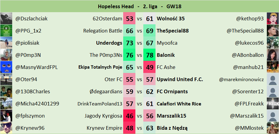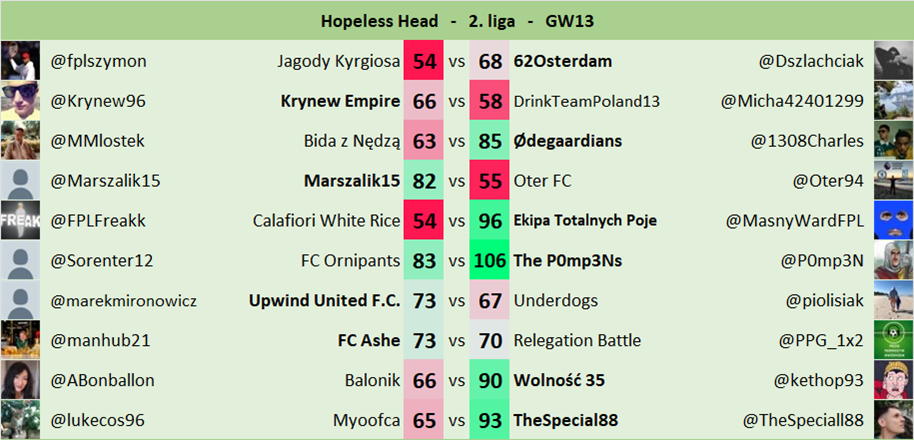 Oryginalne zasady jak w FPL Head-to-Head.