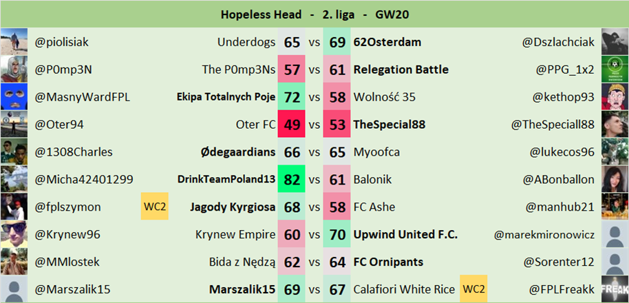 Head - Tabela h2h 2. ligi