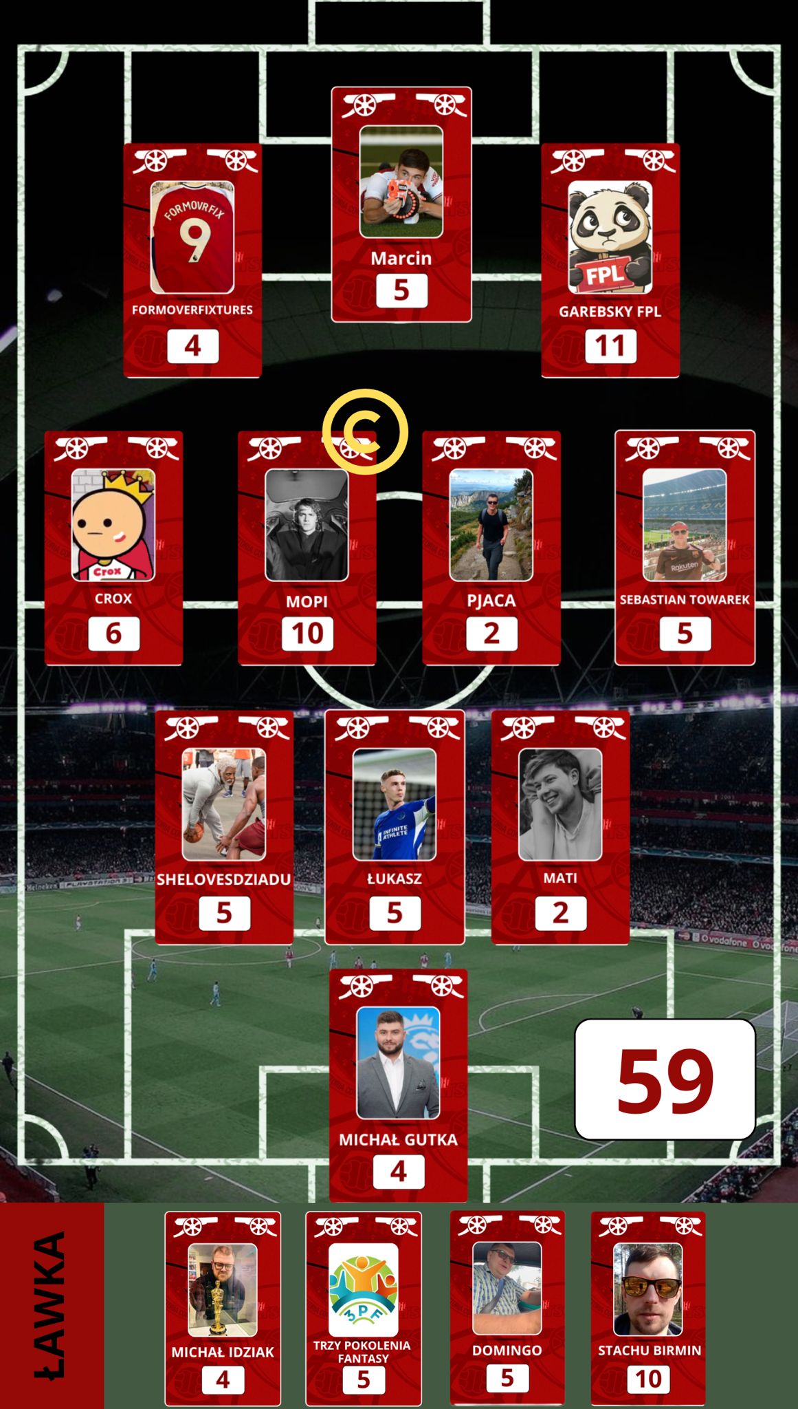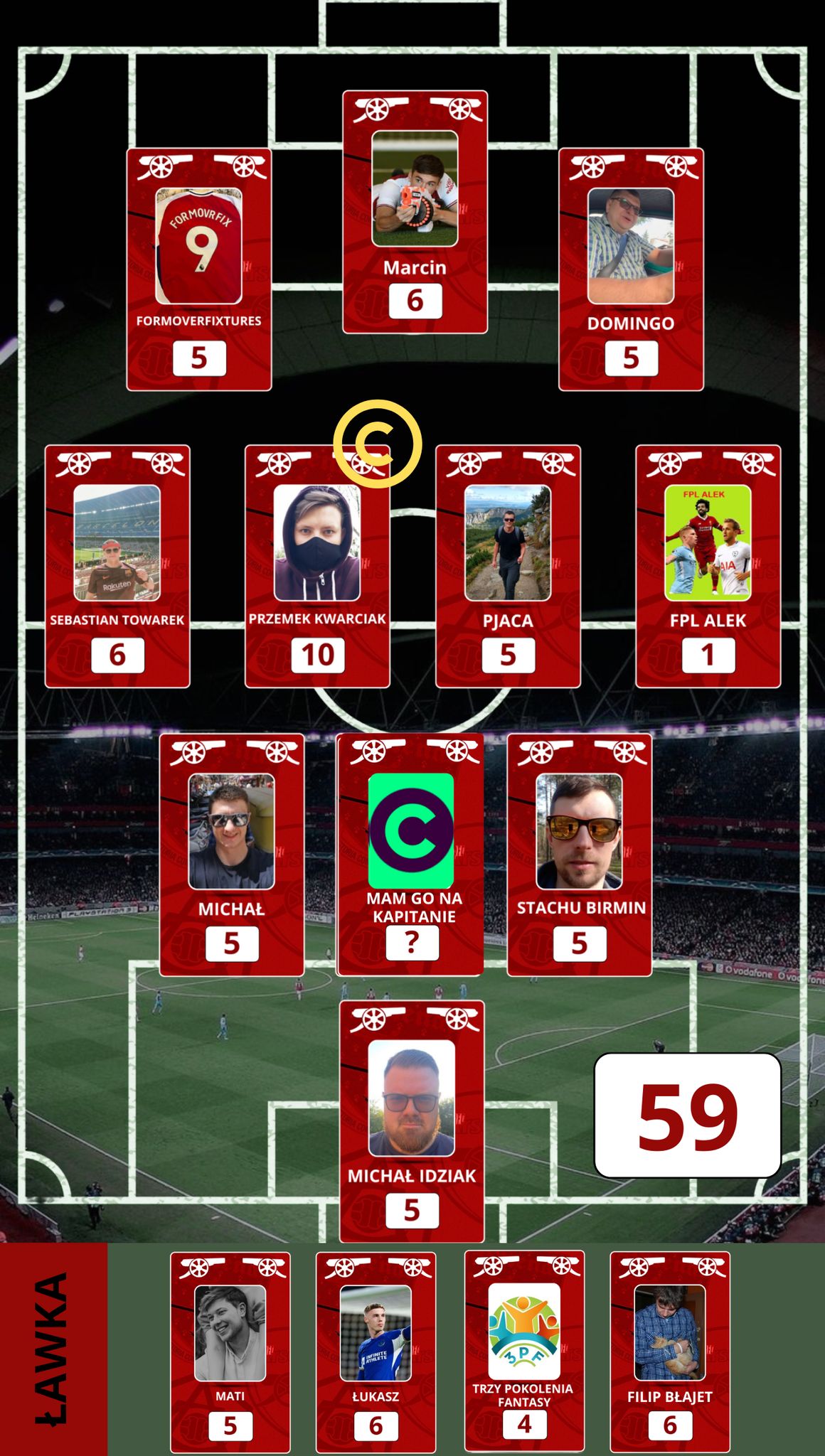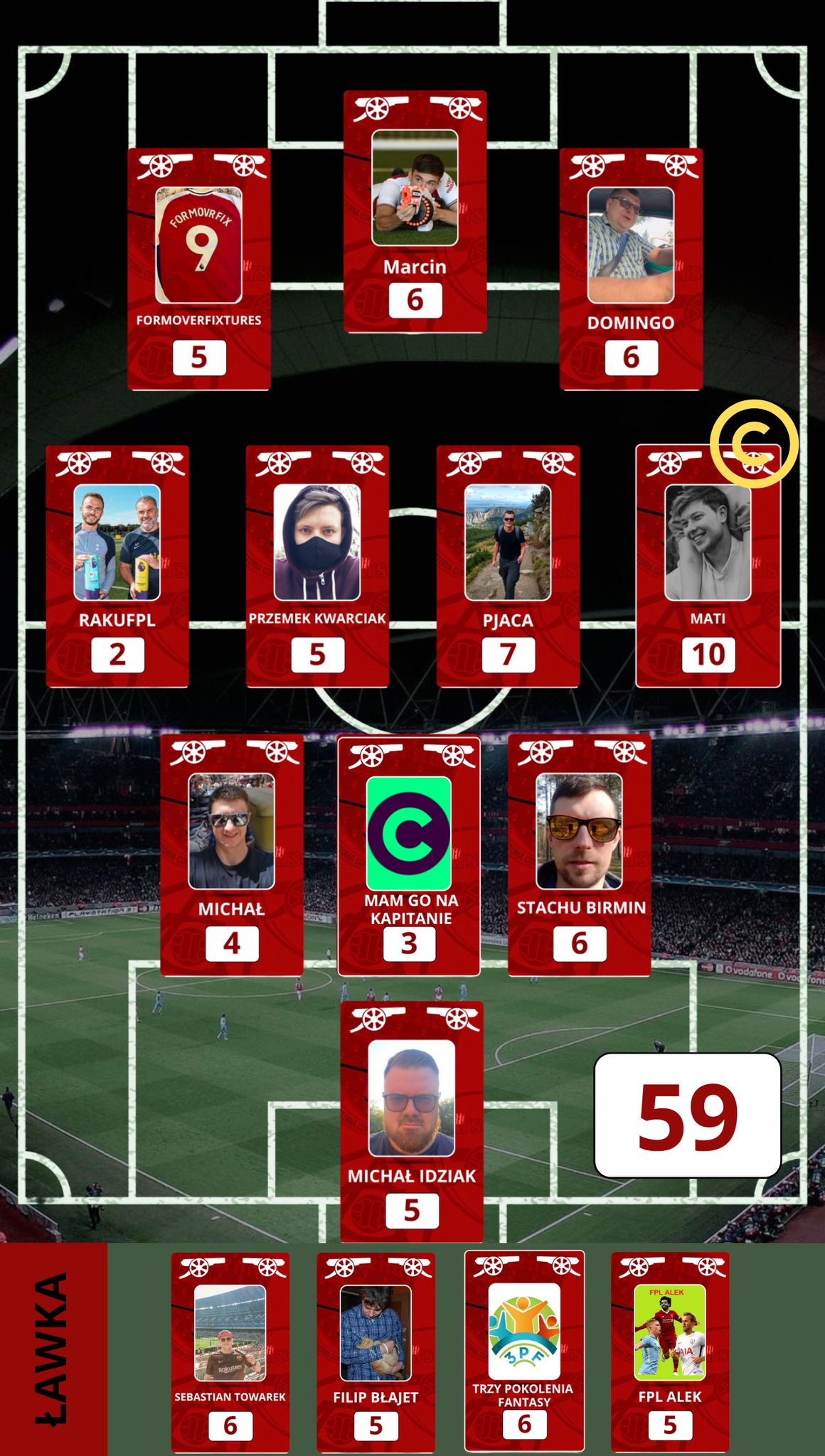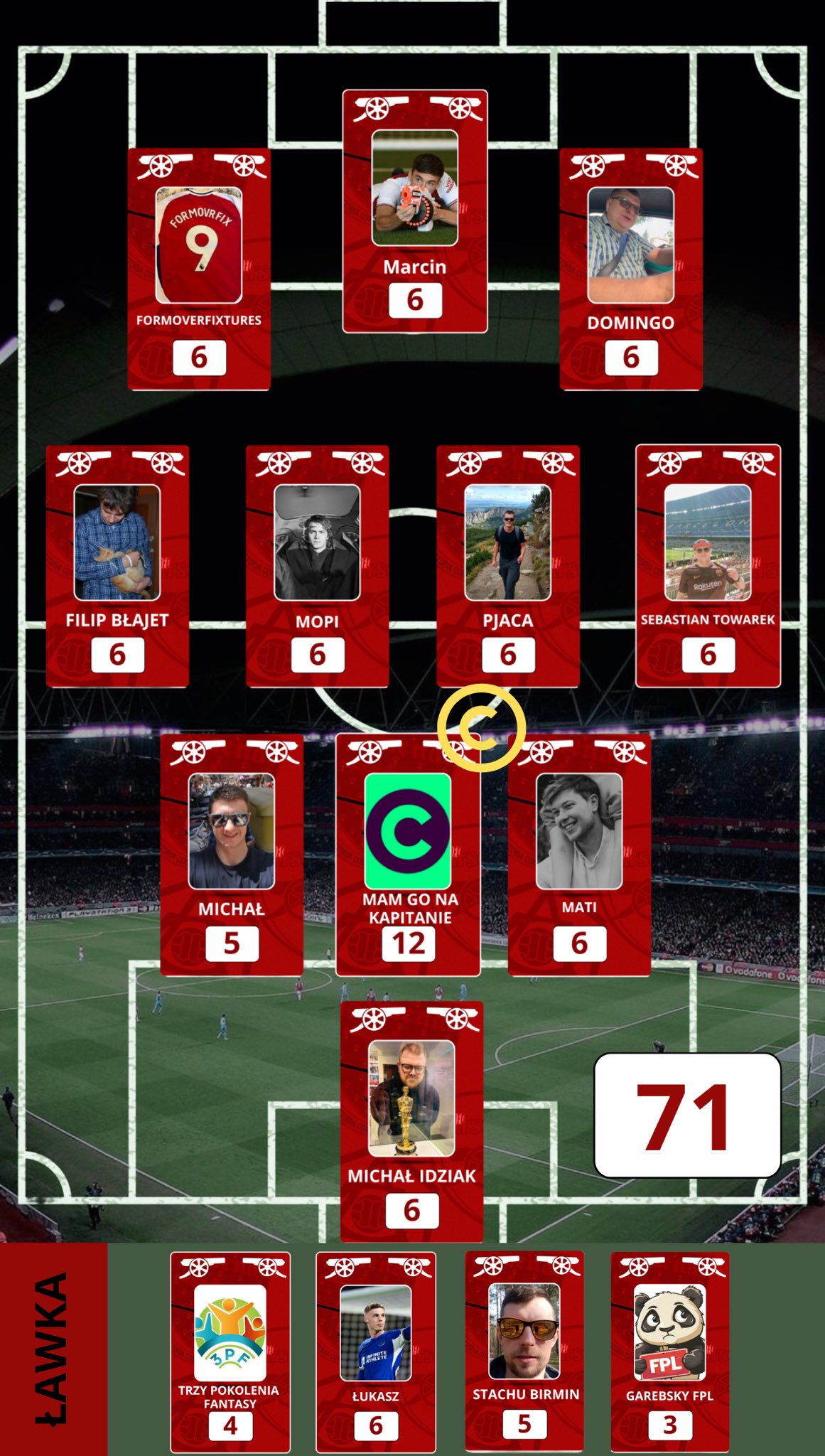 - Punktacja jak w FPL dzielona przez 10, np. przy 75 do punktacji zalicza się 8 pkt, 74 pkt równa się 7 pkt,