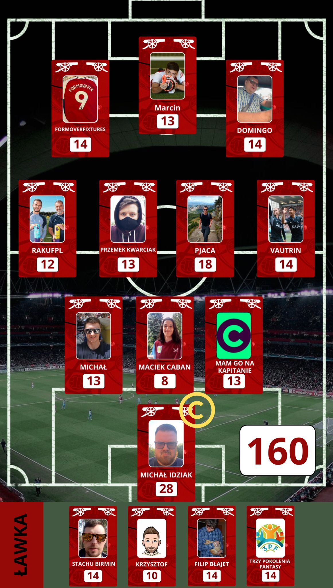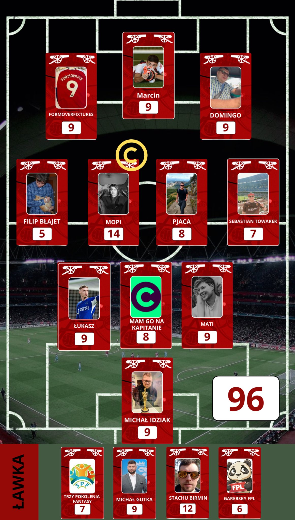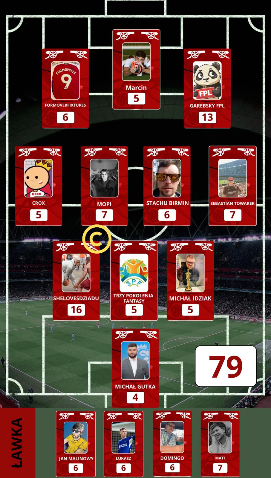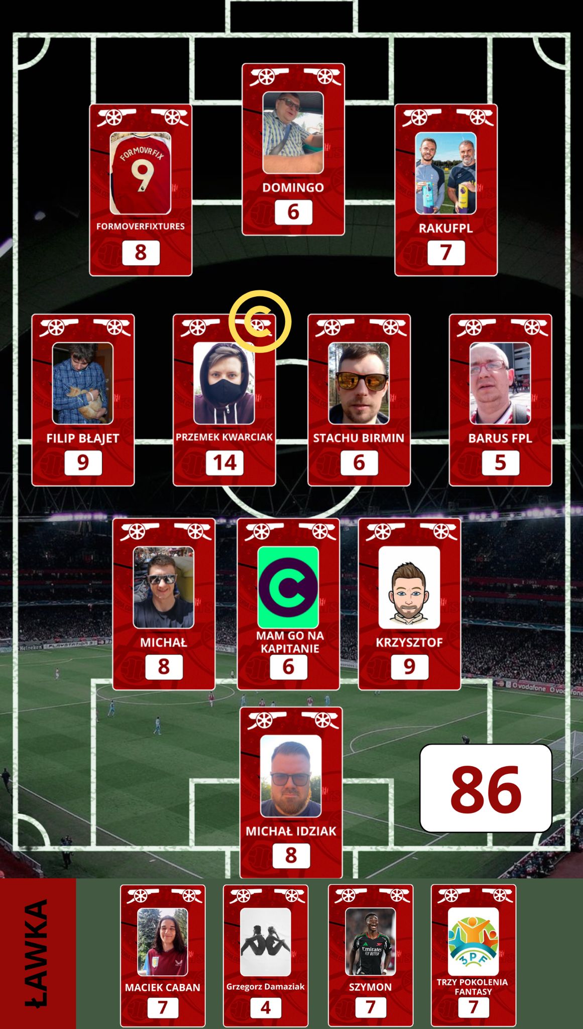 - Punktacja jak w FPL dzielona przez 10, np. przy 75 do punktacji zalicza się 8 pkt, 74 pkt równa się 7 pkt,