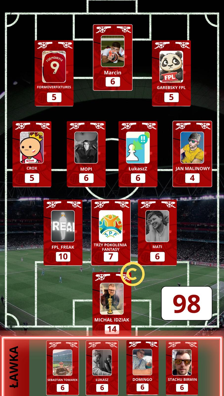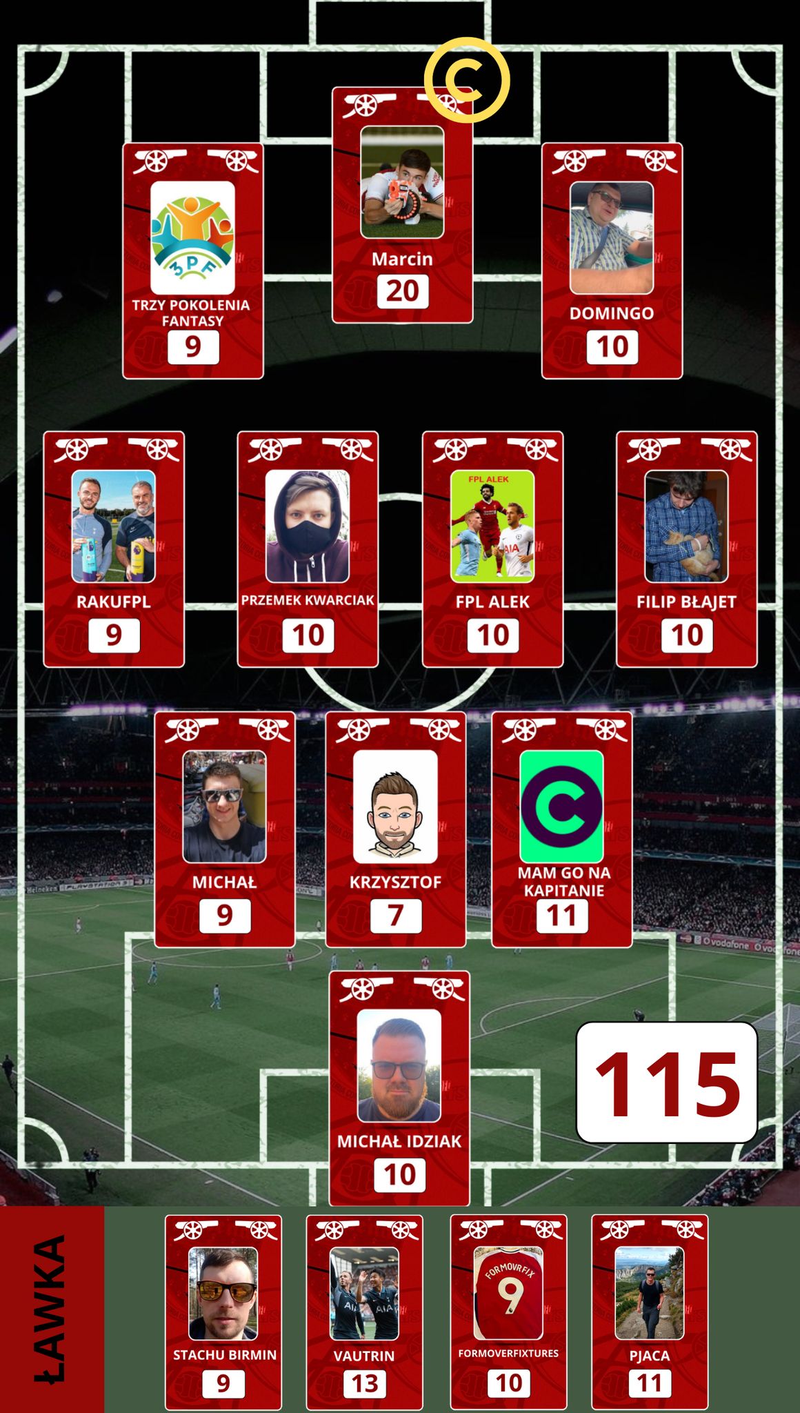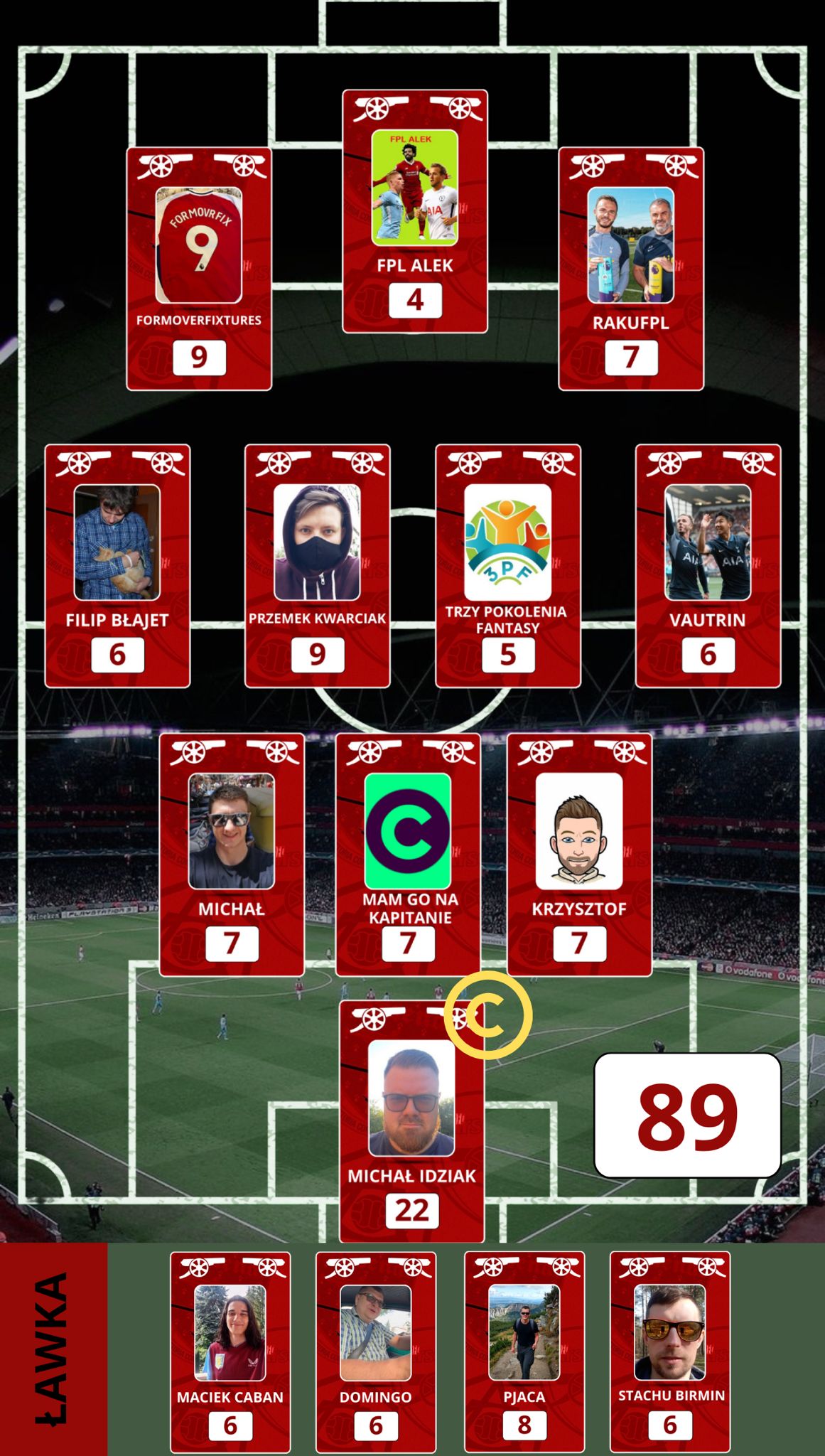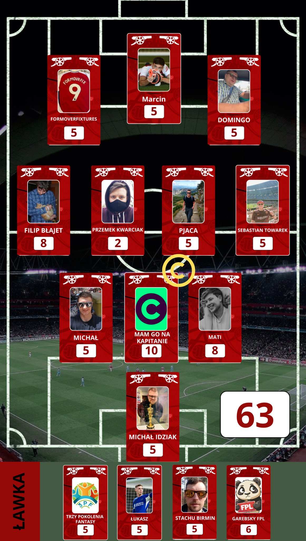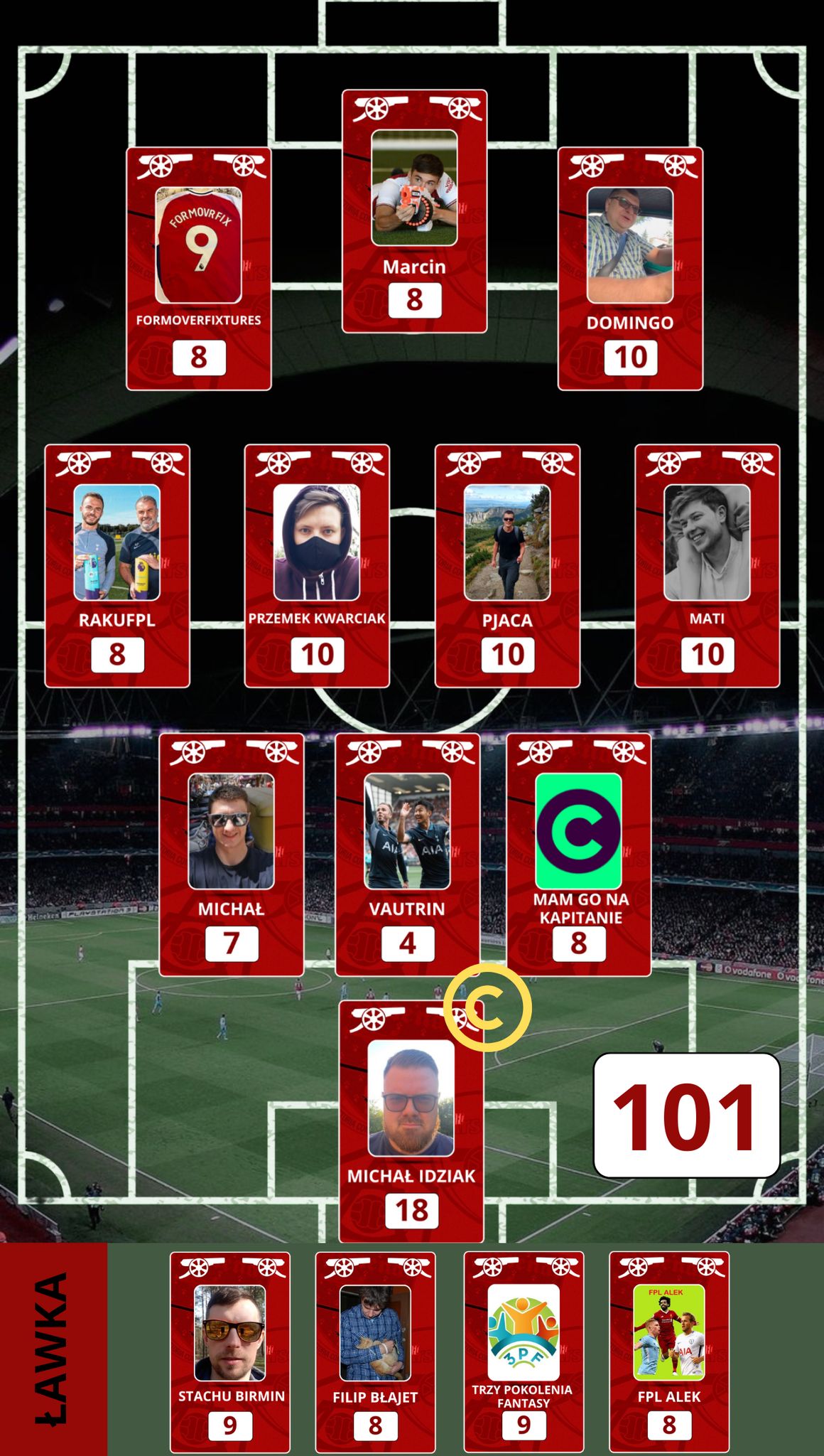 - Punktacja jak w FPL dzielona przez 10, np. przy 75 do punktacji zalicza się 8 pkt, 74 pkt równa się 7 pkt,