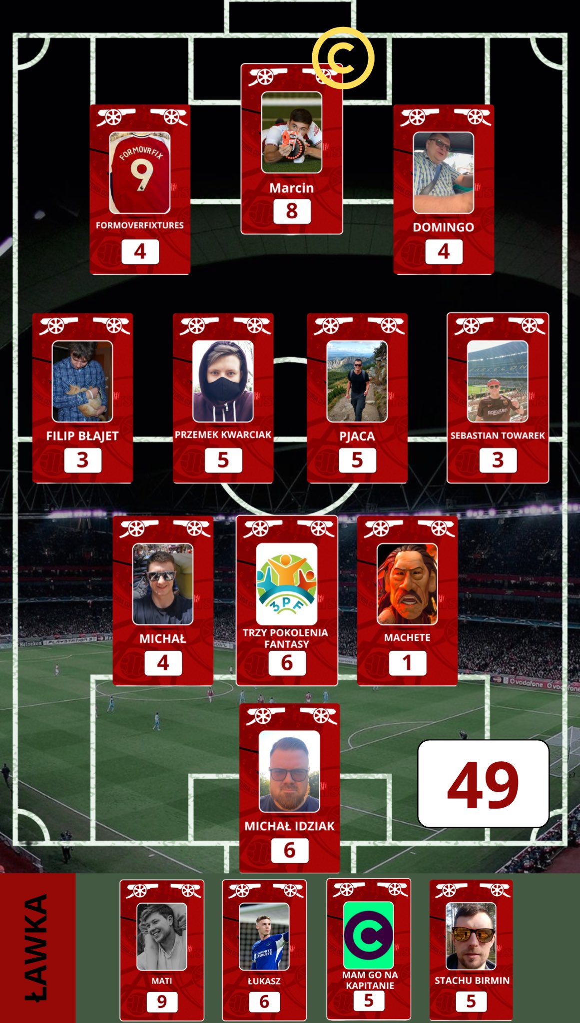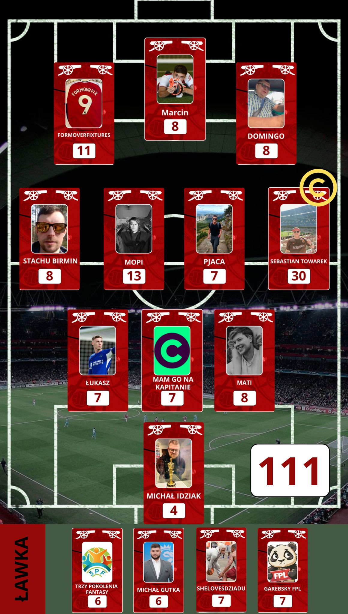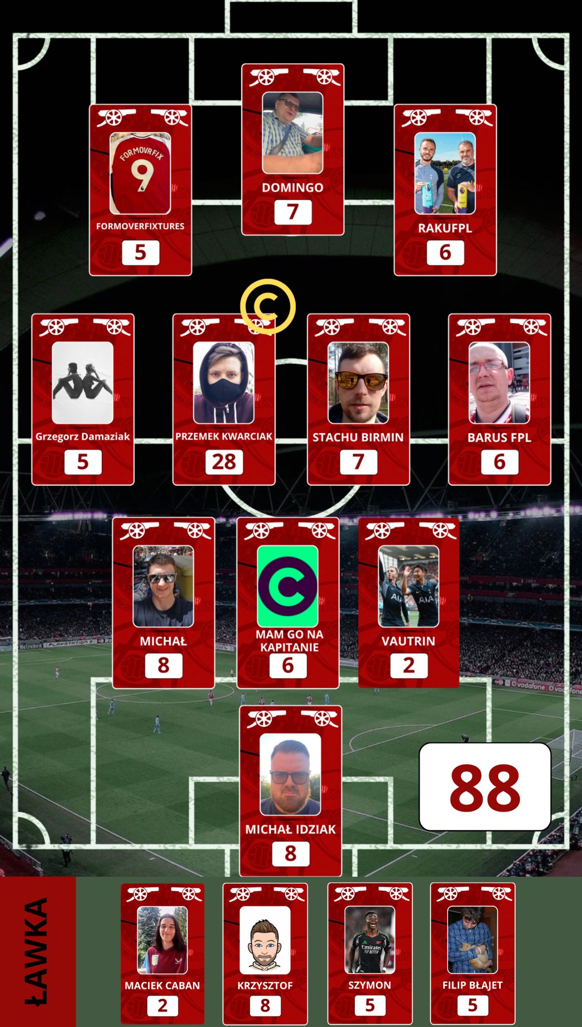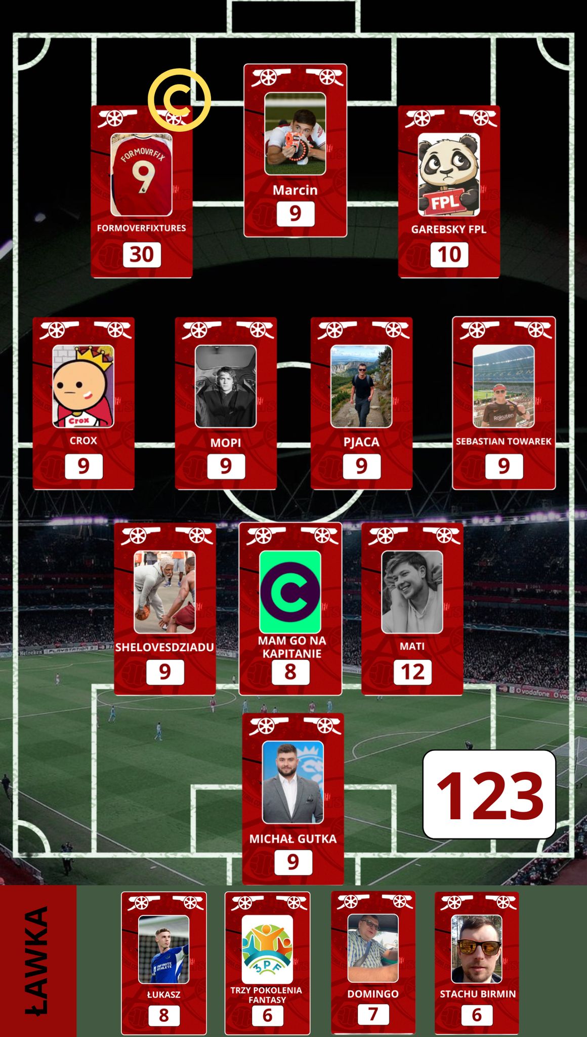 - Punktacja jak w FPL dzielona przez 10, np. przy 75 do punktacji zalicza się 8 pkt, 74 pkt równa się 7 pkt,