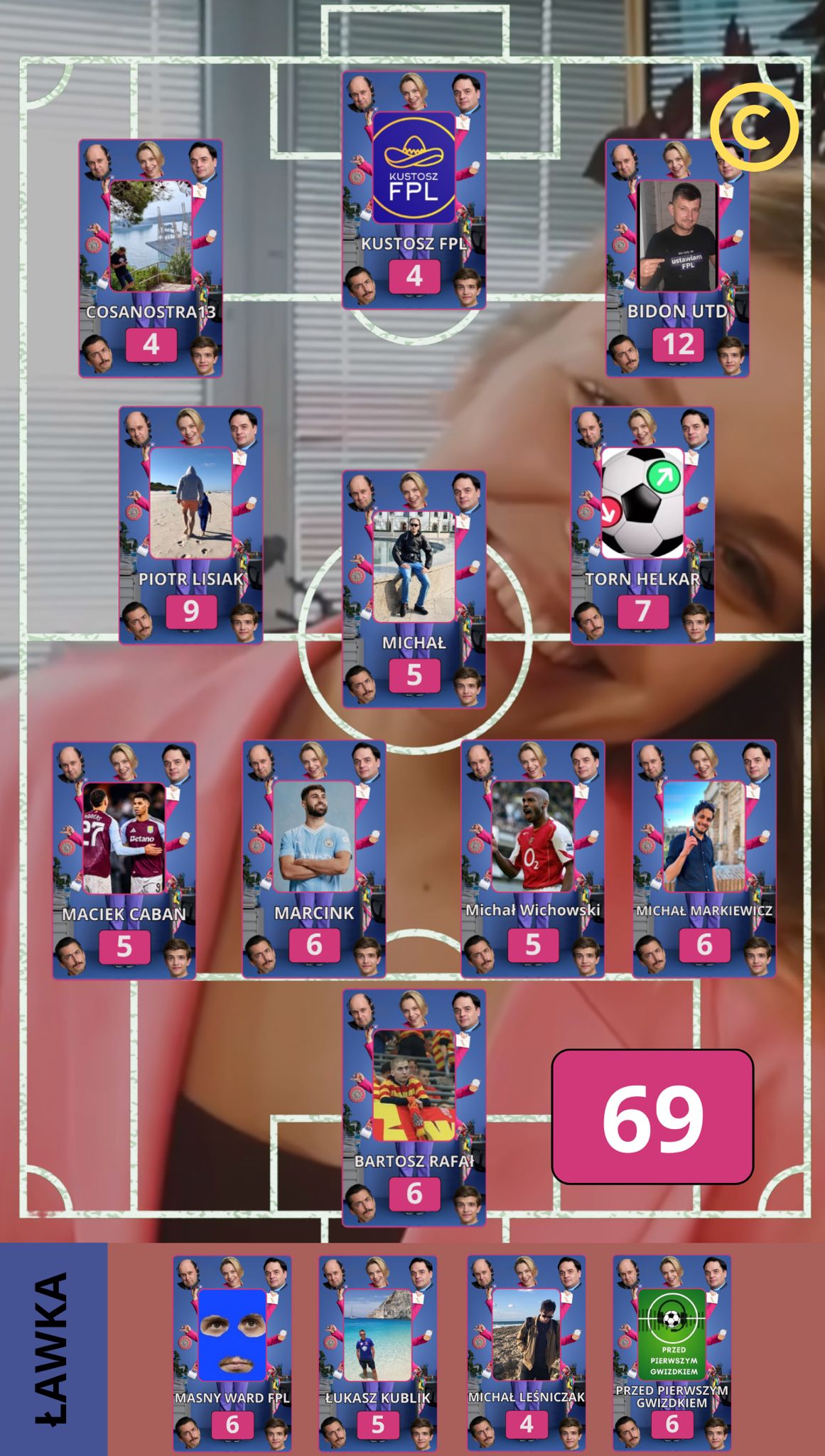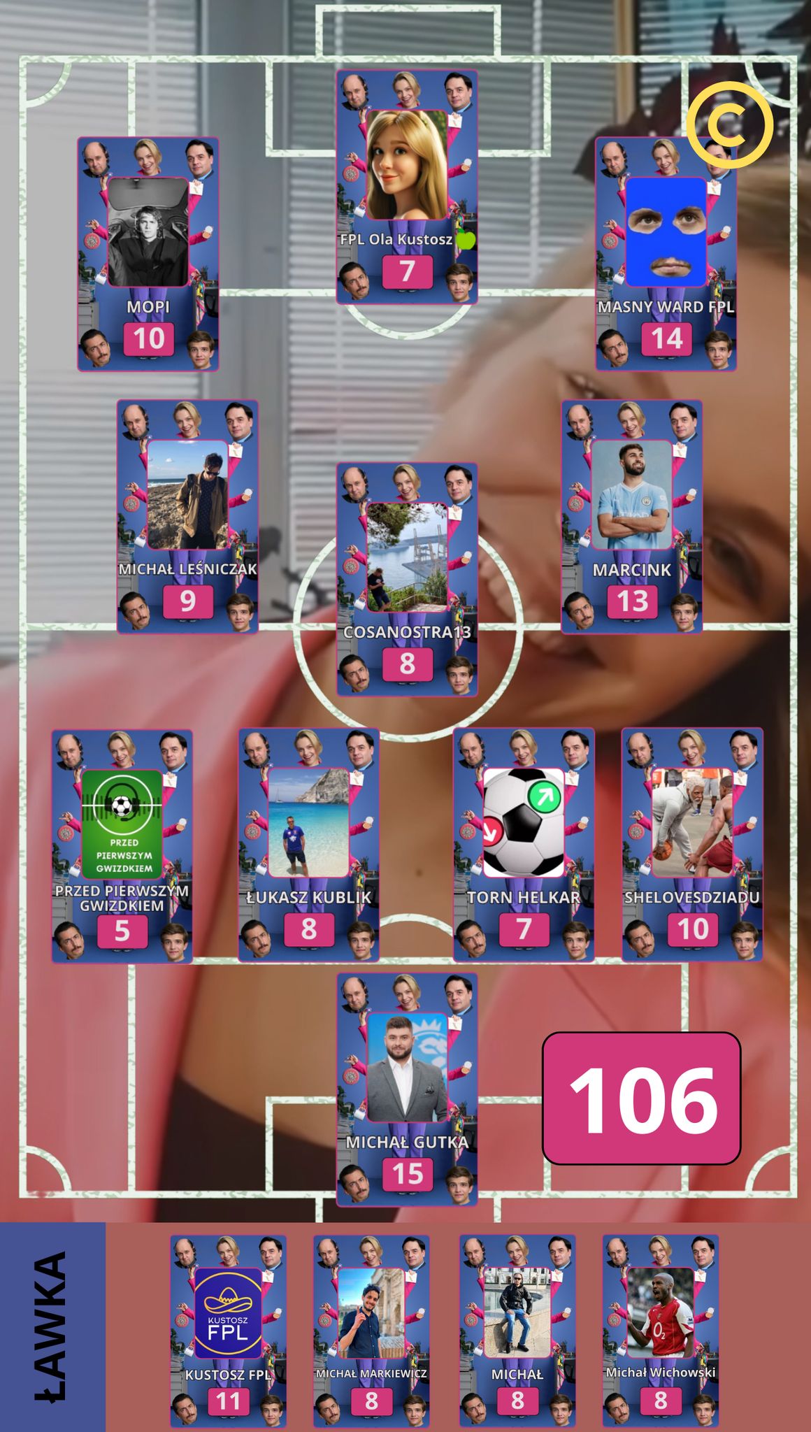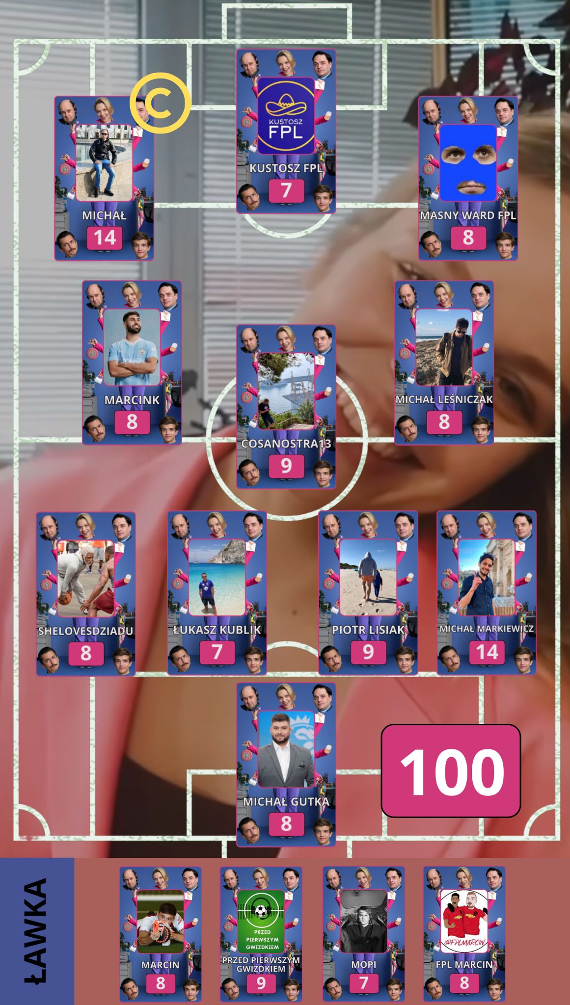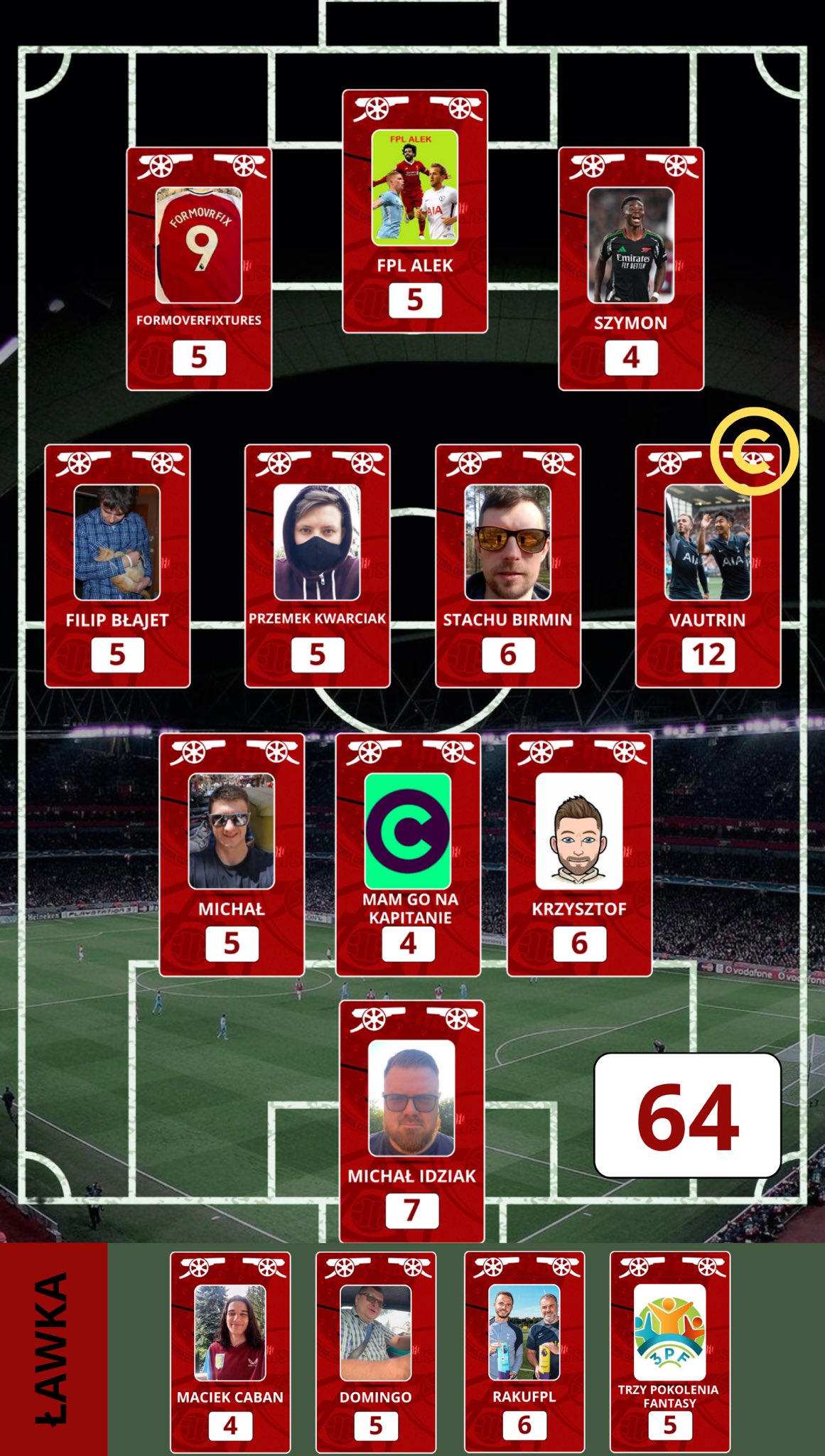 - Punktacja jak w FPL dzielona przez 10, np. przy 75 do punktacji zalicza się 8 pkt, 74 pkt równa się 7 pkt,