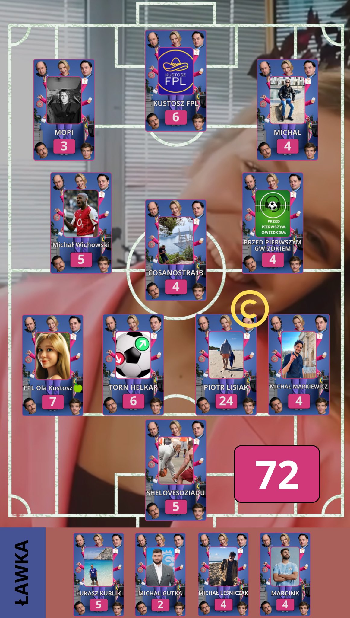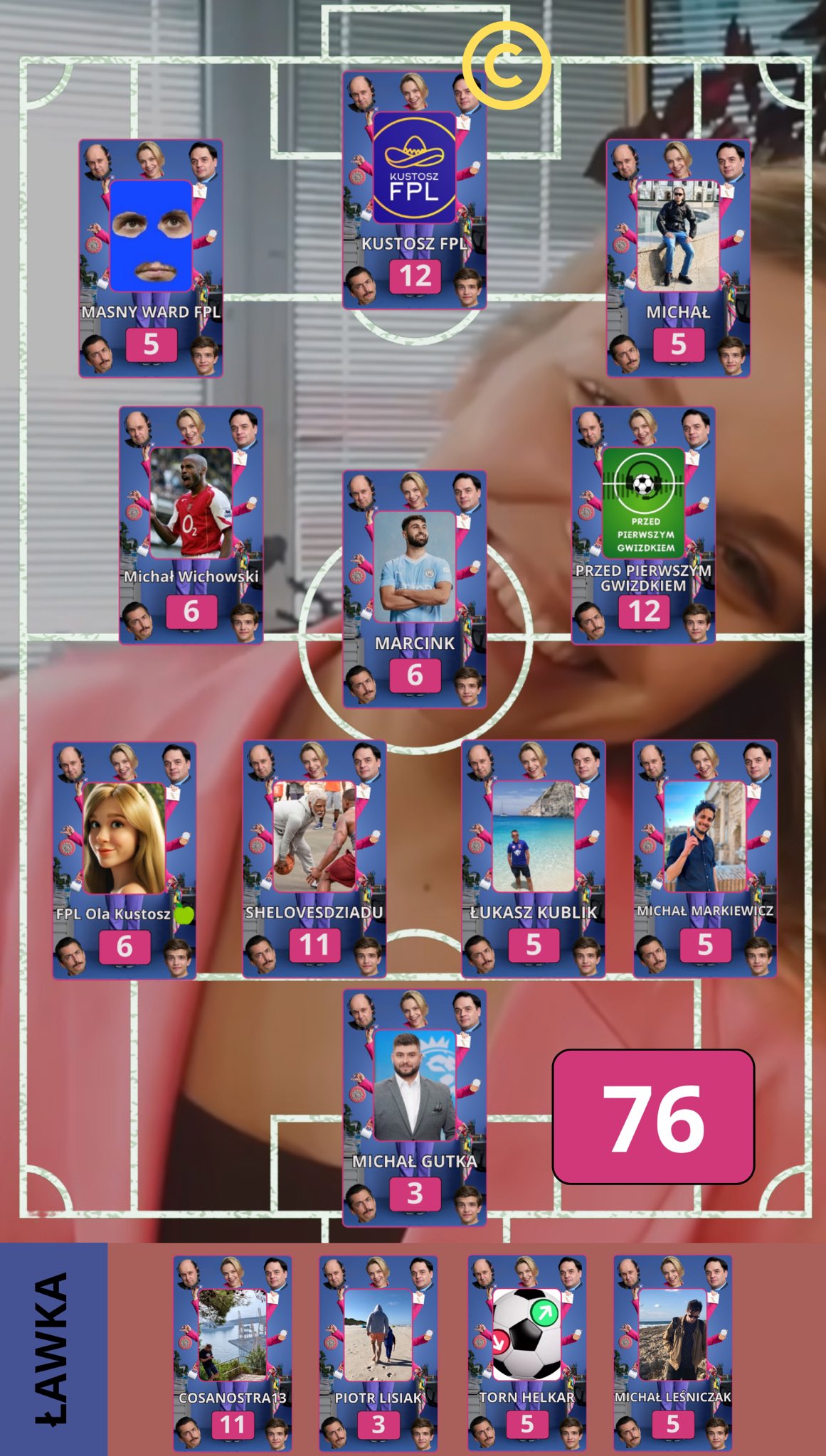 - Najsłabiej punktujący zawodnik w danej kolejce w danym zespole musi zostać wymieniony (koszt 1FT) i jest zablokowany na jedną kolejkę,