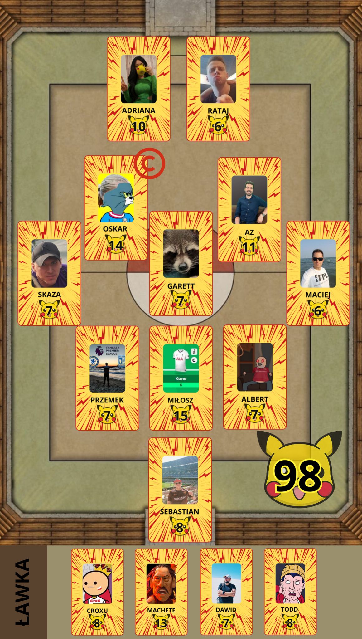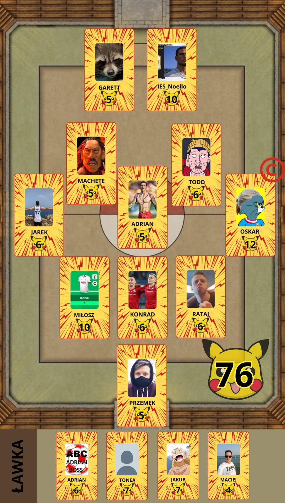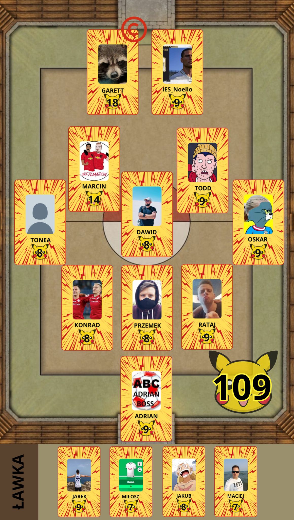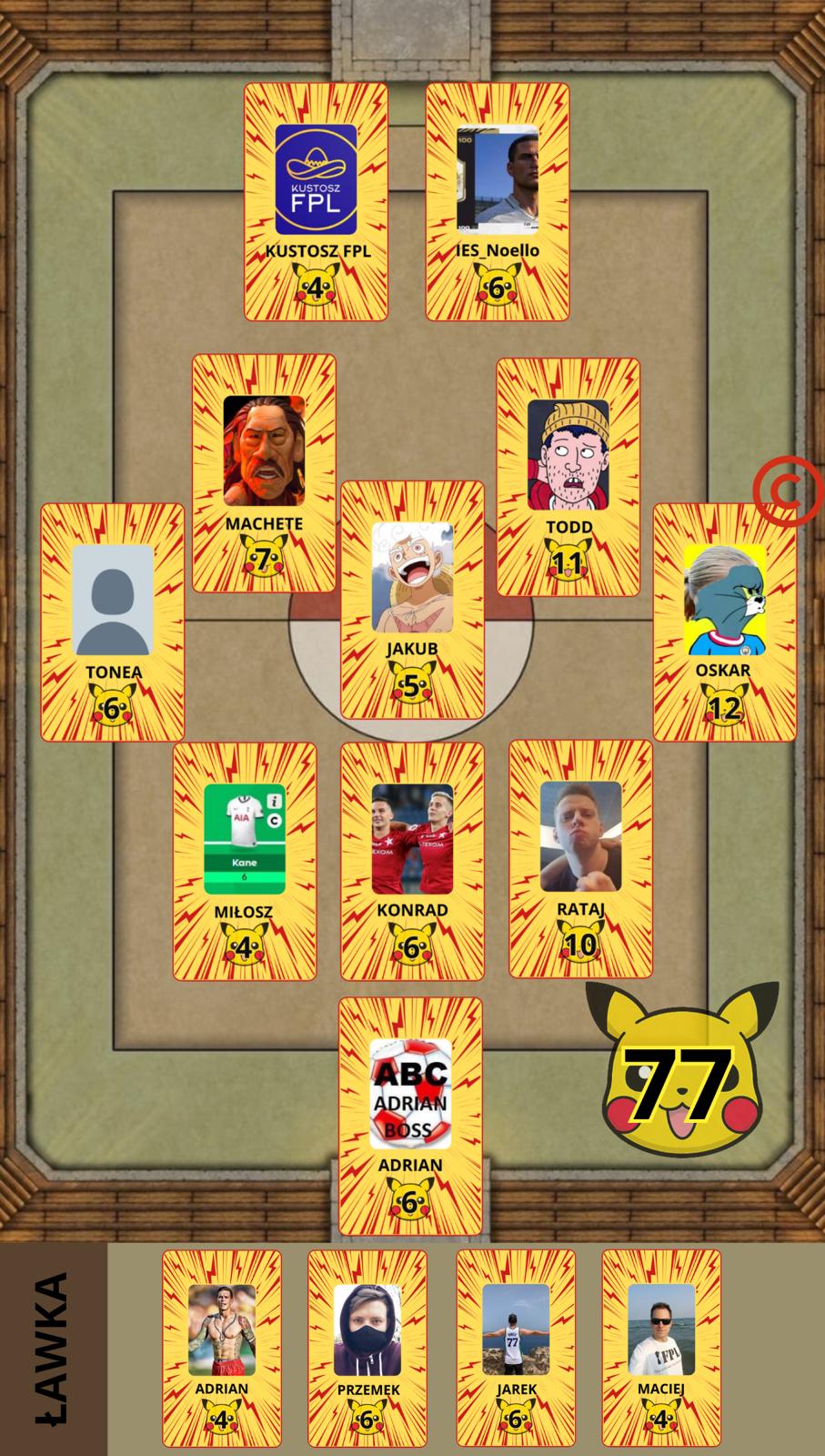 - BPSy stale (5,4,3,2,1) dla top5 zawodników z puli 45 graczy.